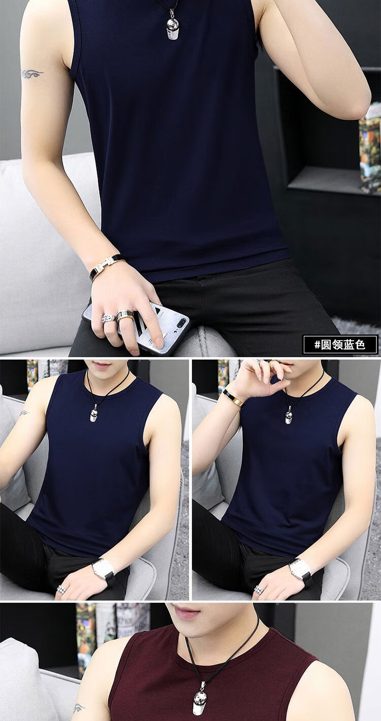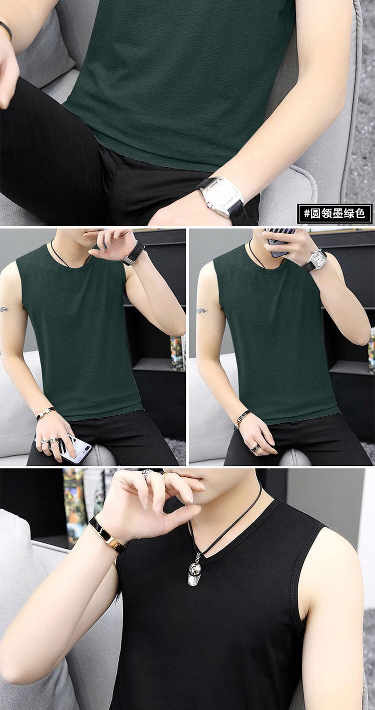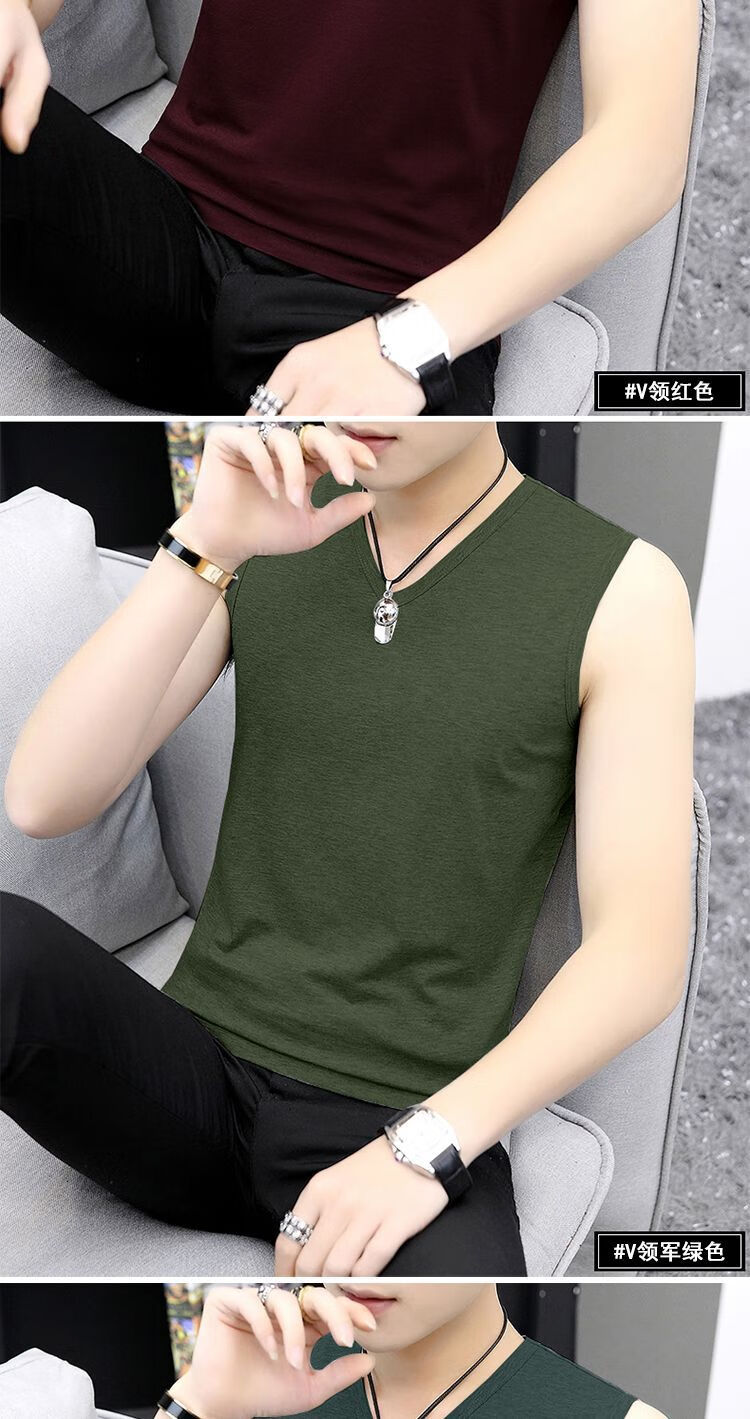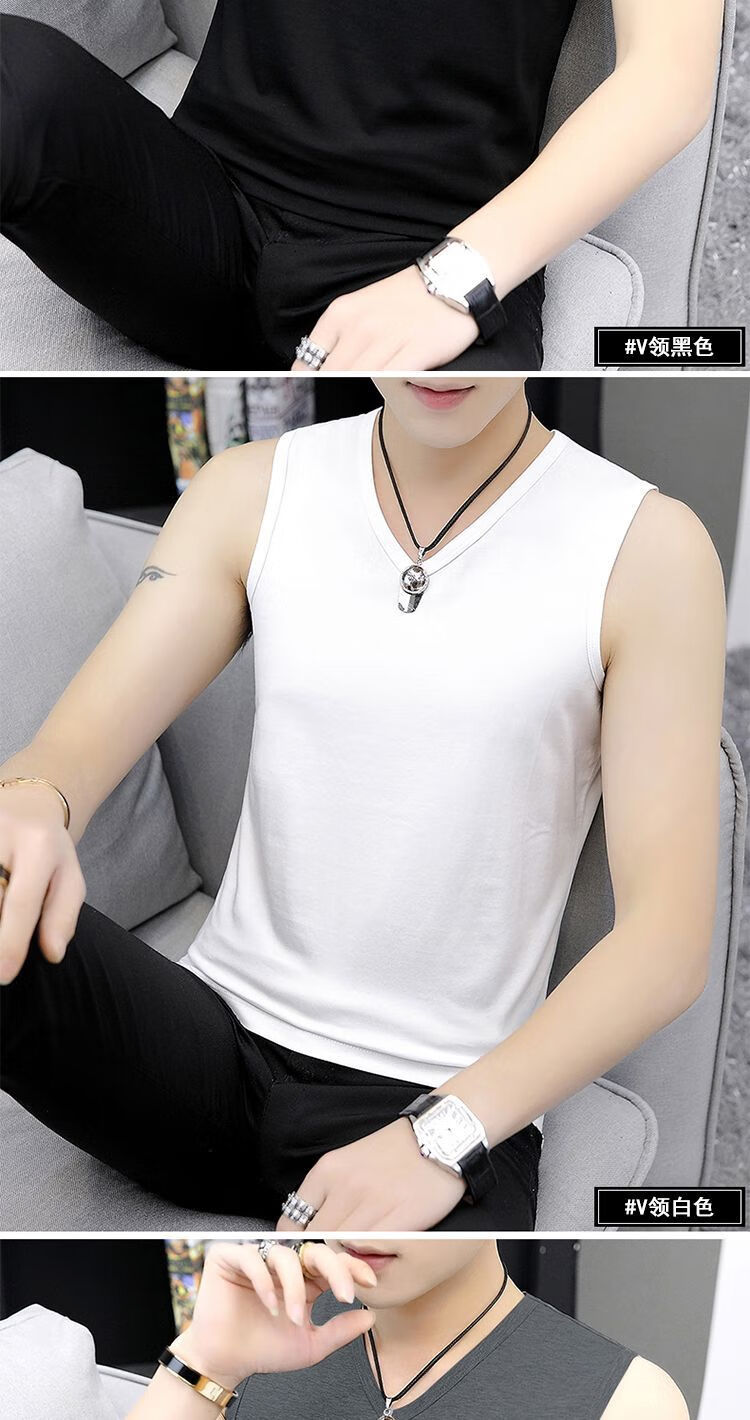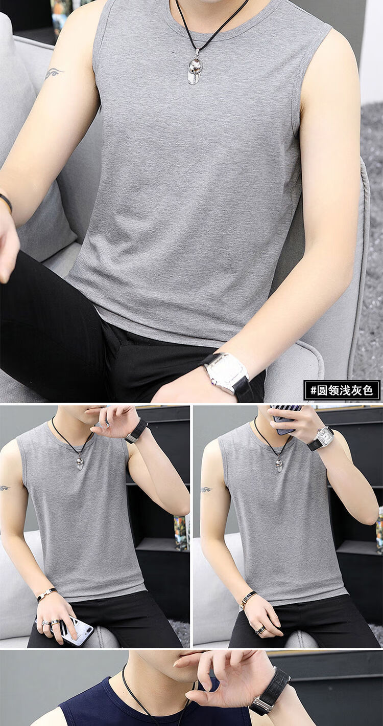 Men's round V-neck vest men's slim Korean style sleeveless vest casual sports breathable vest JS solid color sleeveless V-neck dark gray 3XL