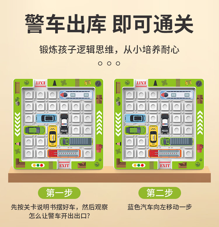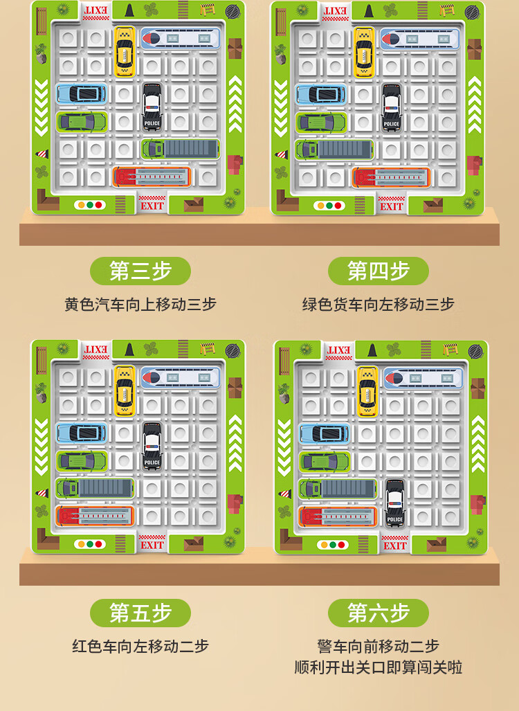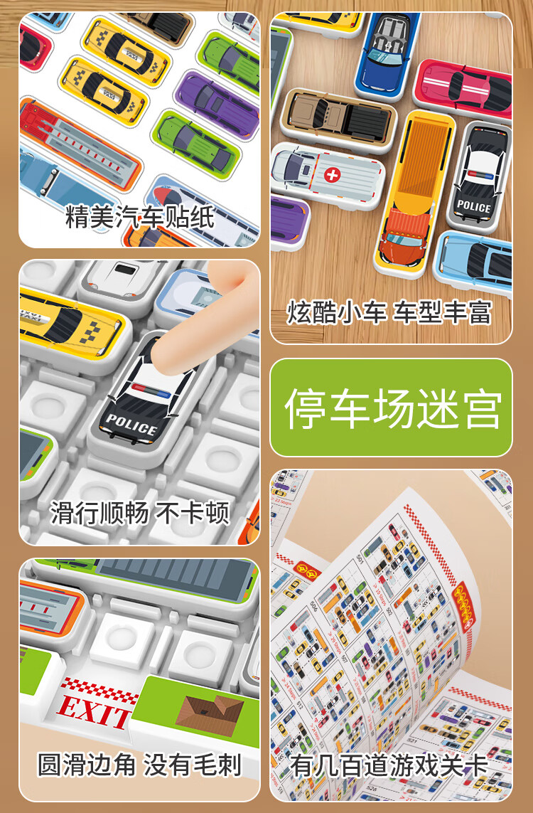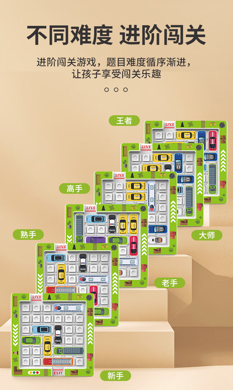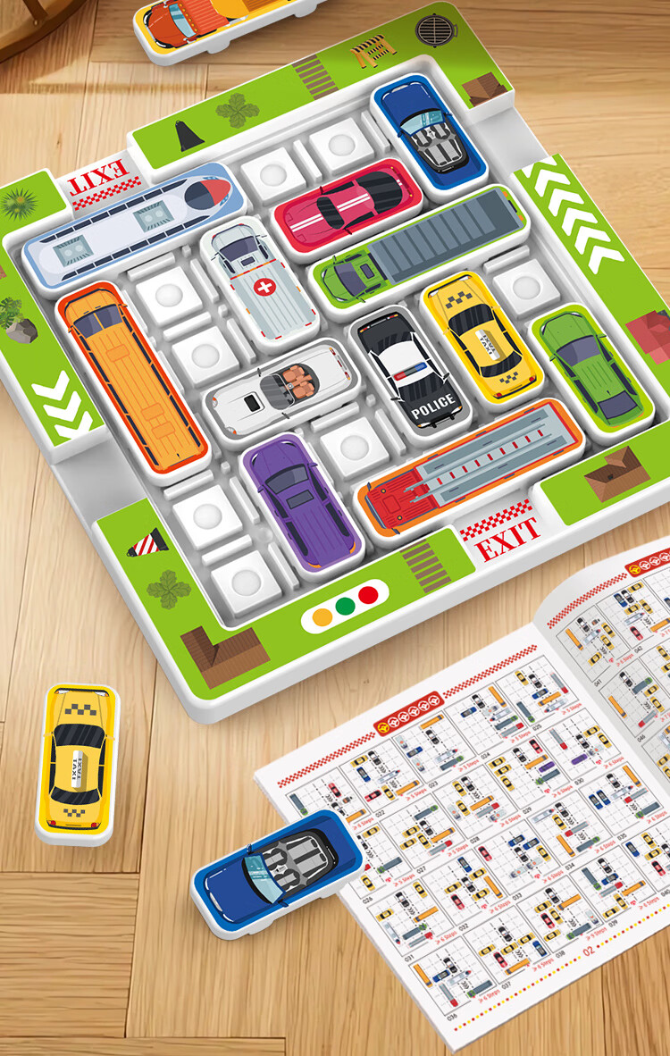Car Huarong Road logical thinking training children's toys sliding puzzle puzzle maze parking lot moving car out of the warehouse 435 levels 16 cars + base plate + stickers + instructions