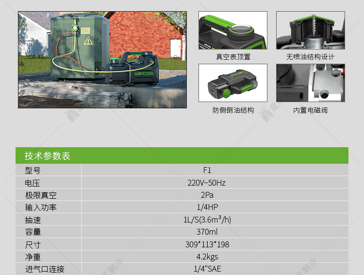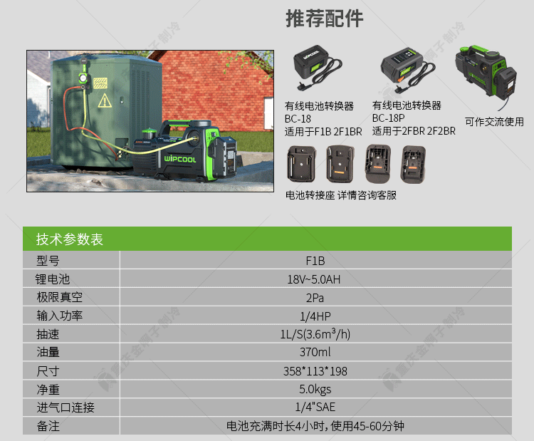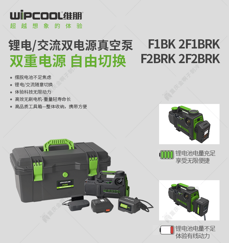 Rotary vane lithium battery vacuum pump 1/2/4/5L small air conditioner refrigerator repair experimental pumping vacuum pump Vipon dual power supply F2BR (bare metal)