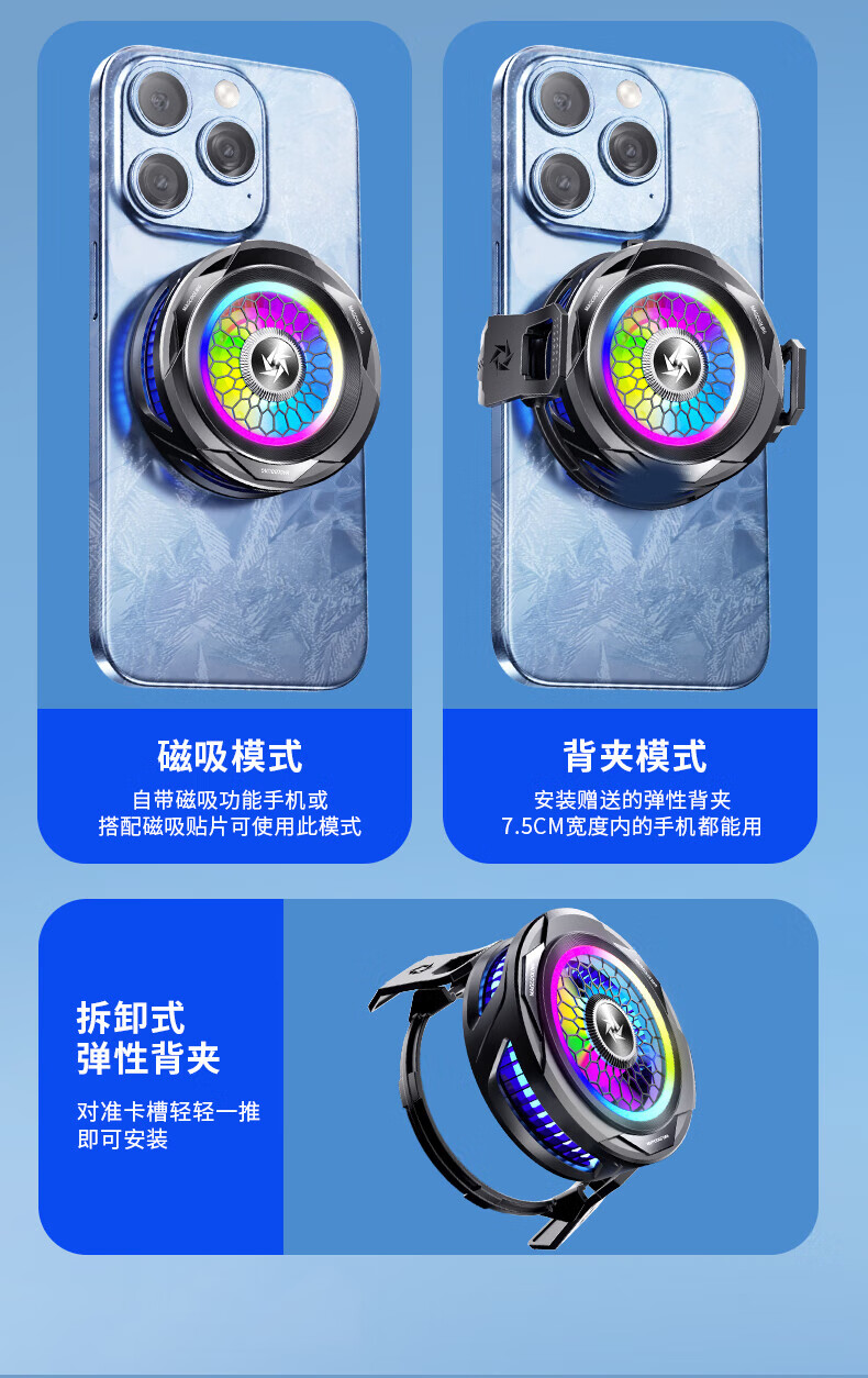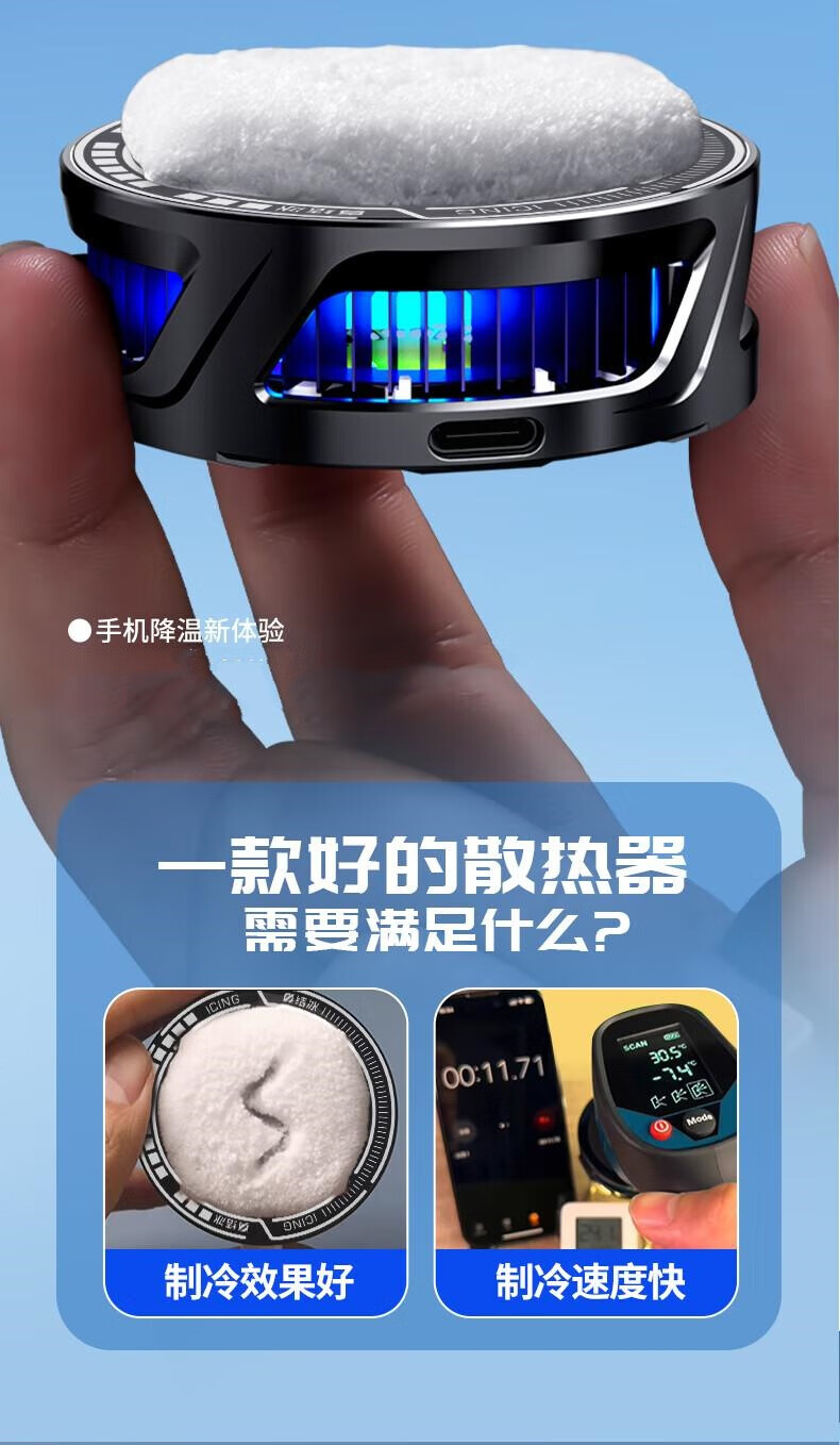 Side field's new magnetic icing radiator is suitable for Apple, can be clipped on the back, Huawei, Xiaomi, Black Shark, Red Magic, Android, multiple models, cooling down to freezing point, super strong mobile phone and tablet cooling, vapor chamber, magnetic suction, universal, increased heat dissipation area