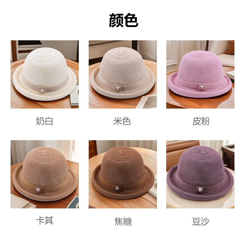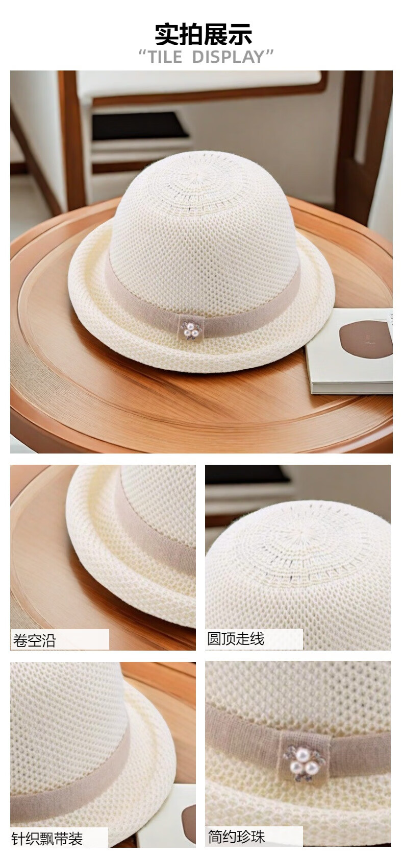 Woodpecker Thin Knitted Basin Hat Women's Fashion Versatile Hollow Top Hat Sun Hat Sun Protection Hat Leather Pink M (56-58cm)