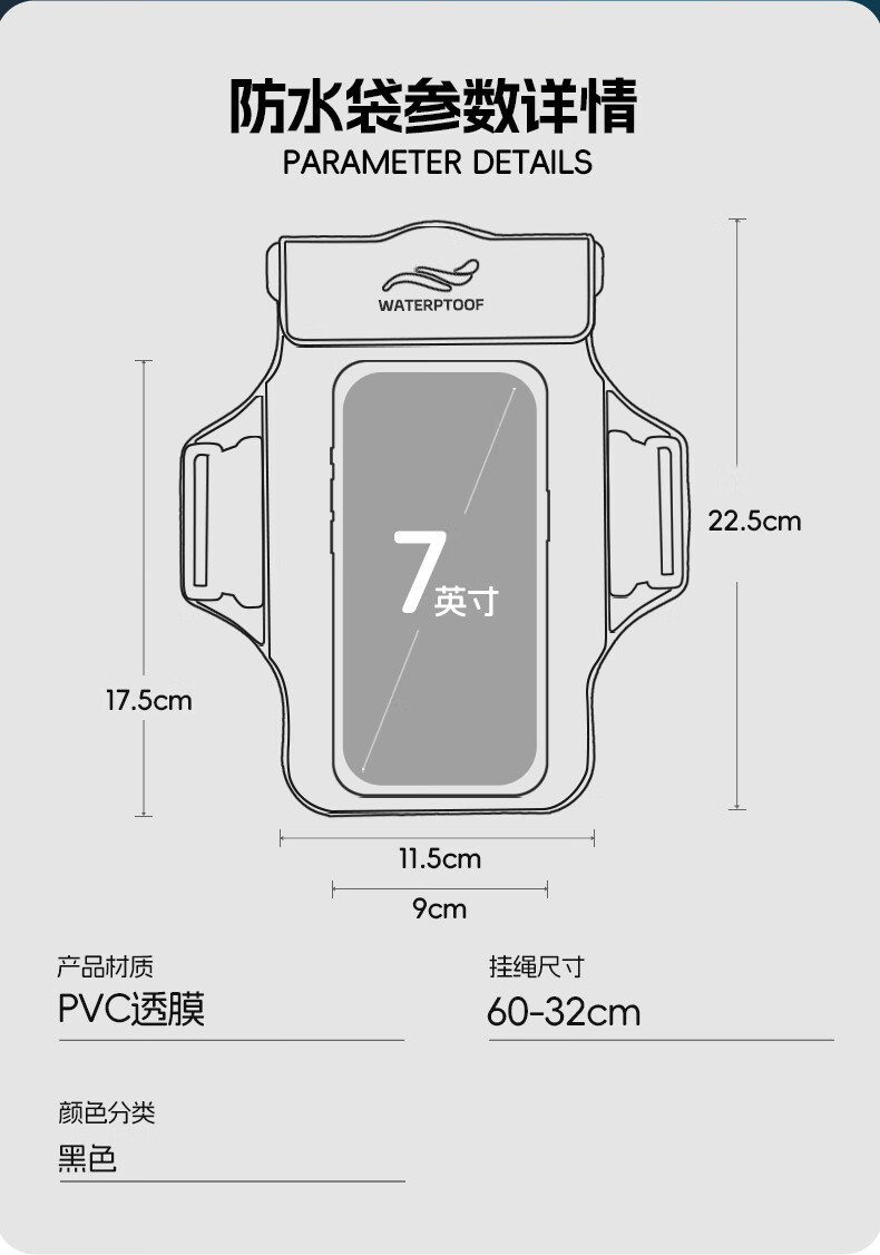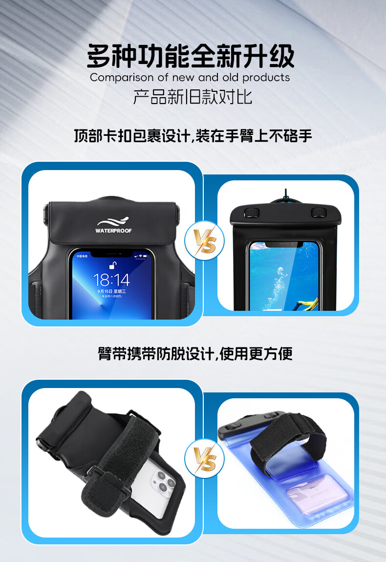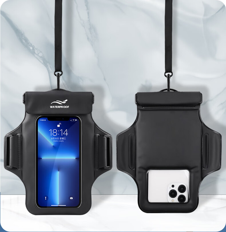 Shantou Lincun mobile phone waterproof bag with touch screen swimming rafting hot spring takeaway hanging neck arm arm sponge waterproof mobile phone case black