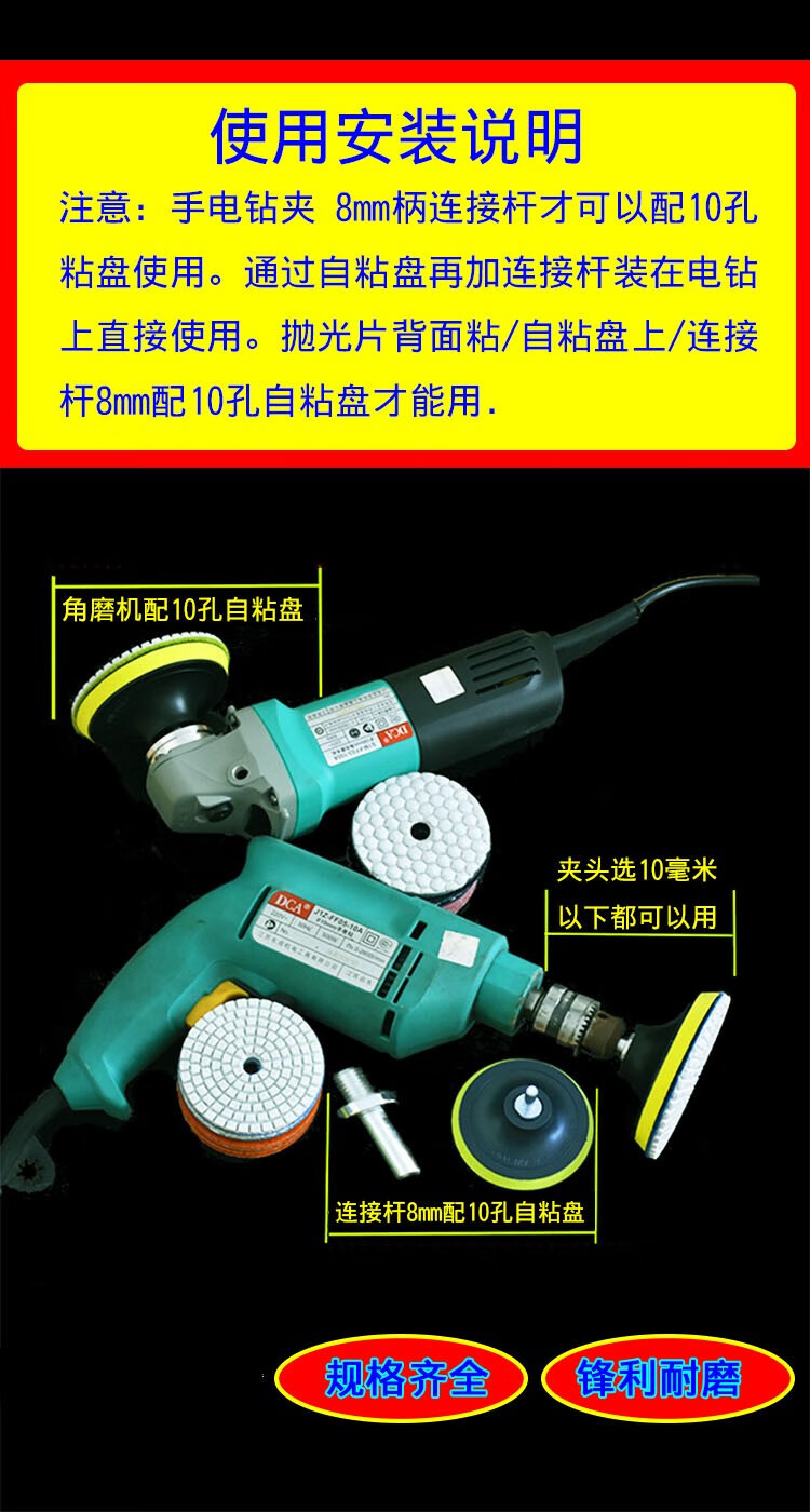 Water-grinding tablets, stone polishing tablets, marble polishing tablets, edge grinding diamond angle grinder polishing tablets, 80 thin sticky discs, 10 holes, 5 pcs