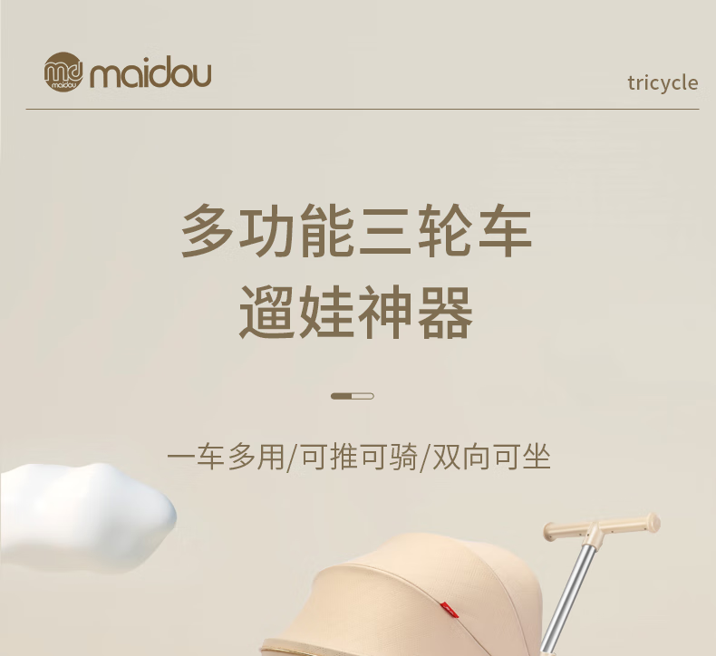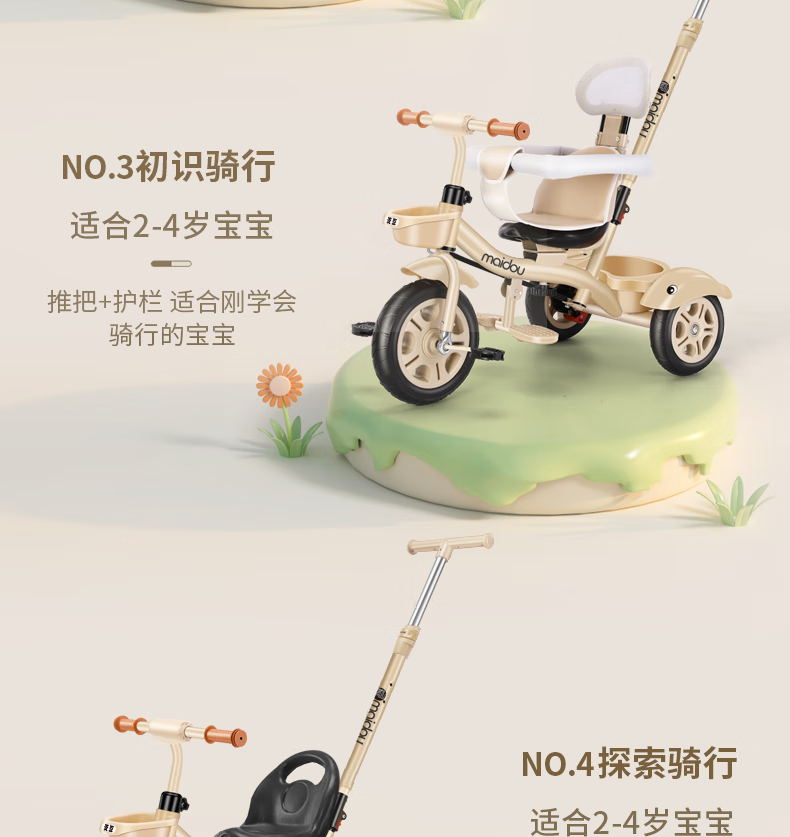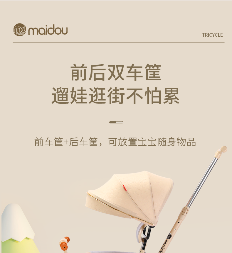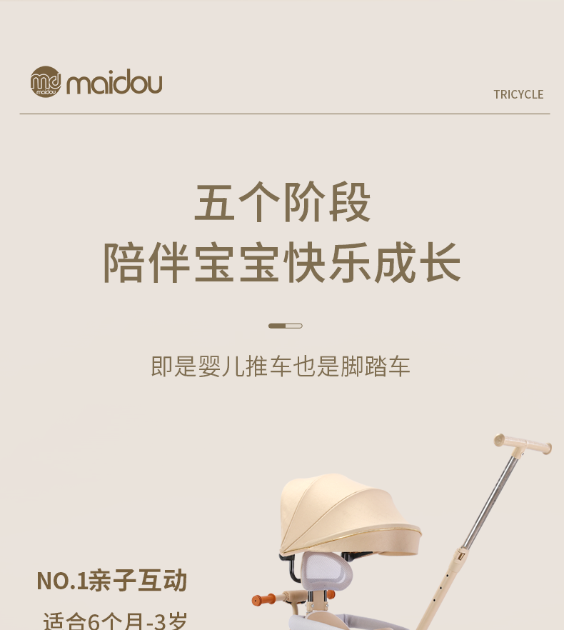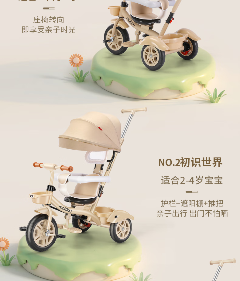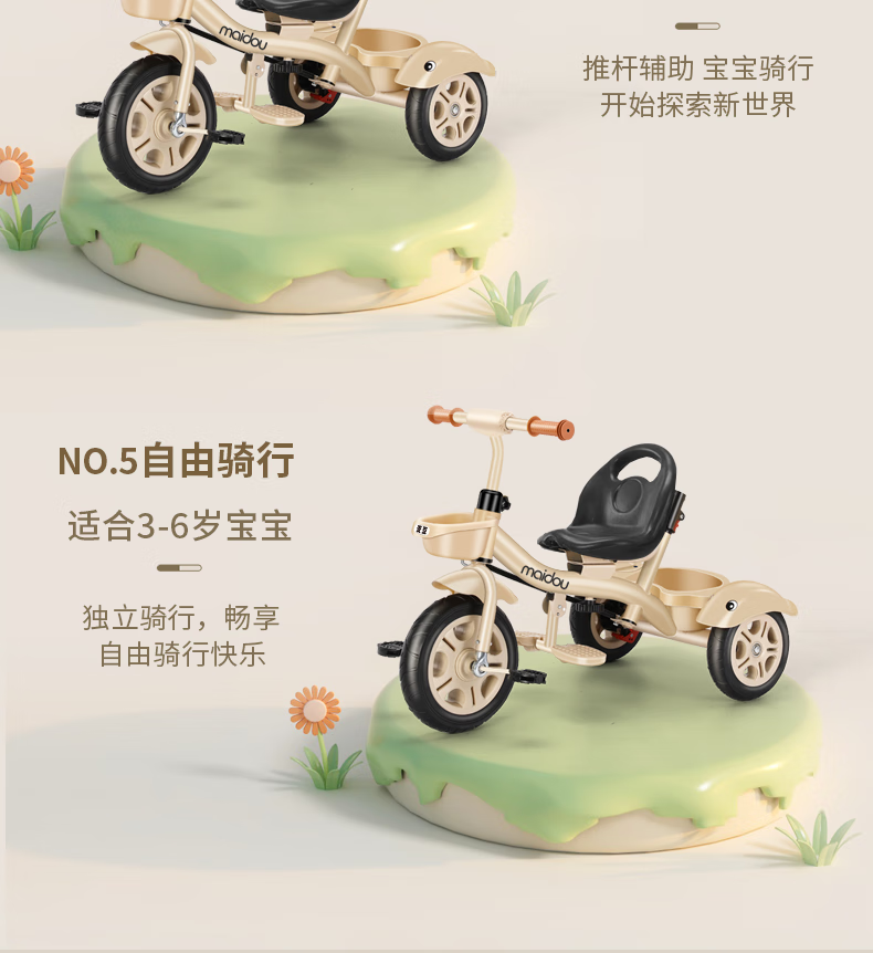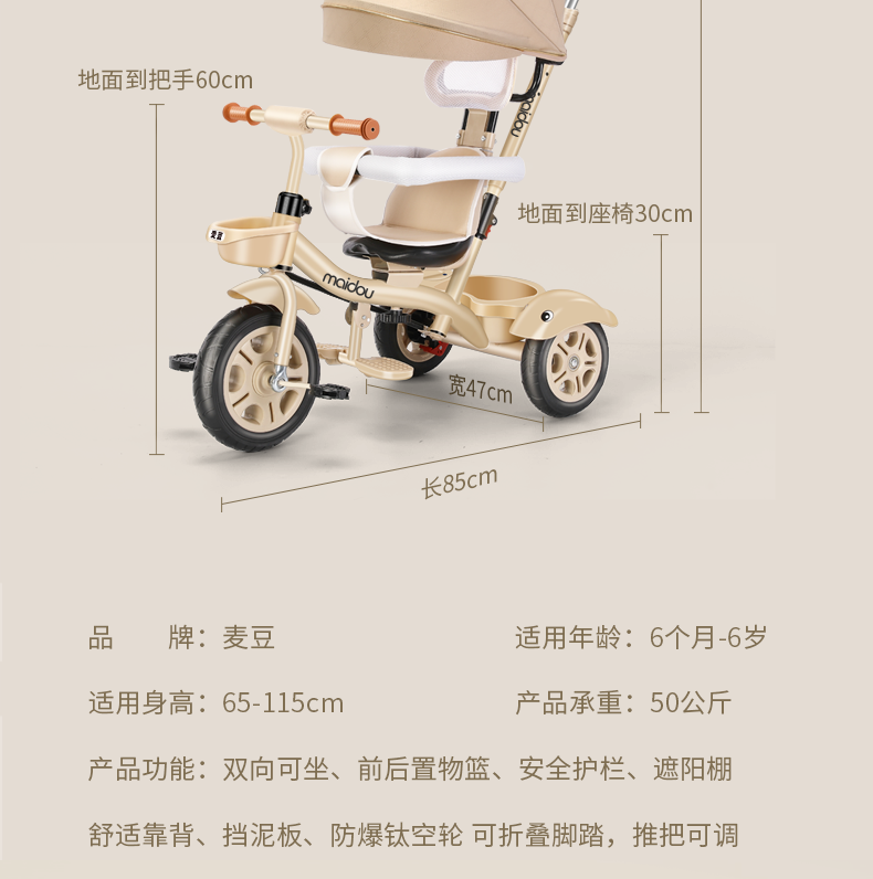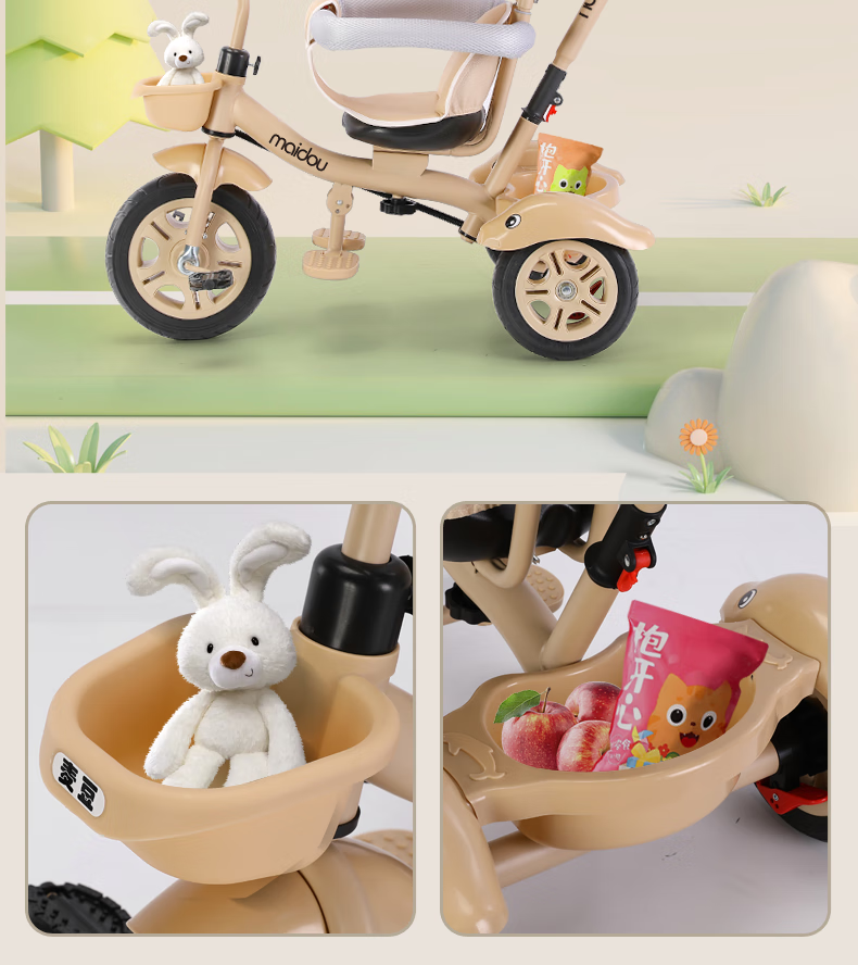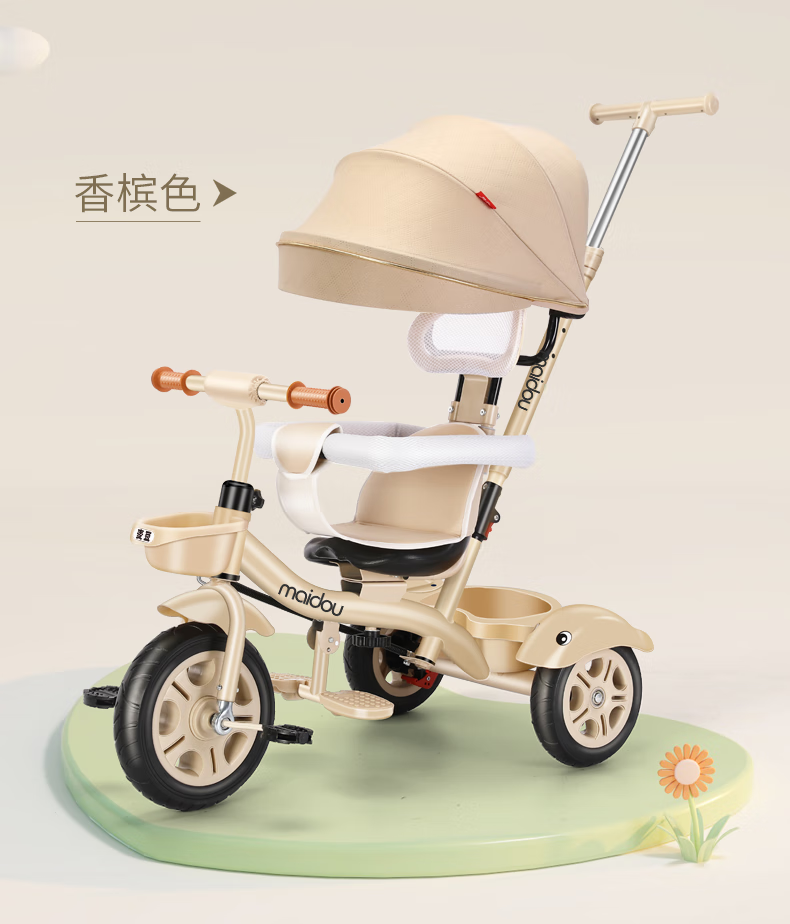 Children's tricycle baby stroller toddler bicycle 1-3-5 years old child stroller bicycle champagne color titanium empty wheel three-in-one