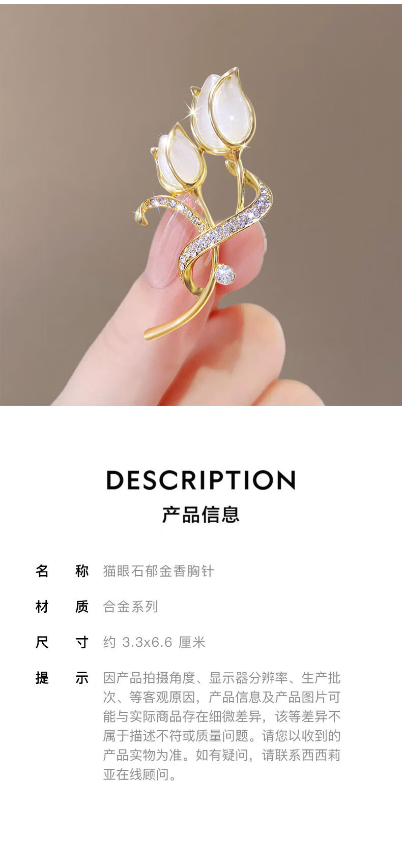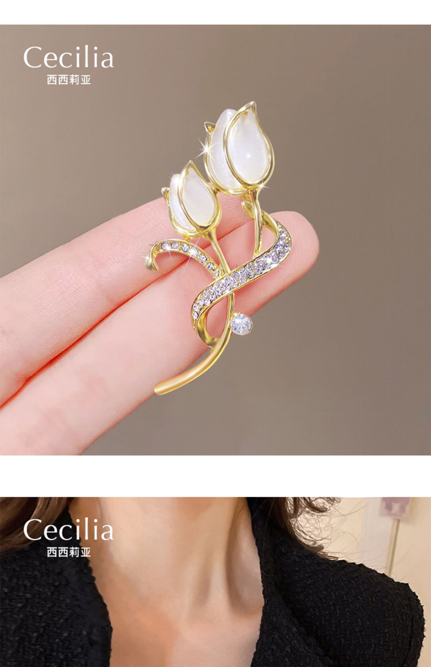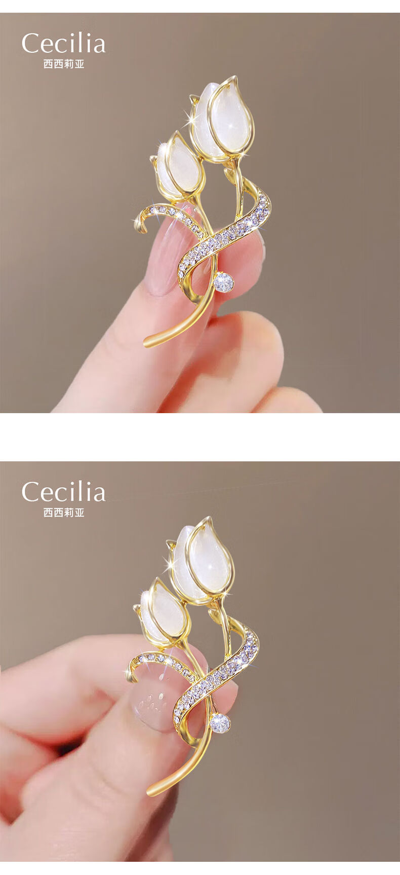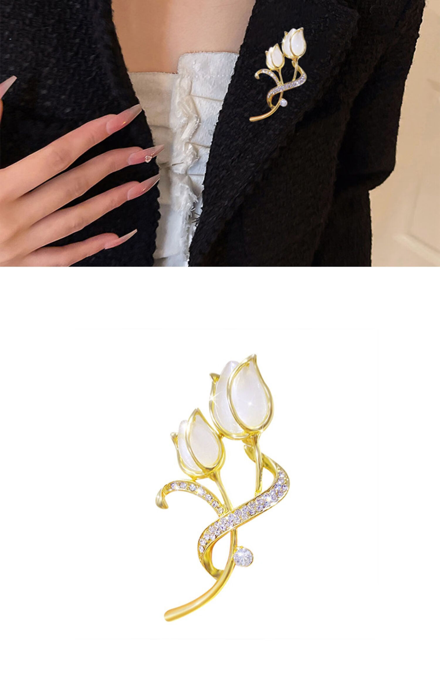 YIBIY Cat's Eye Tulip Brooch High-end Women's Luxurious Temperament Coat Corsage Exquisite Suit Sweater Pin Accessories Cat's Eye Tulip Brooch - Type B