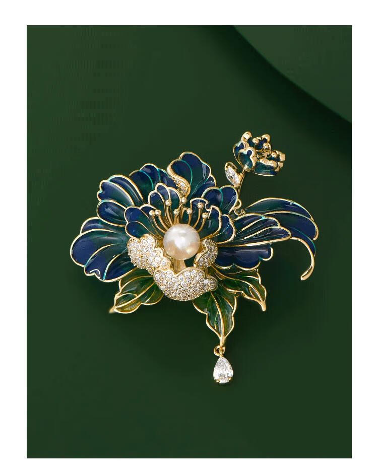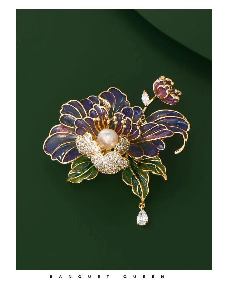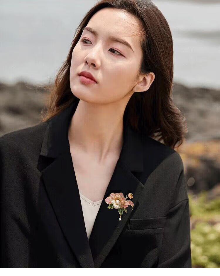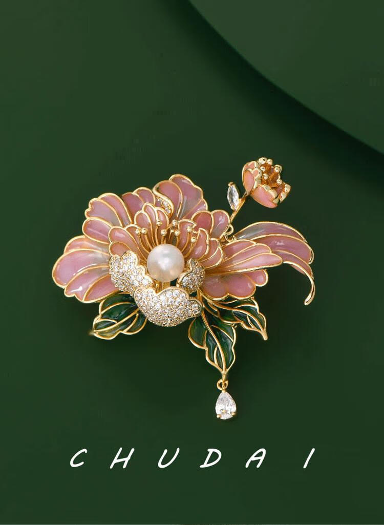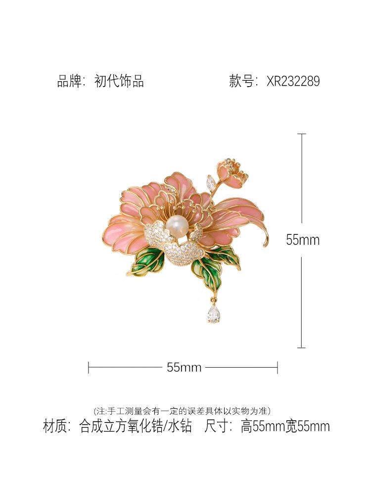 YIBIY classical pink peony flower brooch high-end women's fashion high-end national trend accessories suit coat decorated exquisite trend pink