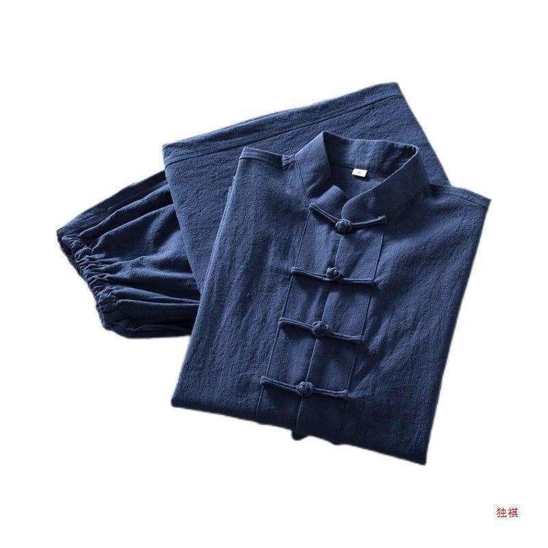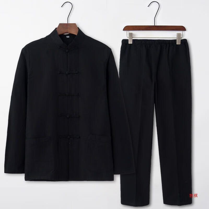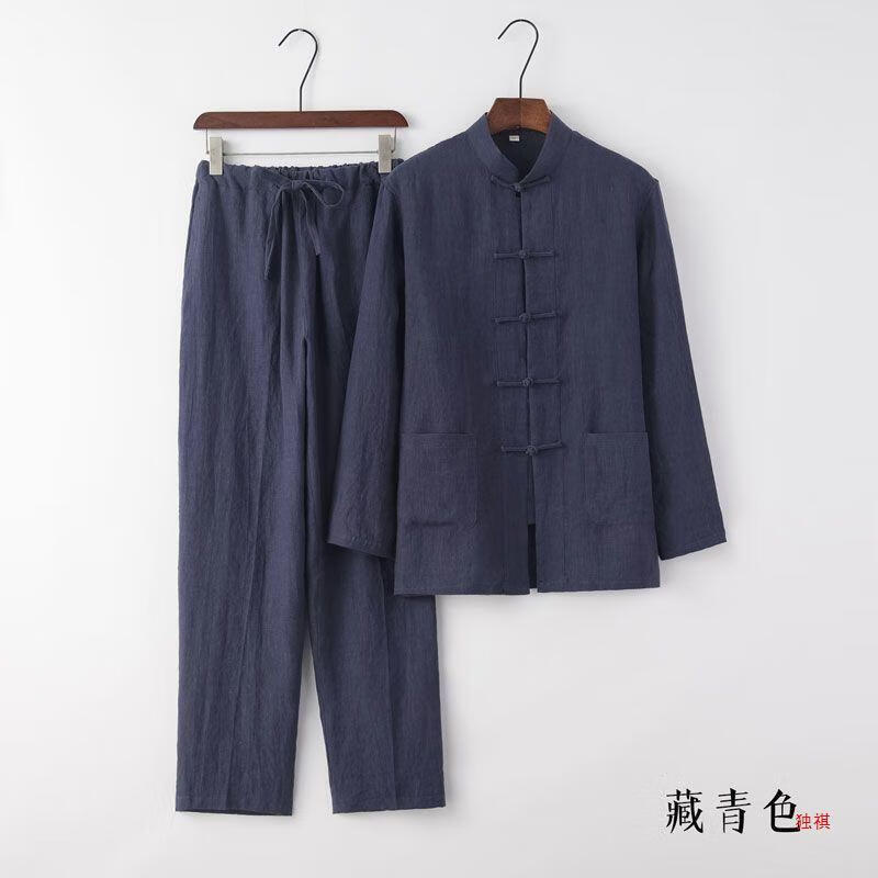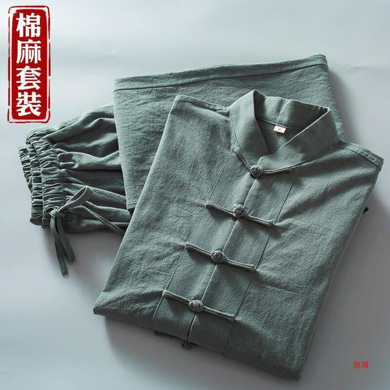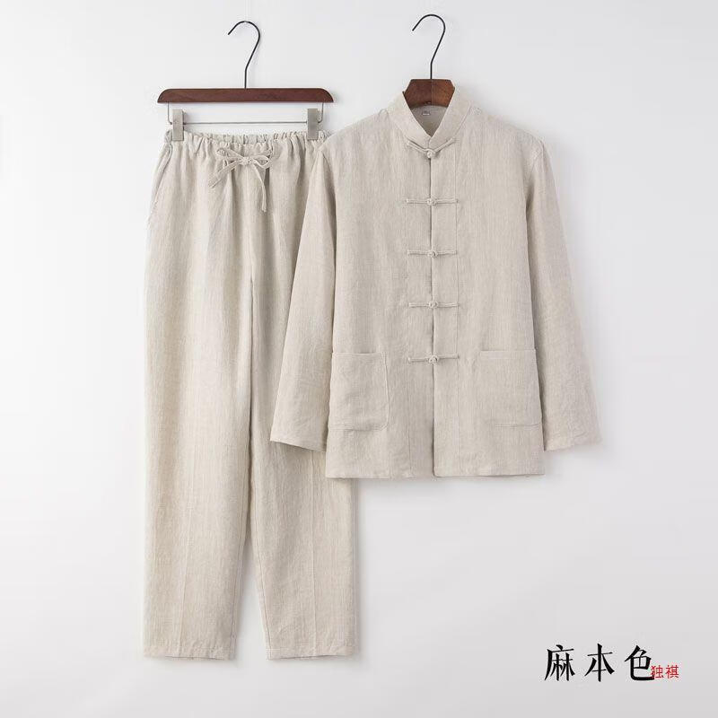 Zuosike Chinese style men's Tang suit women's Spring and Autumn Tai Chi practice Buddhist Zen Buddhist style tea clothes Han cotton linen retro stand-up collar plate linen five-button suit 3XL recommended 135-150 Jin Jin equals 0.5 kg