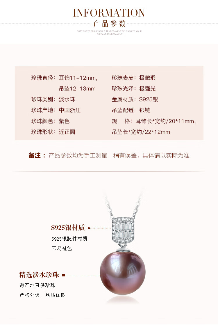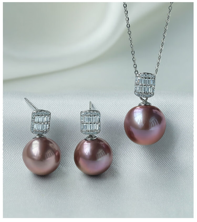 Pearl Queen Mother's Day gift purple freshwater pearl S925 silver clavicle chain 12-13mm single pendant