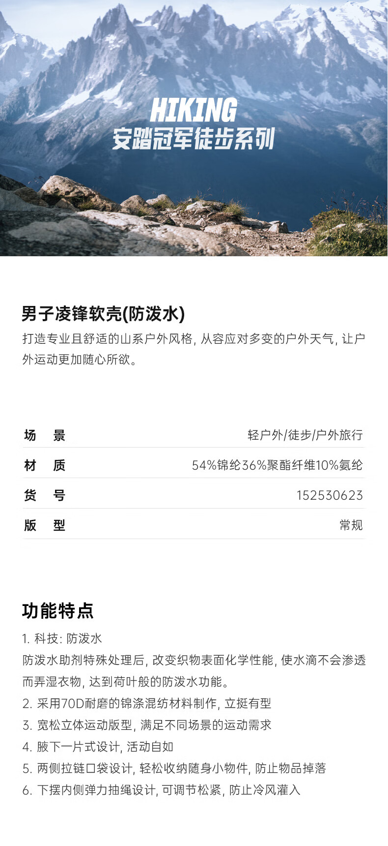 ANTA Lingfeng Champion Water-Repellent Soft Shell Men's Stand Collar Business Jacket Executive Jacket 152530623 Basic Black-3 L (Male 175)