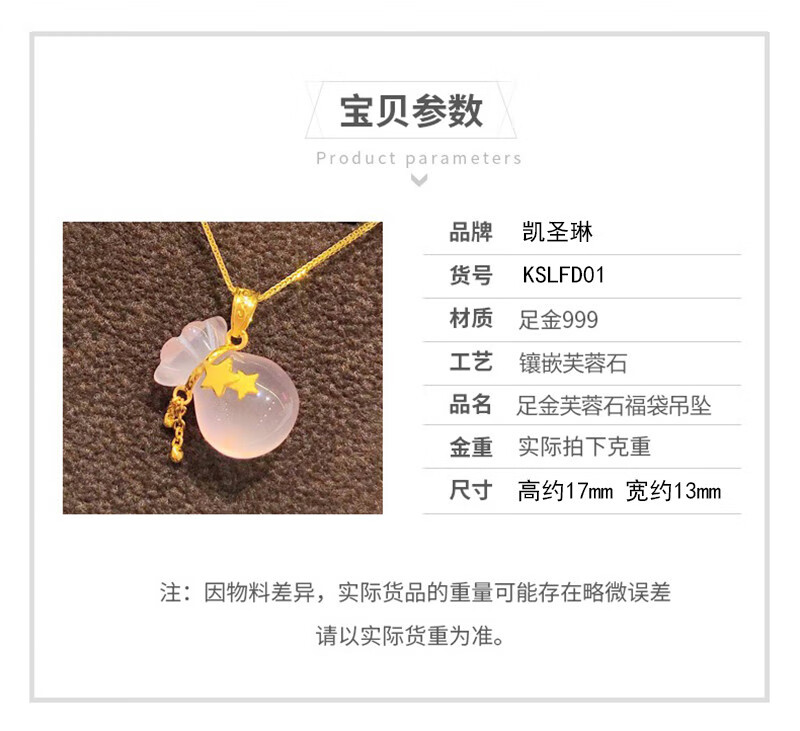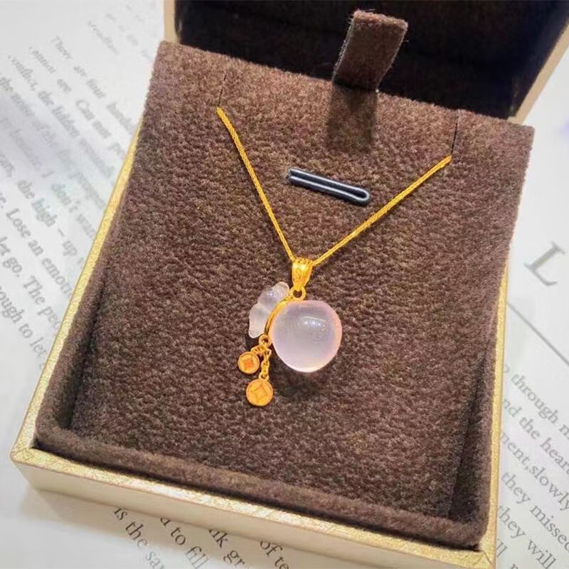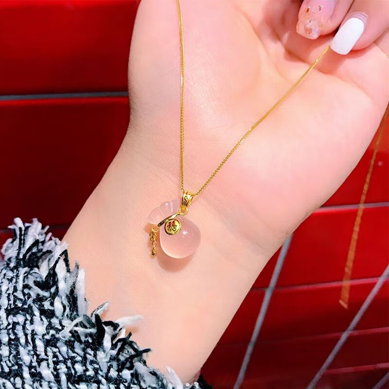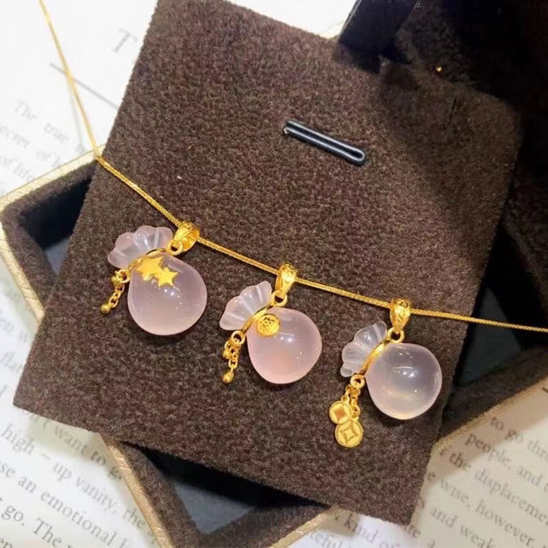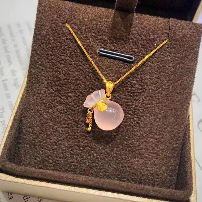 Excellent gold inlaid jade lucky bag pendant for women, gold fortune character coin, hibiscus stone necklace, gold pink jade clavicle chain pendant, pure gold starry pendant