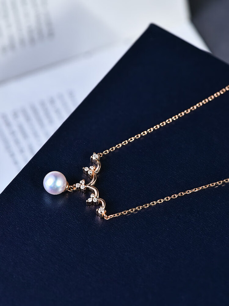 Excellent Japanese akoya sea water goddess 18K rose gold crown single necklace pendant for women 18K rose gold necklace/flower bead grade/spot 5.5-6mm