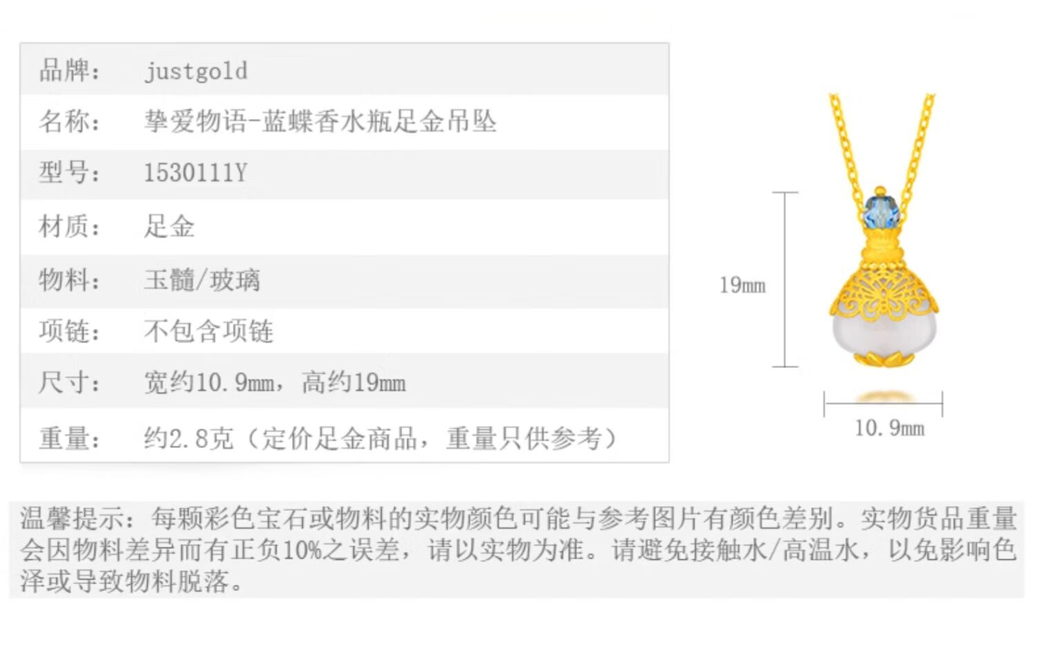 Youshu Love Story Blue Butterfly Perfume Bottle Full Golden Pendant Fashion Design High-end Versatile Gift for Friends Ready Stock