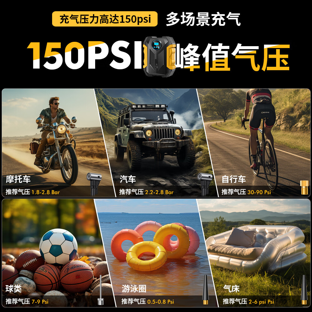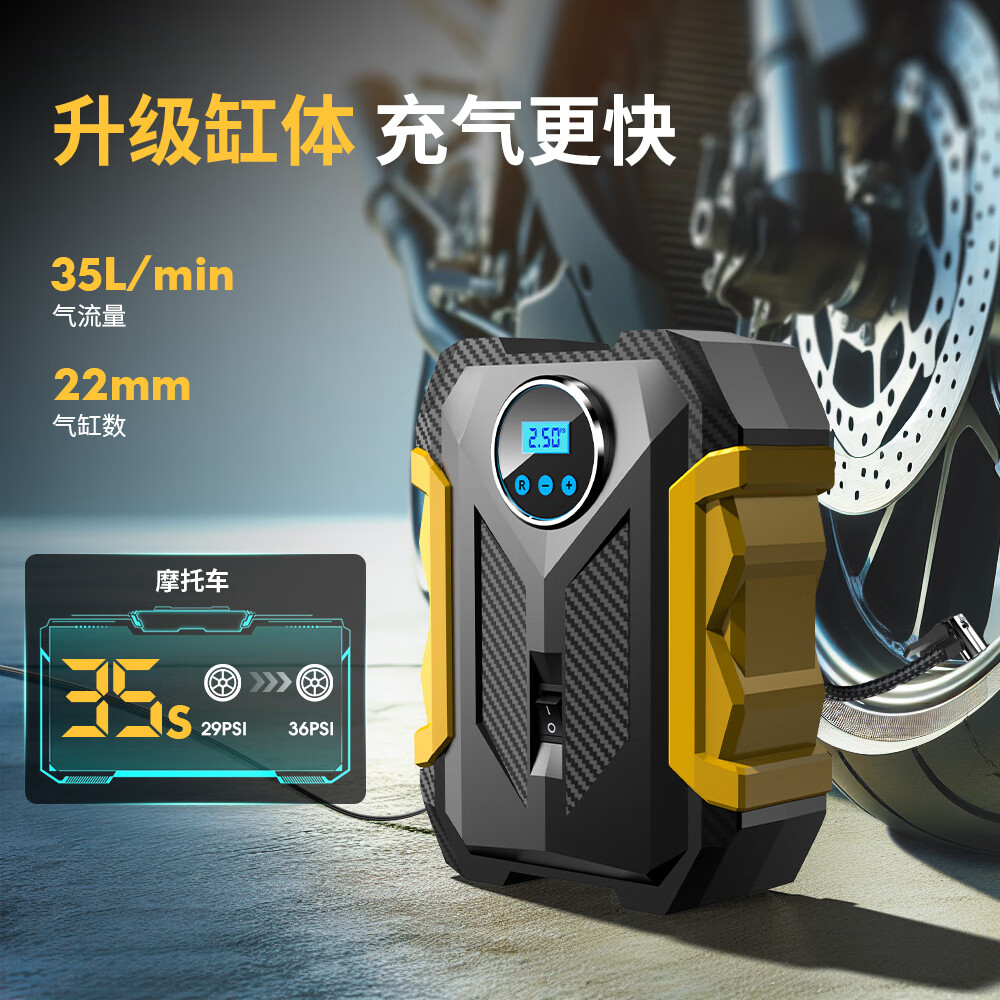 CaRSun AUTO ACCESSORY Car Air Pump Portable Car Tire Pump Yellow 120W