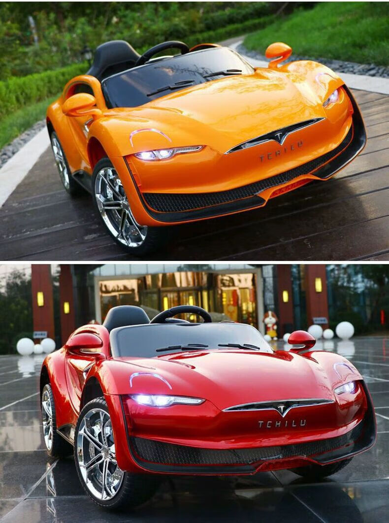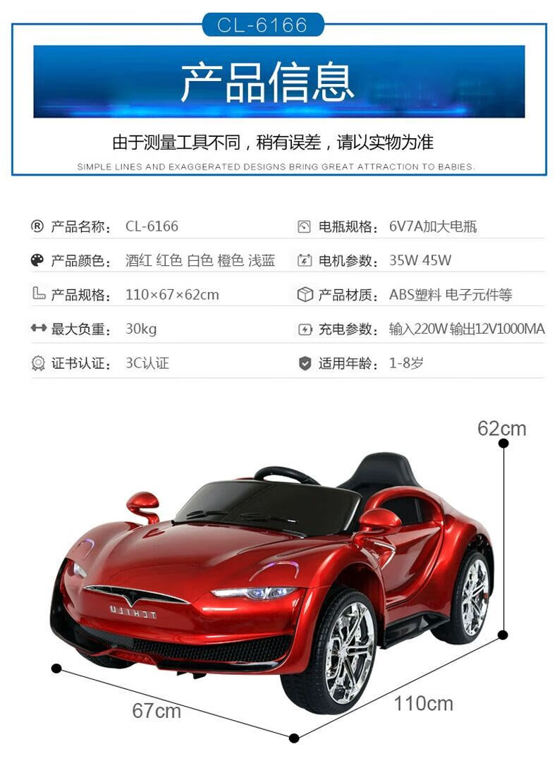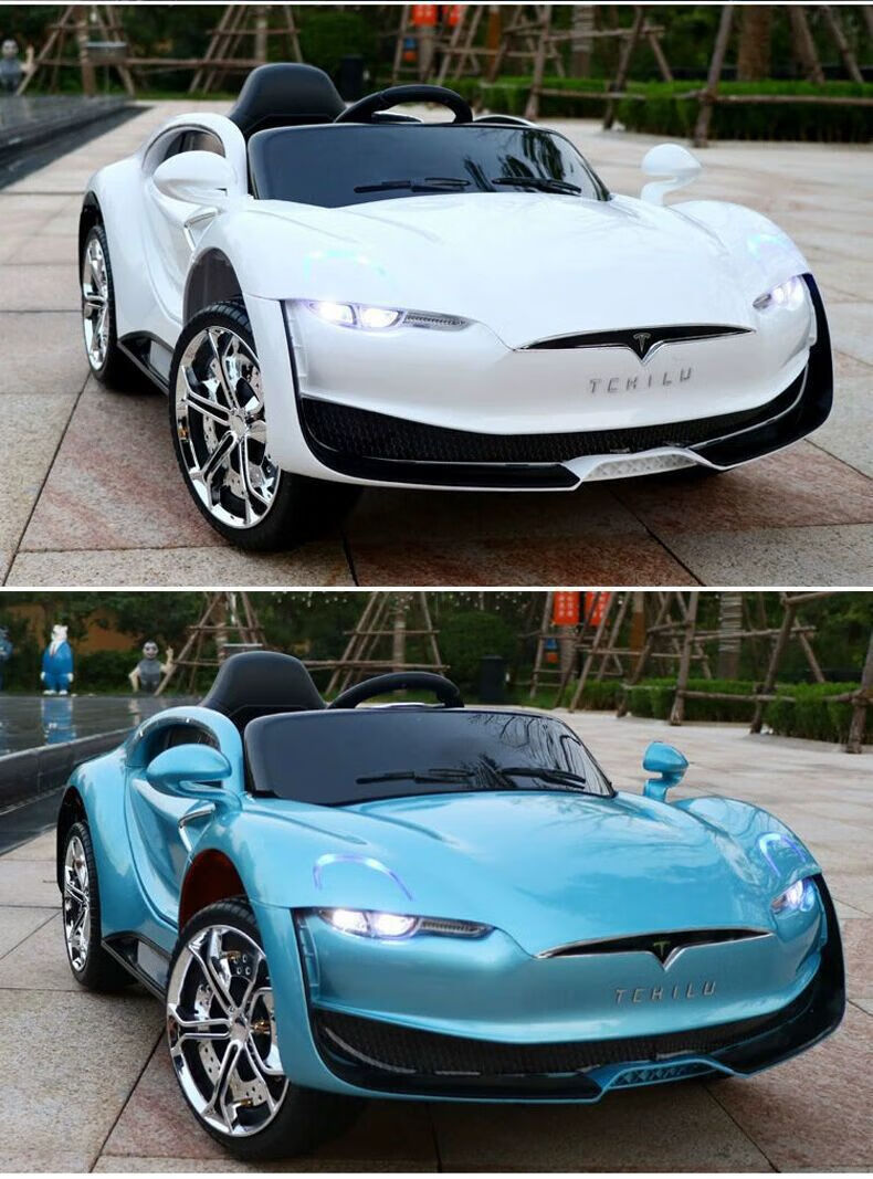Jane's Tesla children's electric car four-wheel car children's remote control male and female baby four-wheel drive battery car white dual-drive ordinary seat electric drive