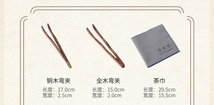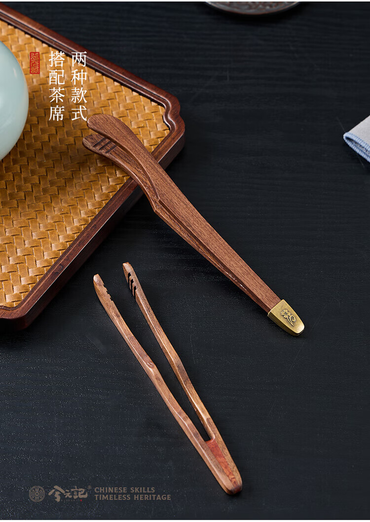 Xiyuanji walnut tea clamp, tea cup clamp, anti-scalding wooden cup clamp, tea leaf clamp, copper decorative Kung Fu tea set accessories, walnut tea clamp-all wood bent clamp