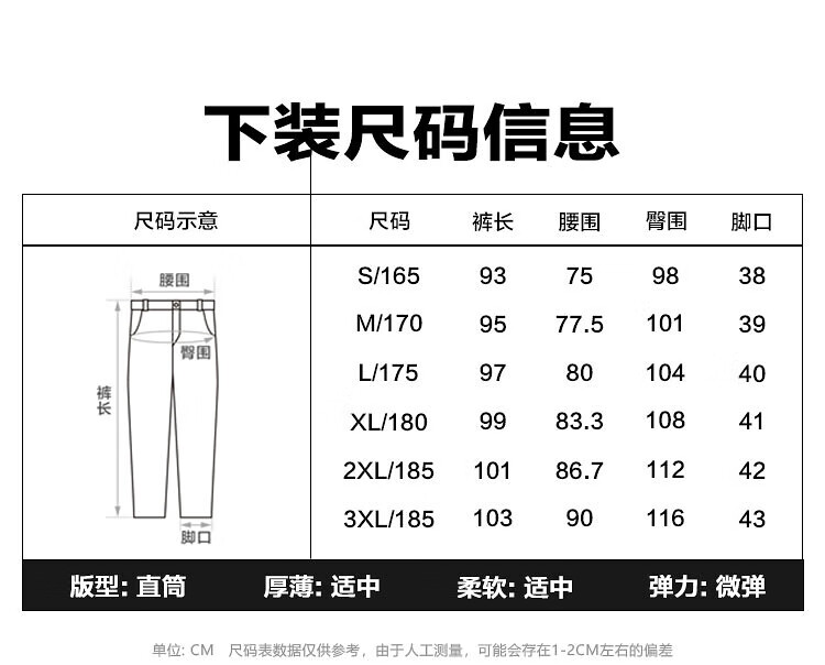 Outseam (cm) 99 cm 101.5 cm 104 cm 106.5 cm 109 cm