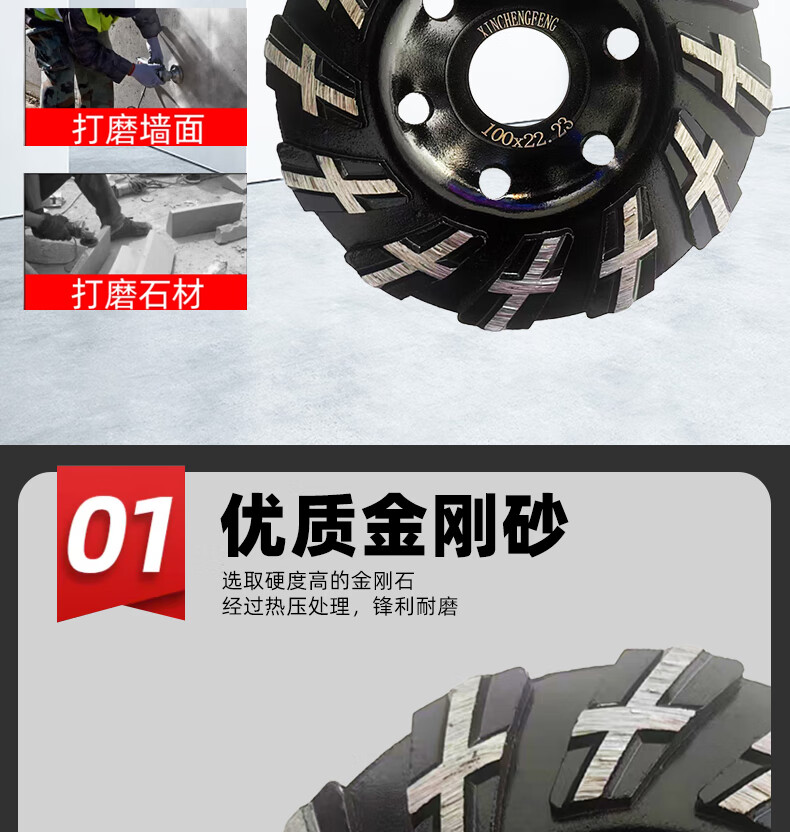 Xinchengfeng diamond grinding disc cement stone concrete grinding disc angle grinder emery bowl grinder floor polisher grinding disc 100 square meters comprehensive type (black gold grinding disc)