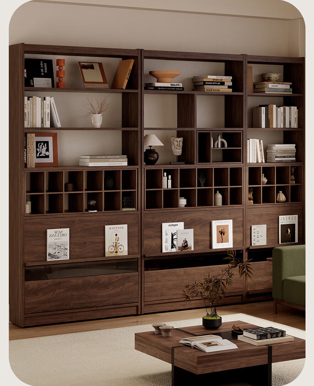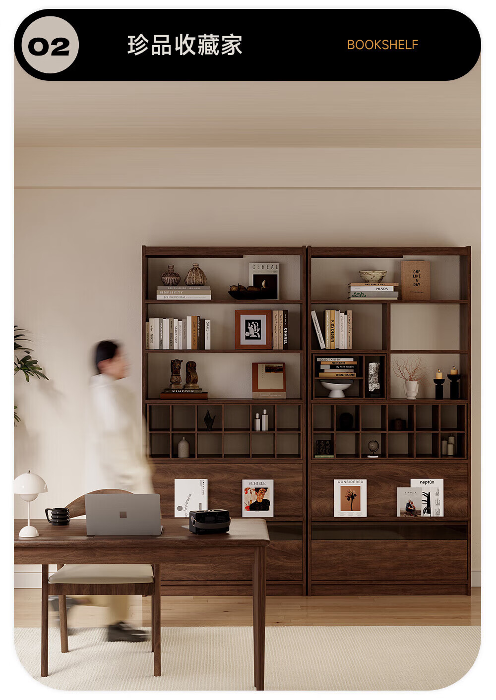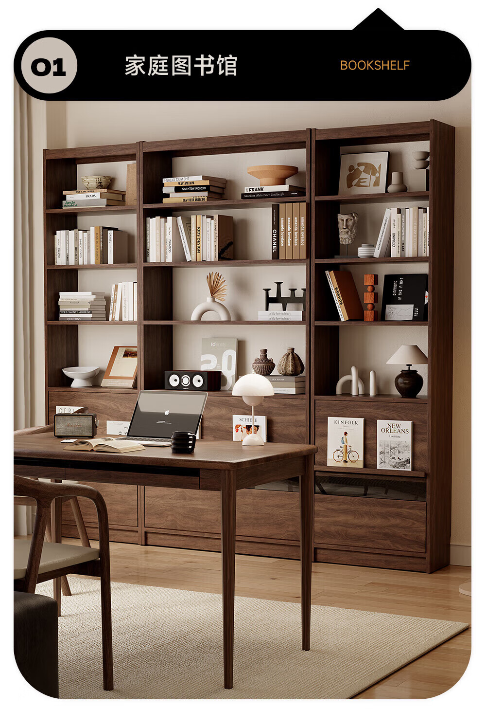 Huisheng new Chinese style North American black walnut Bogu rack home study bookshelf living room storage rack office tea room modern Mingsi bookshelf B