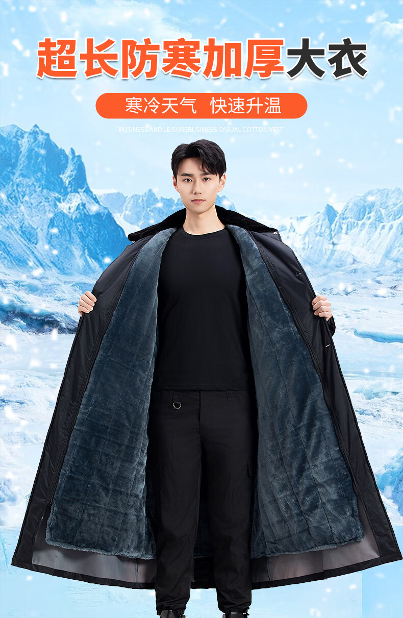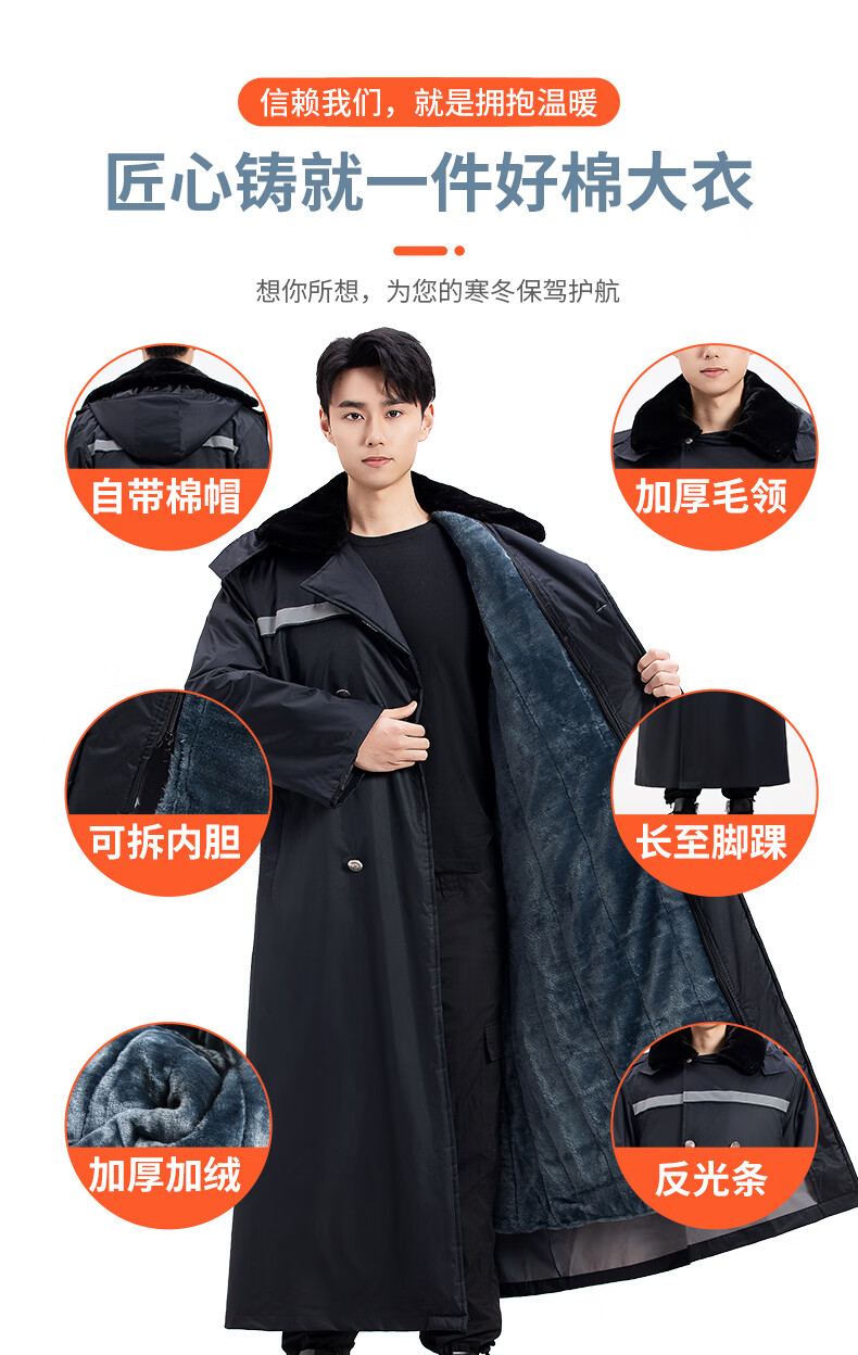 Qingzang Bear Q, ZANGBEAR military coat men's winter velvet thickened long cold storage cold storage security labor protection cotton coat Northeast Army winter coat extra long 128cm with reflective strips - detachable liner hat one size fits all (120-200Jin Jin is equal to 0.5 kg)