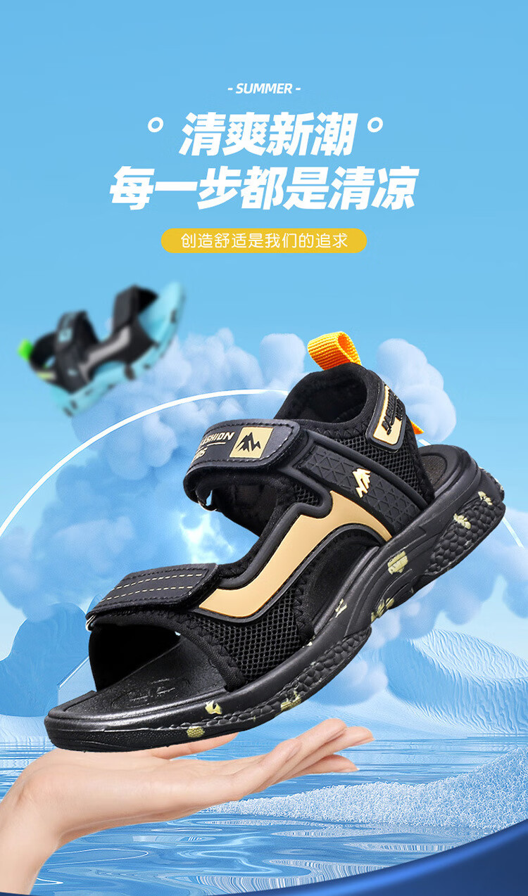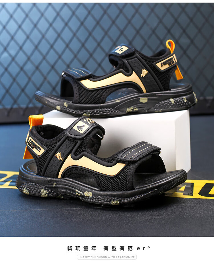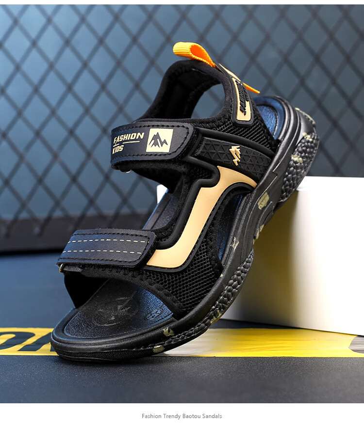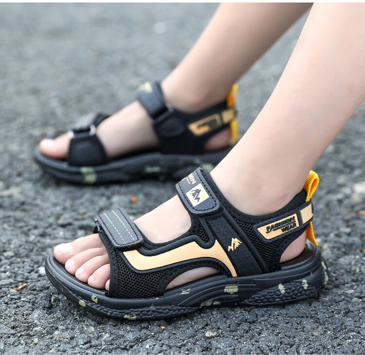 2025 New Children's Shoes Summer Boys' Sandals Anti-Slip Soft Sole Children's Beach Shoes Boys' Shoes Medium and Large Children 199 Gold 32