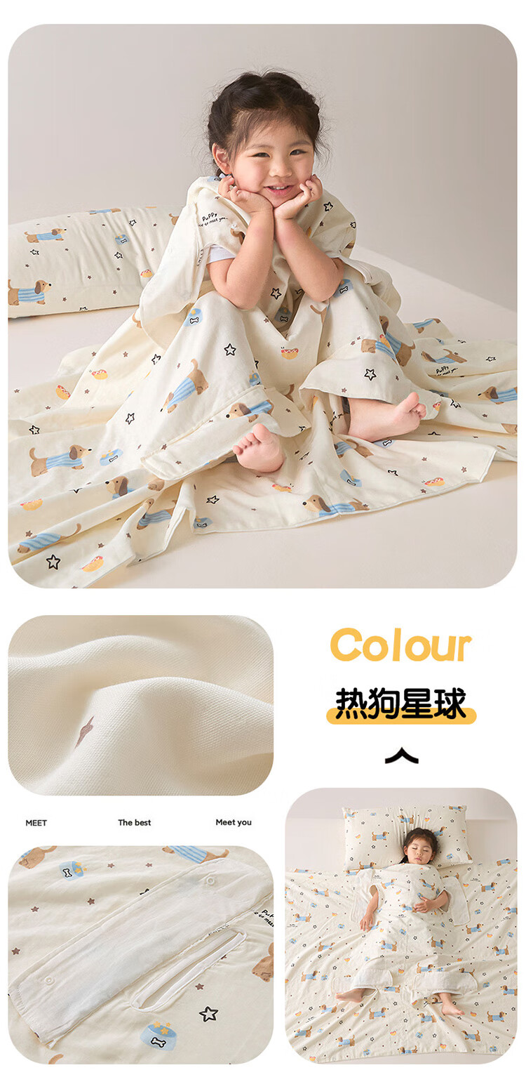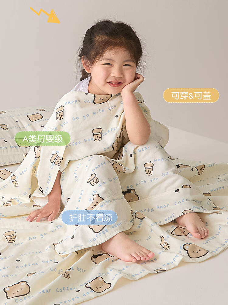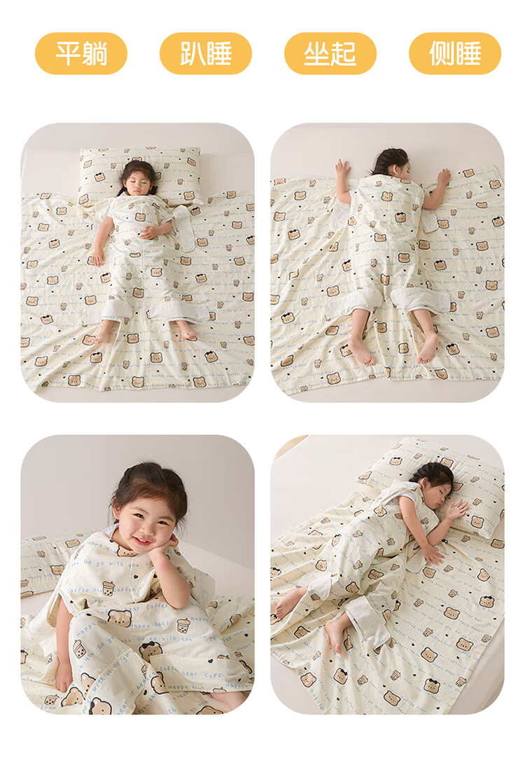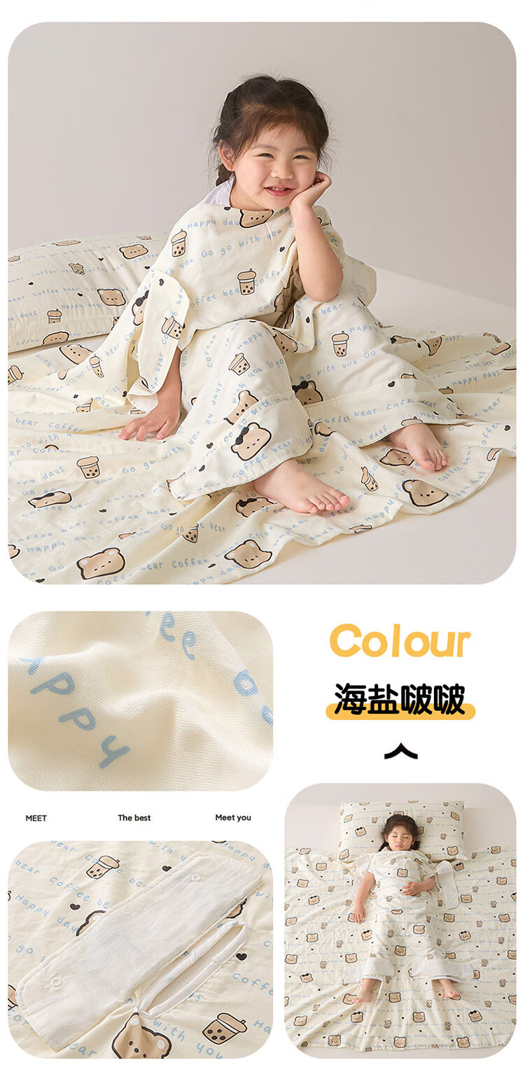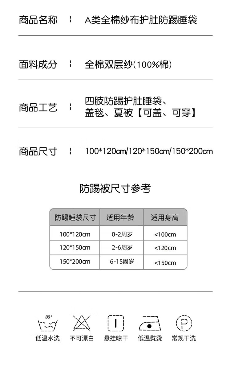 Summer Class A cotton double-layer gauze baby belly protection anti-kick quilt sleeping bag multi-functional student anti-cool summer quilt artifact Xunmi-Tiancha Class A cotton double-layer gauze 150*200cm