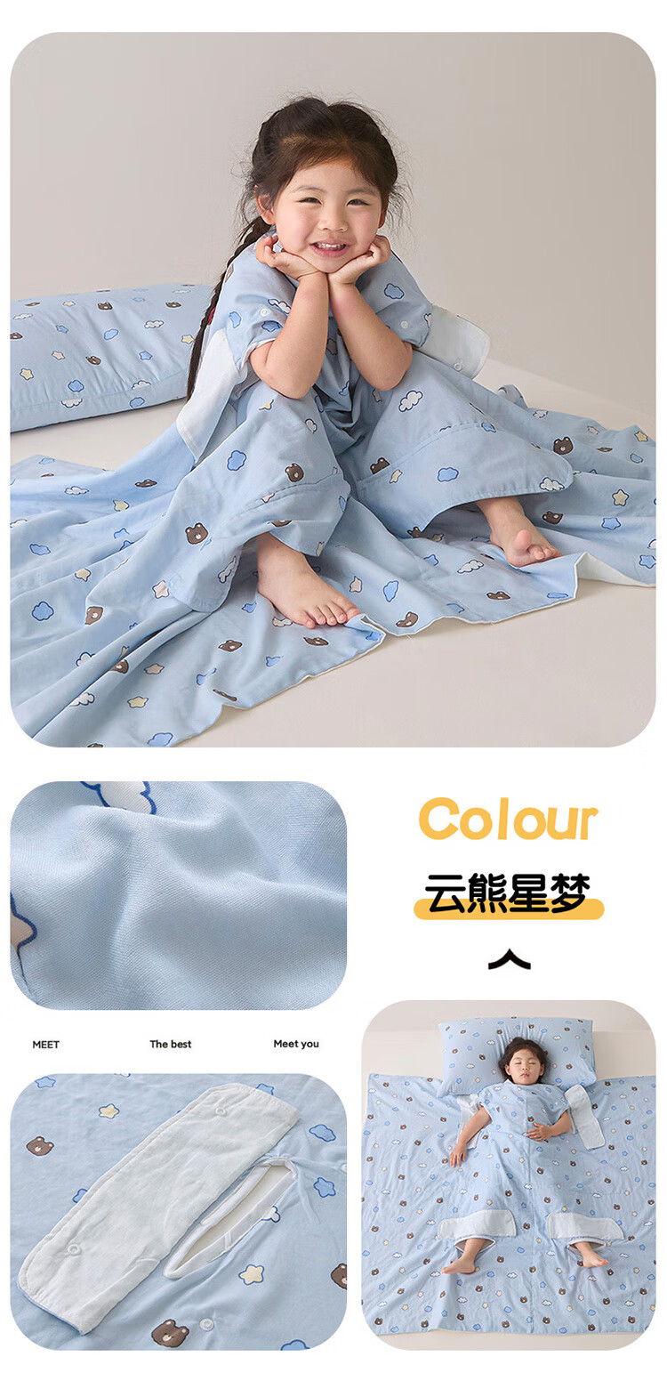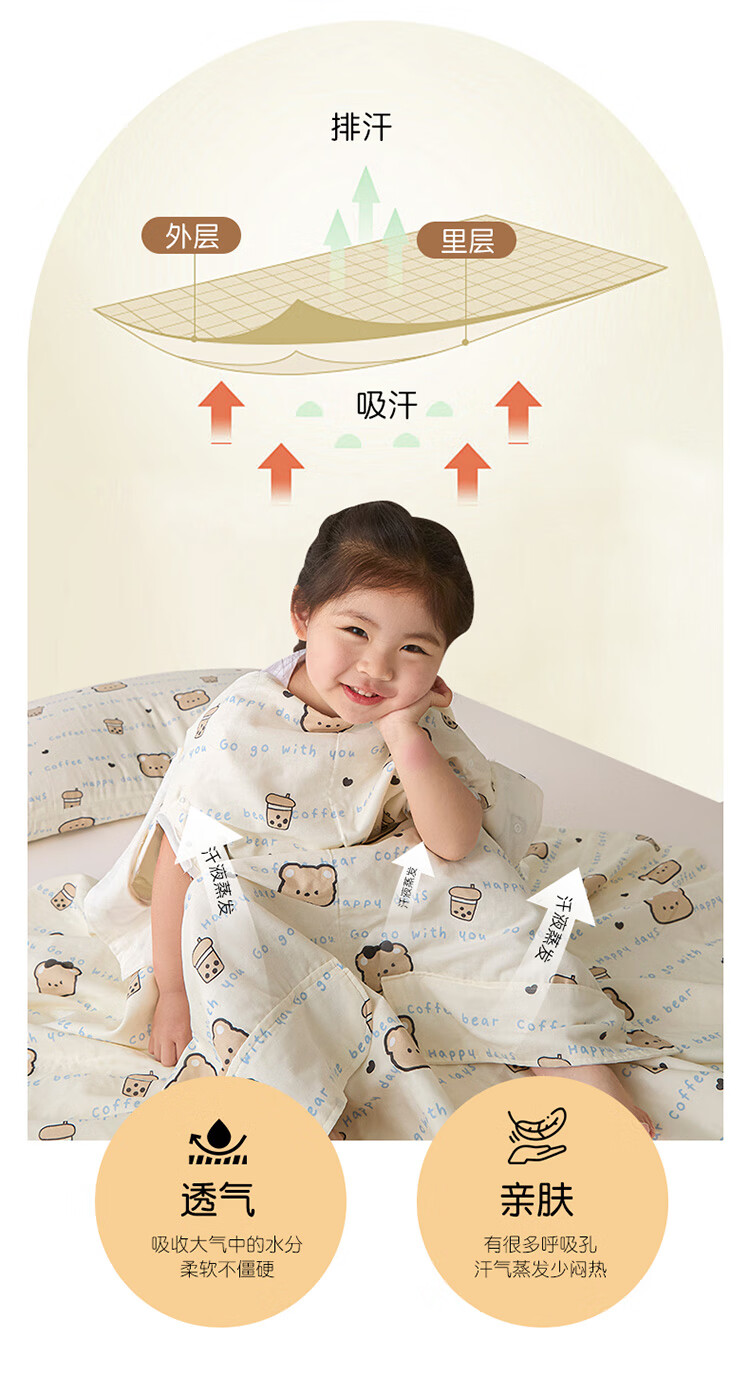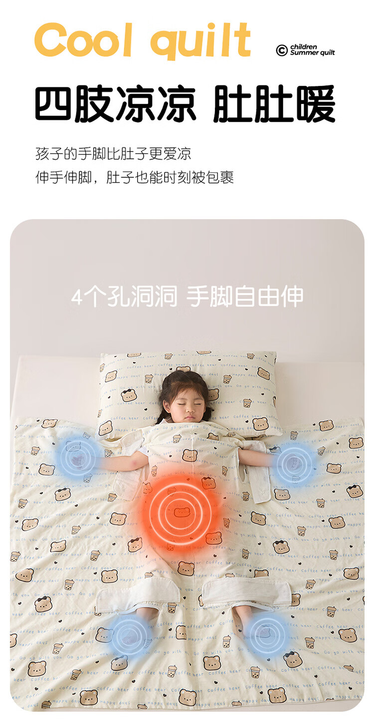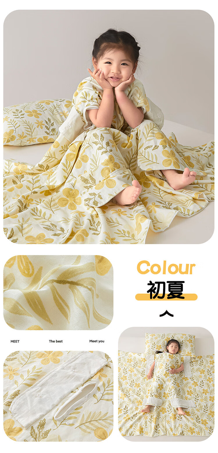 Summer Class A cotton double-layer gauze baby belly protection anti-kick quilt sleeping bag multi-functional student anti-cool summer quilt artifact Xunmi-Tiancha Class A cotton double-layer gauze 150*200cm