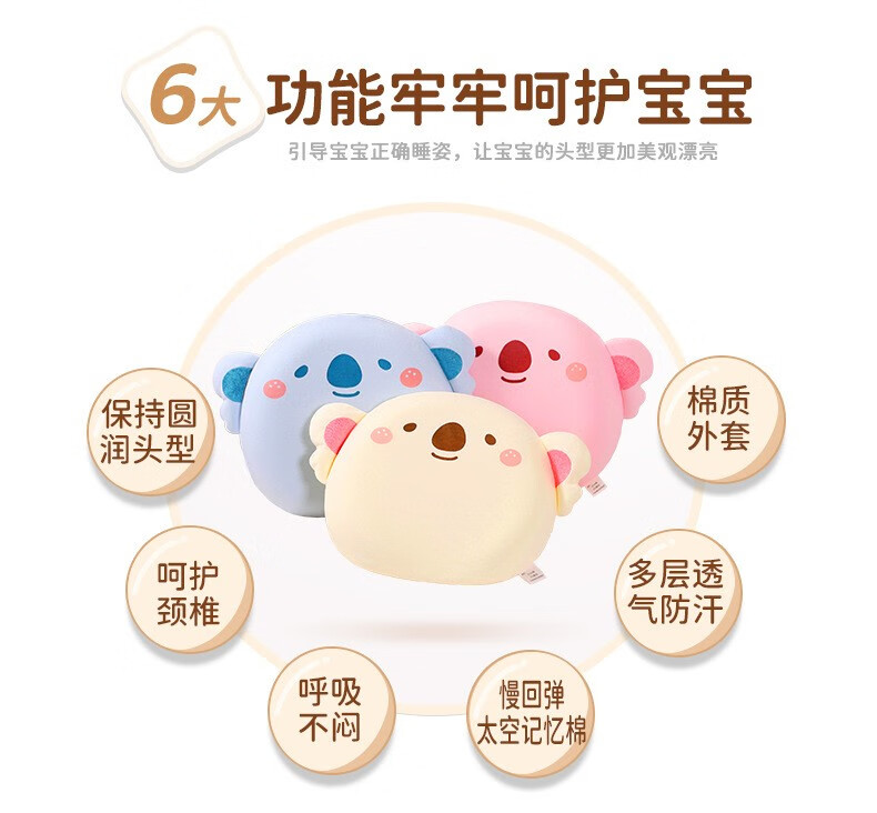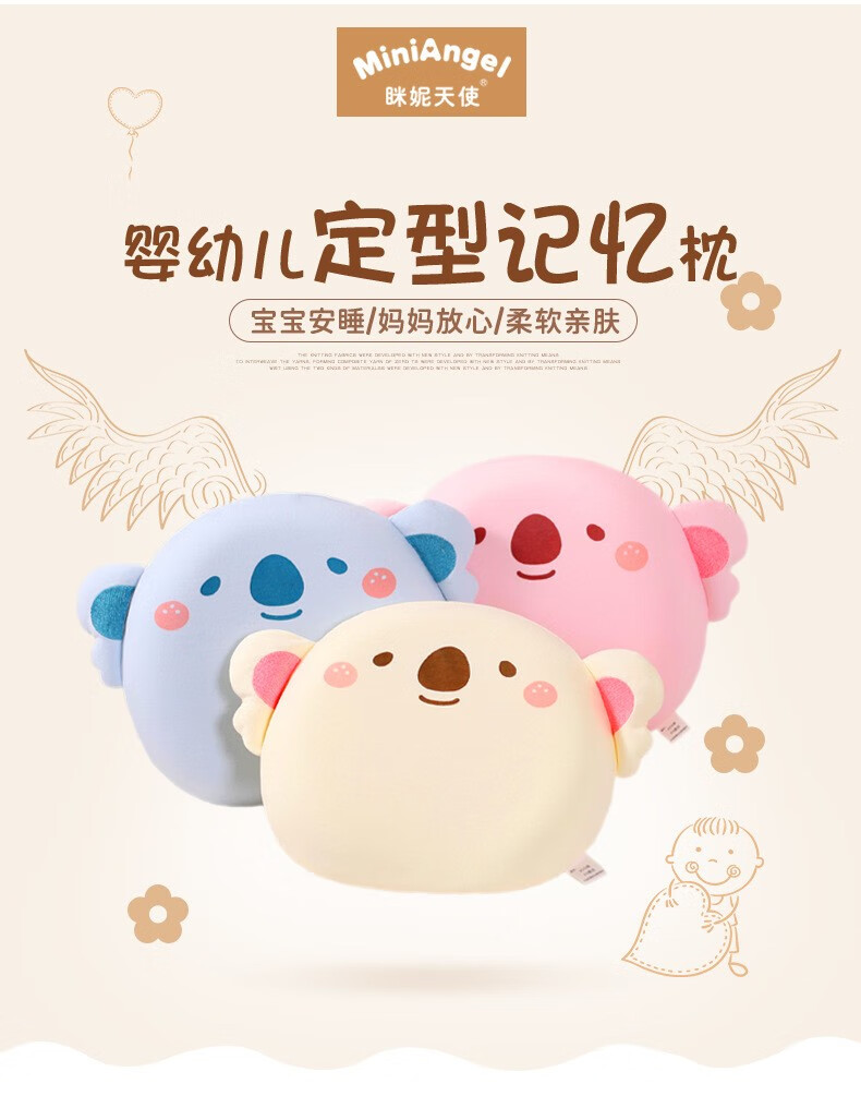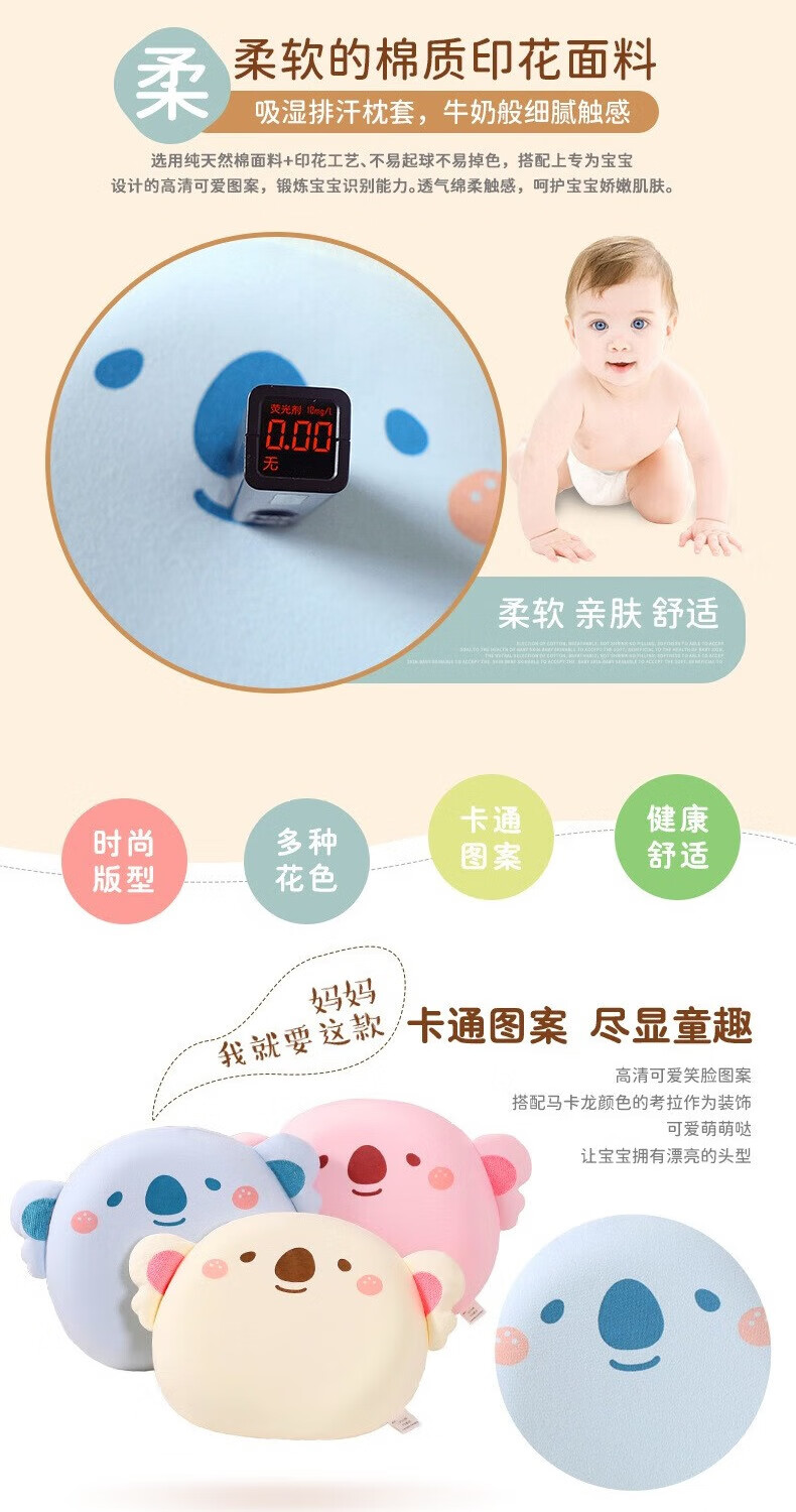 2025 new summer baby pillow shaping pillow 0 to 1 year old memory foam newborn baby's head-shaped pillow blue