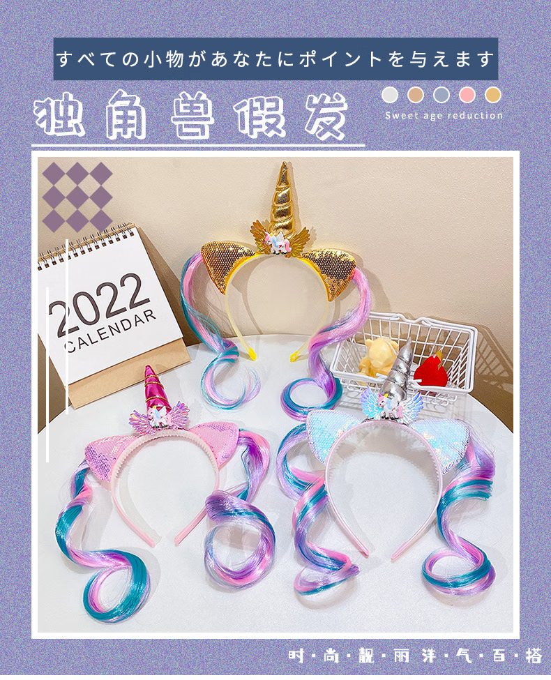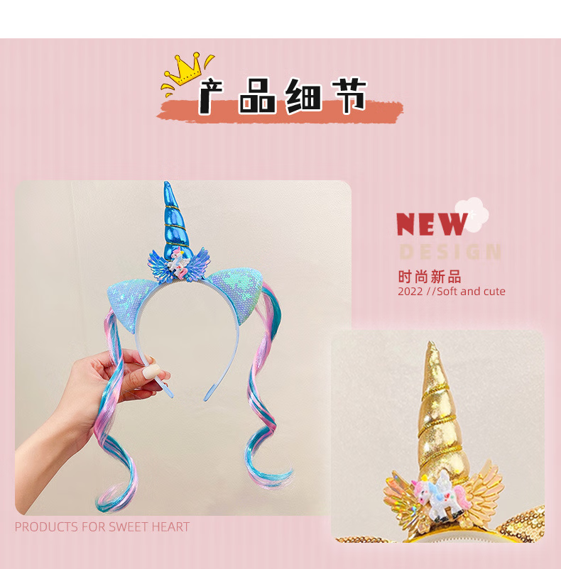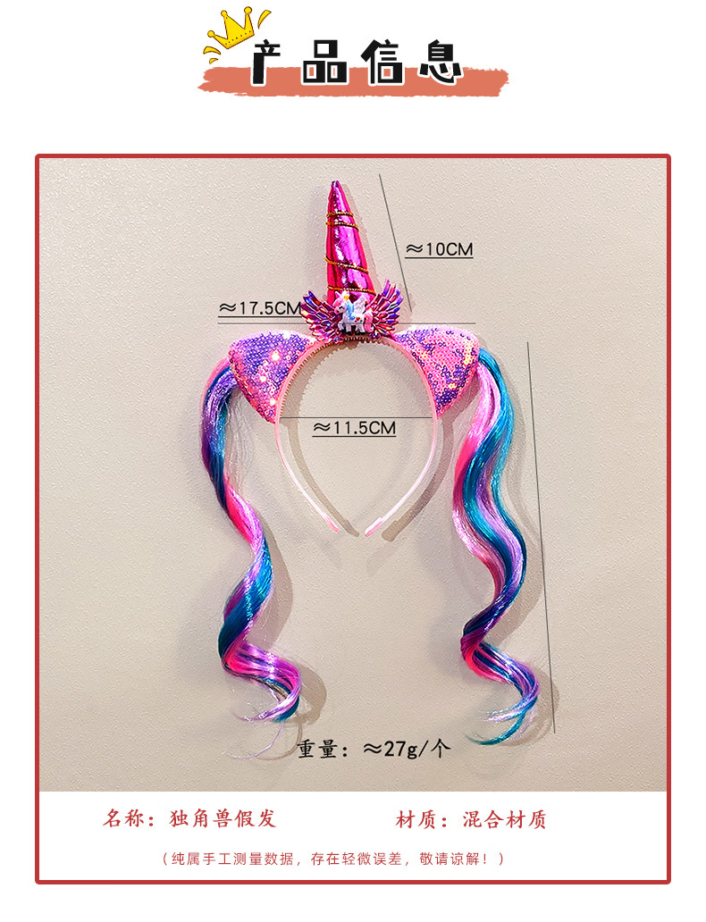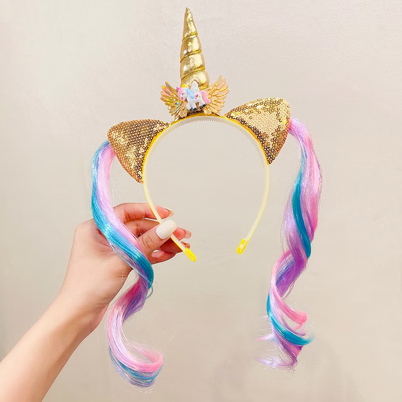 Jieyi Unicorn Headband Wig Halloween Party Performance Props Children's Cute Cartoon Fish Tail Sequined Shell Headdress One Pack Unicorn Gold Headband