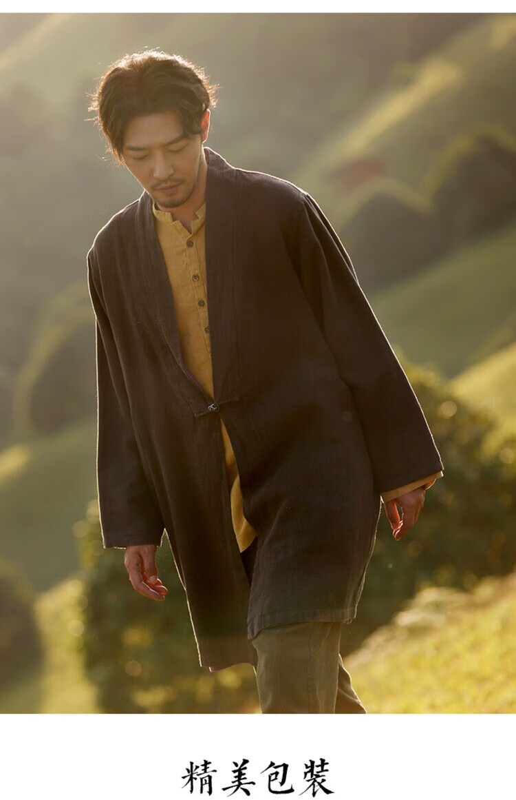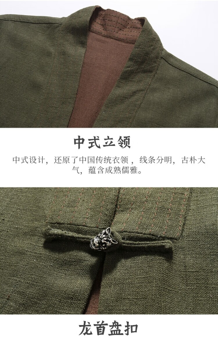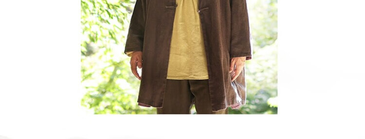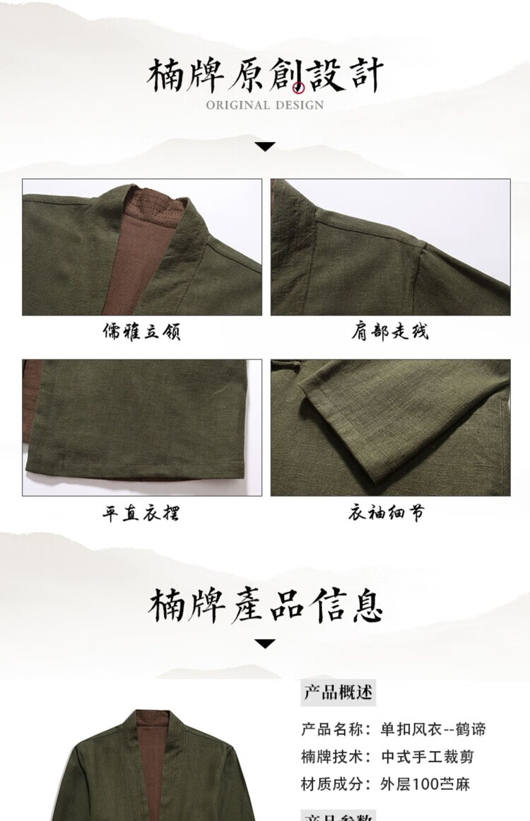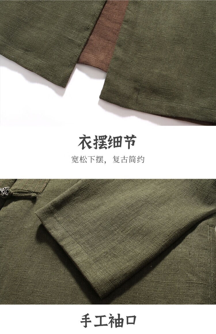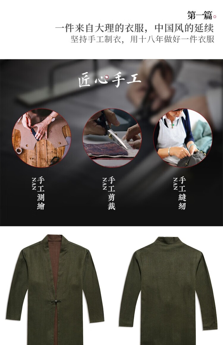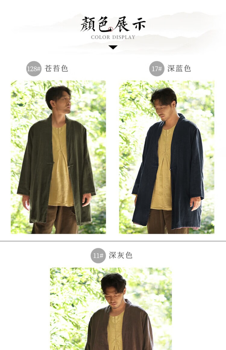 Nan Chinese style men's autumn windbreaker ramie Chinese handmade buckle top large size men's casual jacket Hedi 17# dark blue L