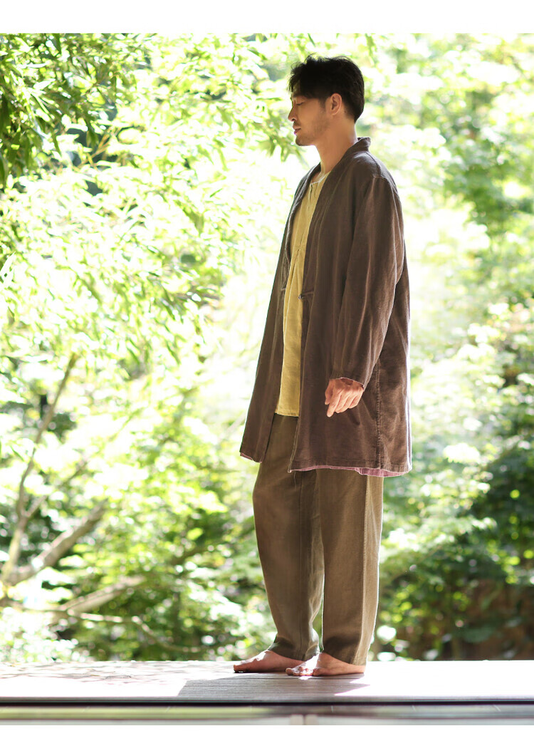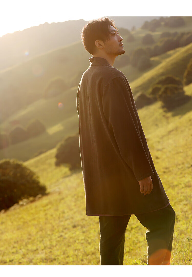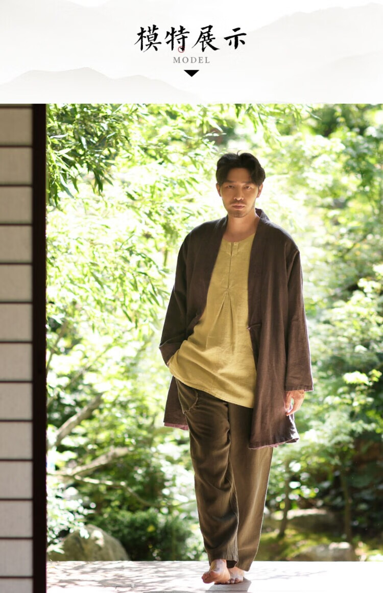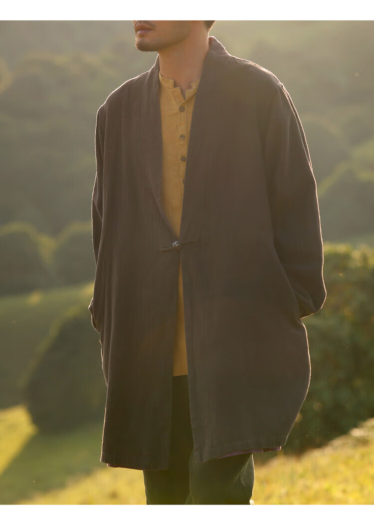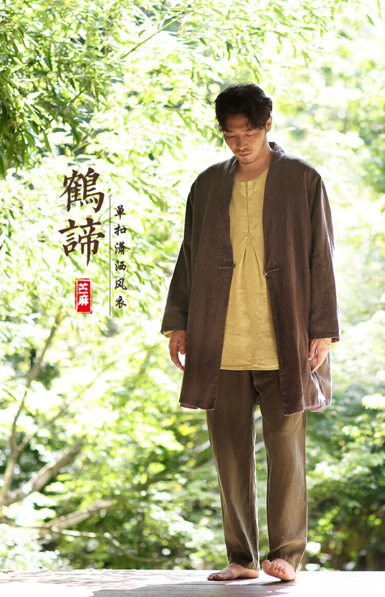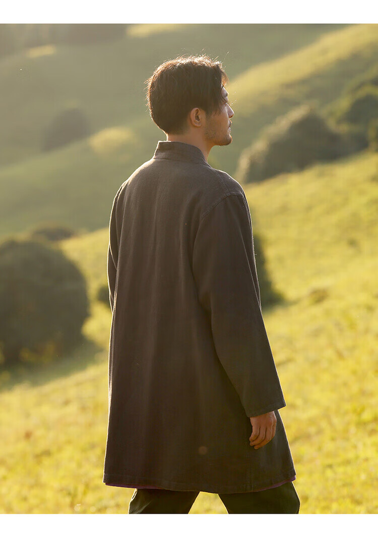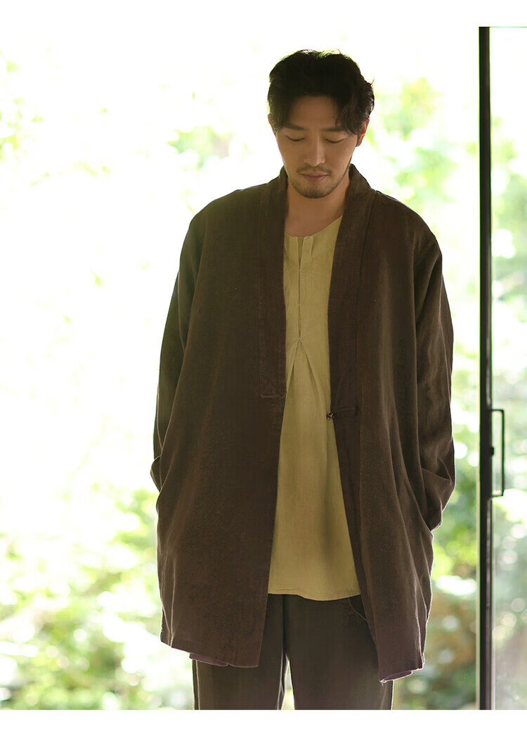 Nan Chinese style men's autumn windbreaker ramie Chinese handmade buckle top large size men's casual jacket Hedi 17# dark blue L