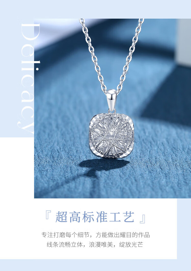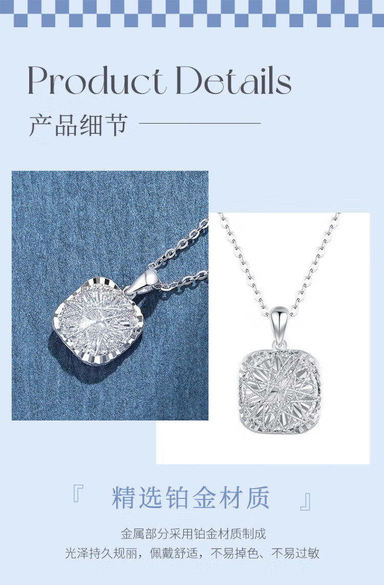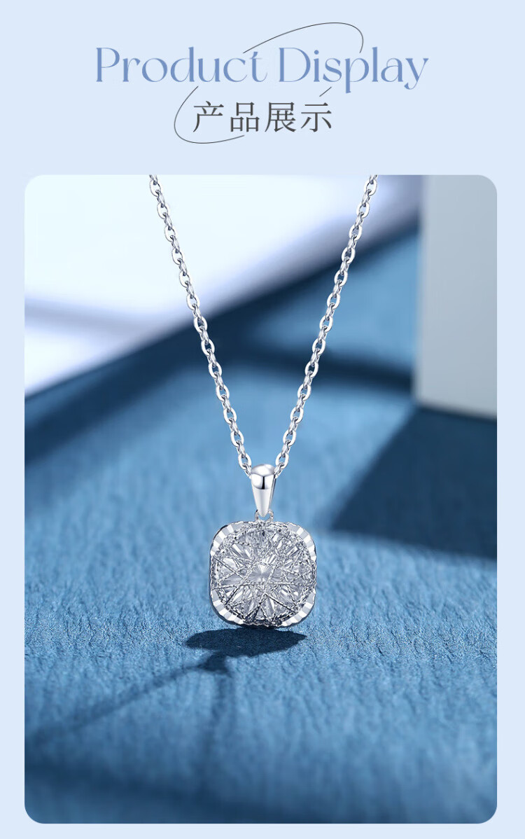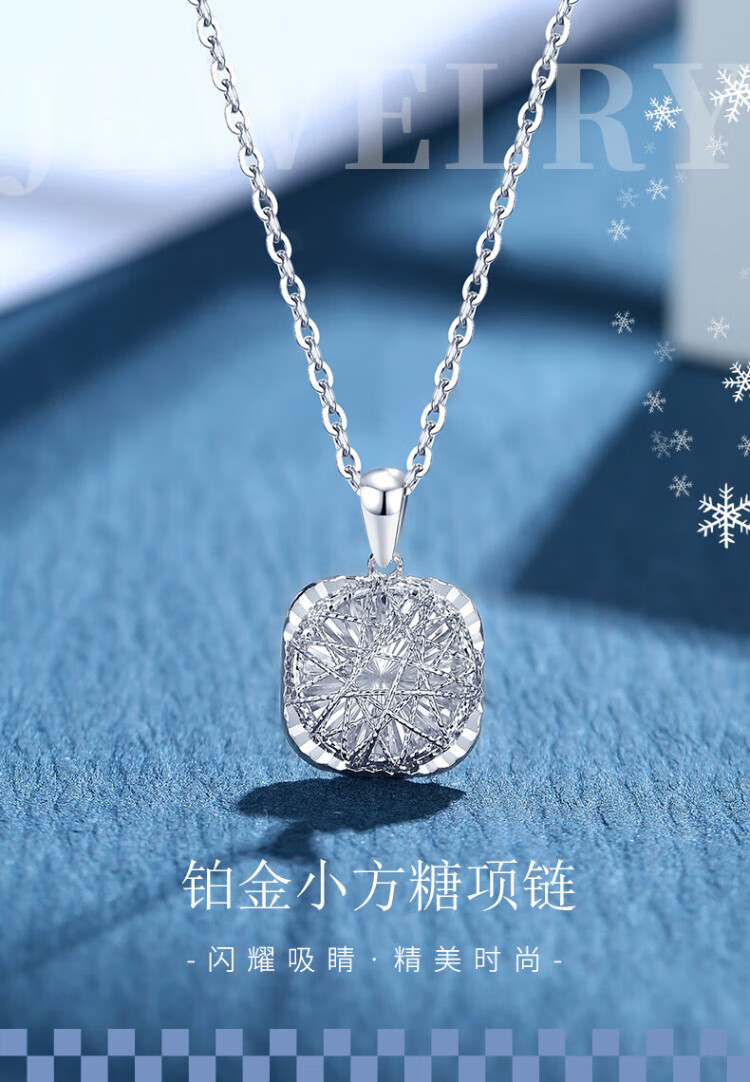 RHM platinum sugar cube necklace for women, sparkling platinum pendant, high-end clavicle chain, Valentine's Day gift for girlfriend, platinum sugar cube pendant + 925 chain + certificate + gift box