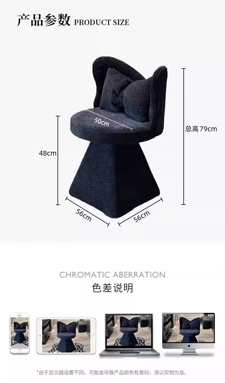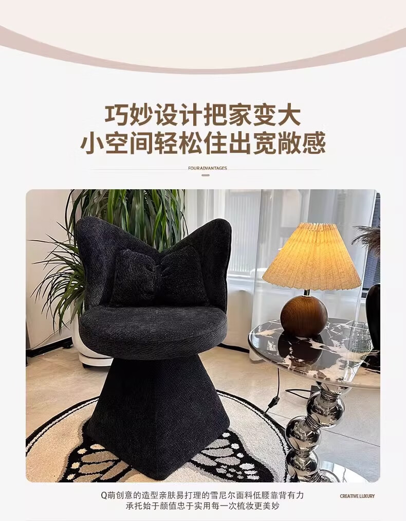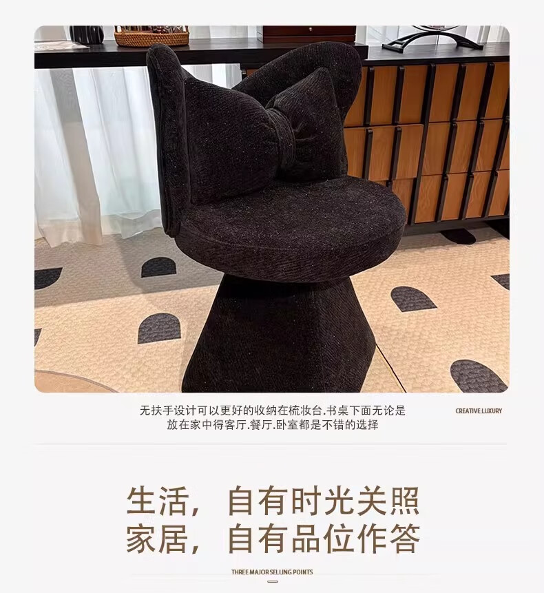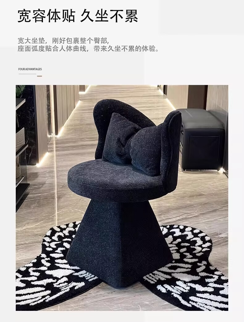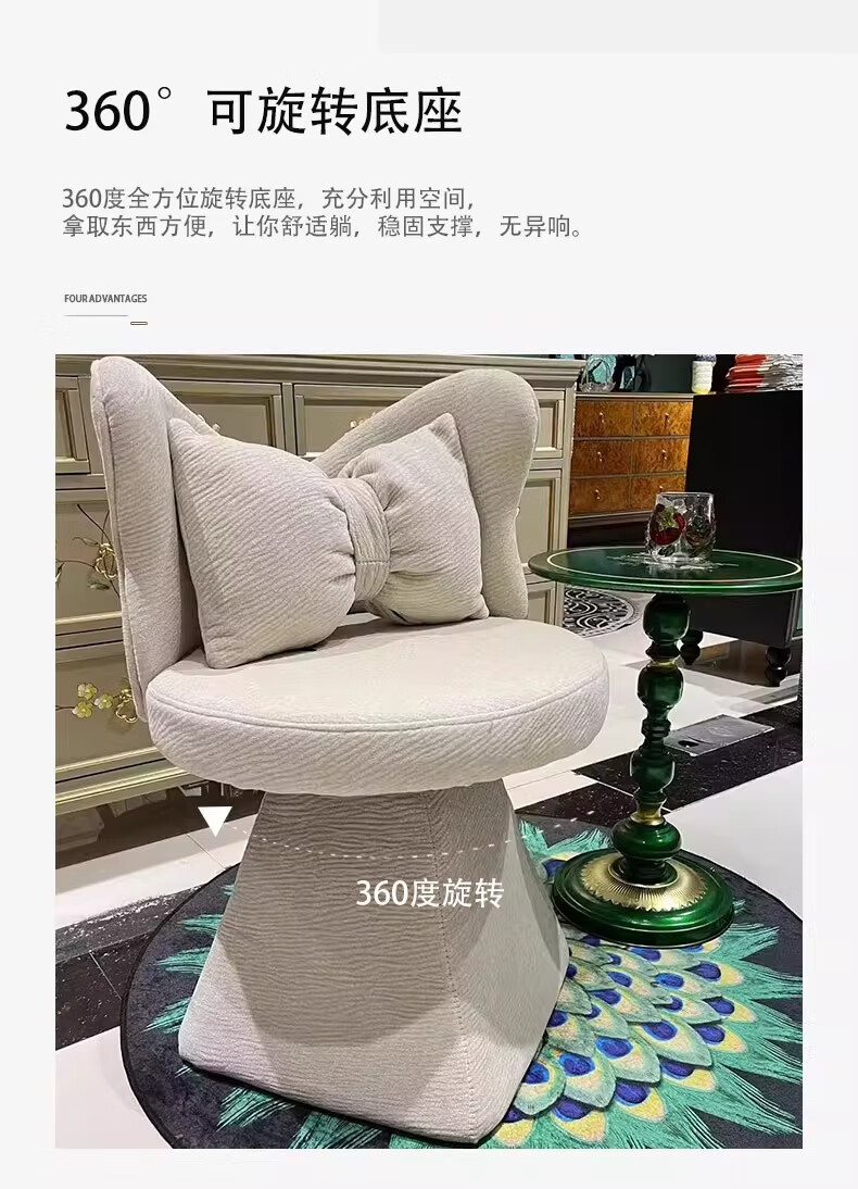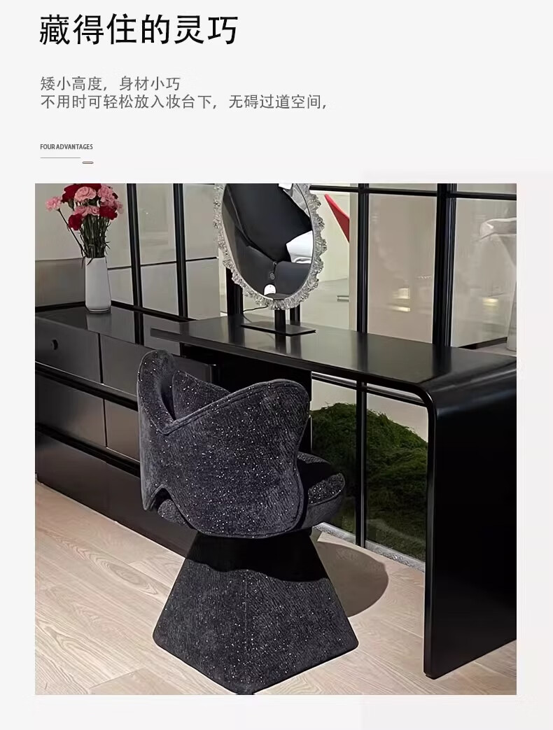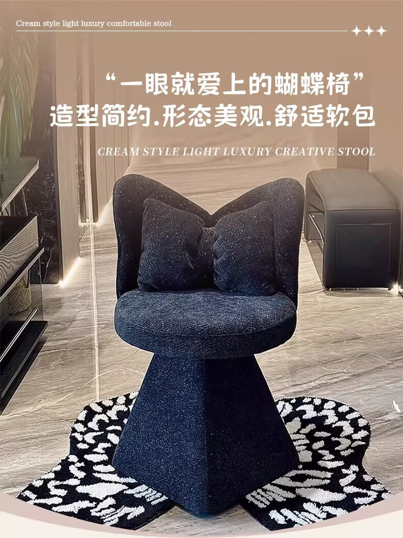 Tangke dressing table stool light luxury high-end designer butterfly chair rotatable girls bedroom cloakroom French makeup chair butterfly chair starry sky black rotatable