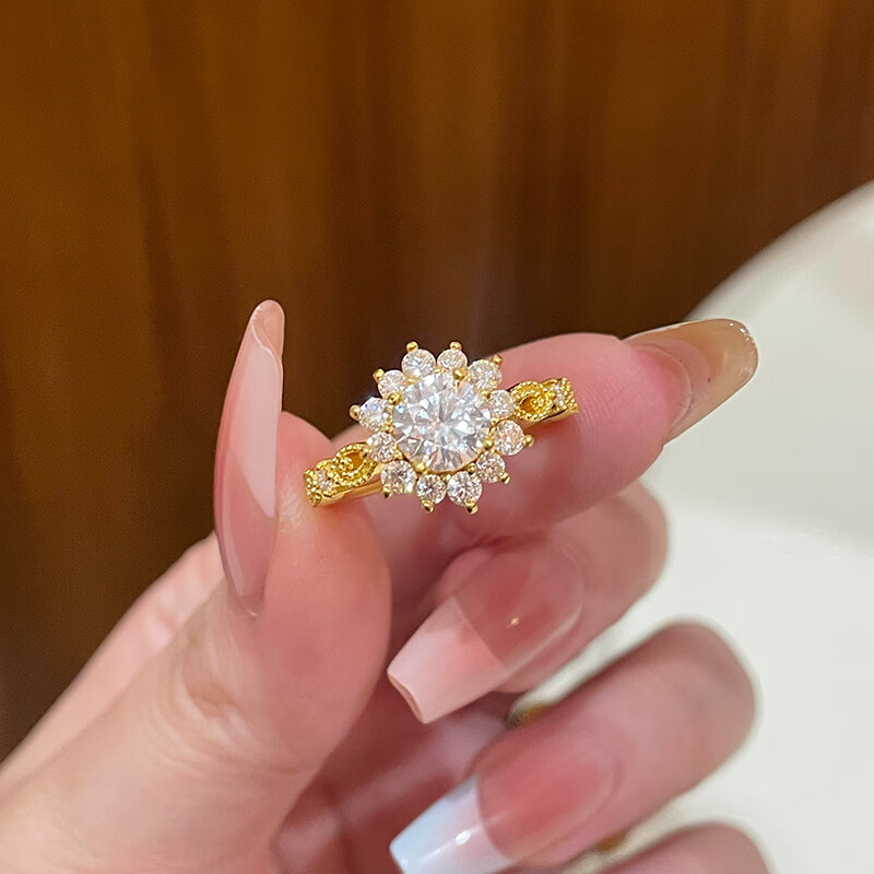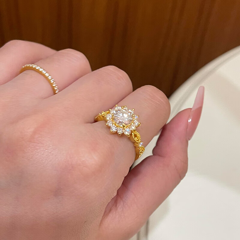 Qingyi 999 pure gold sunflower dove egg gold ring for women, flash gold ring, 520 gift for girlfriend, 11 circle size, gold about 1.8g-1.9g
