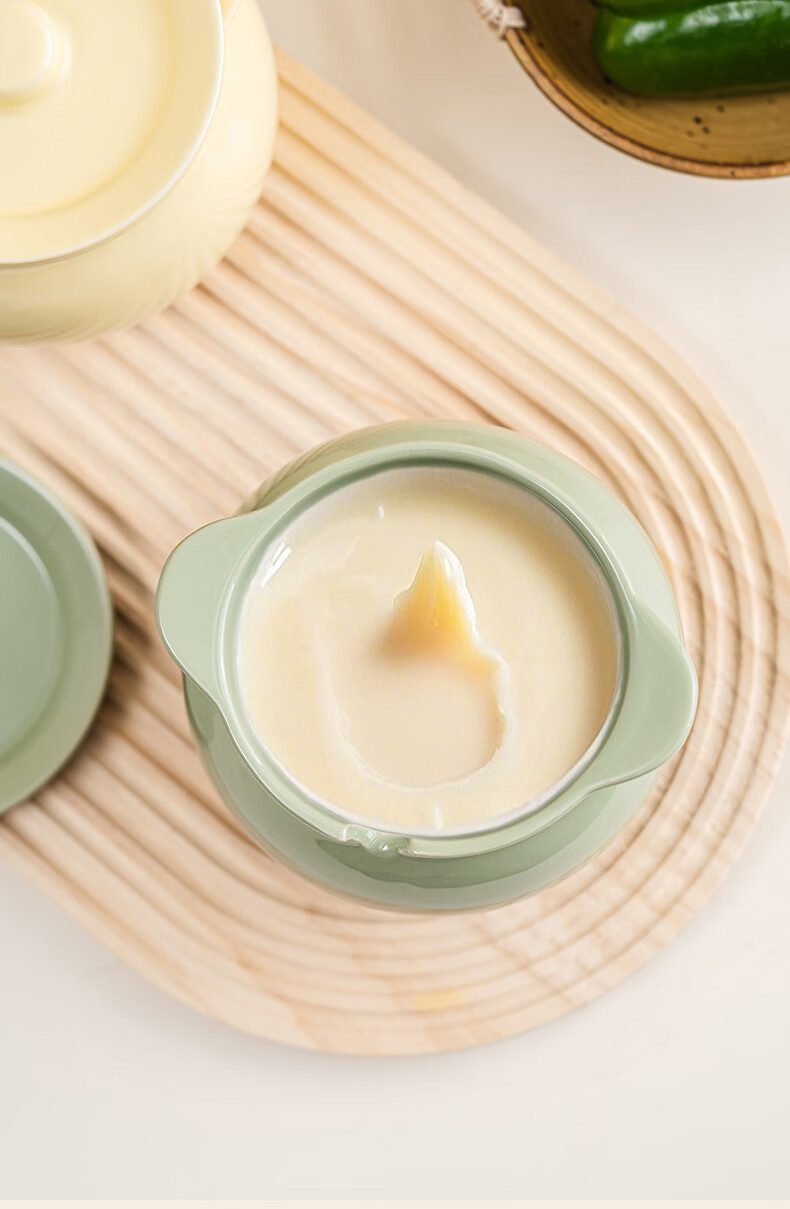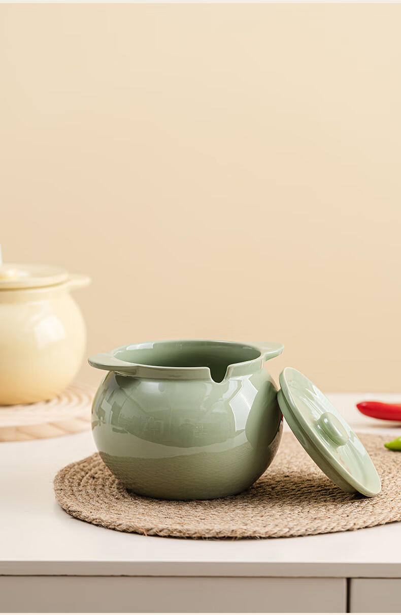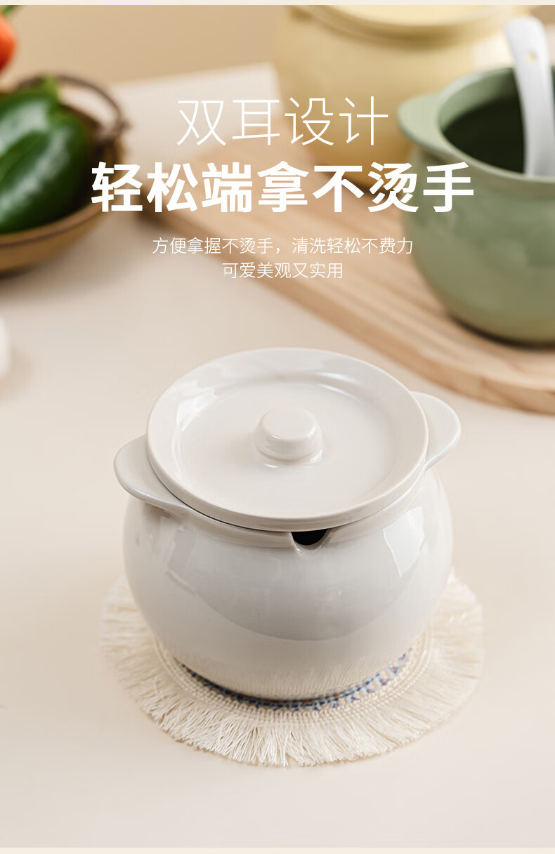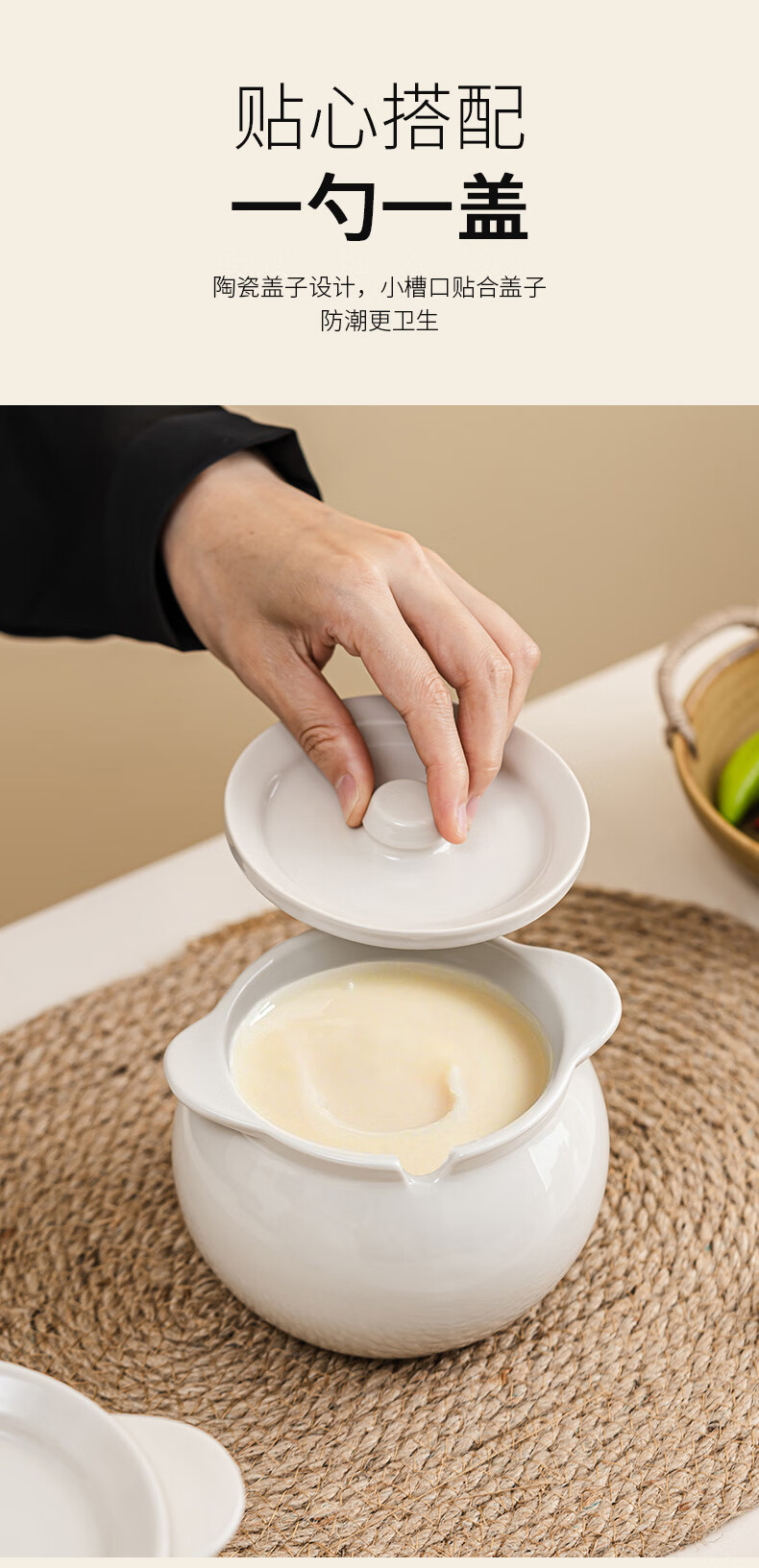 Yundi lard tank kitchen household high temperature resistant ceramic with lid spoon filter red oil filled meat oil chili oil tank storage tank 700ML lard tank (with spoon) milk white (2 pieces) as shown in the picture
