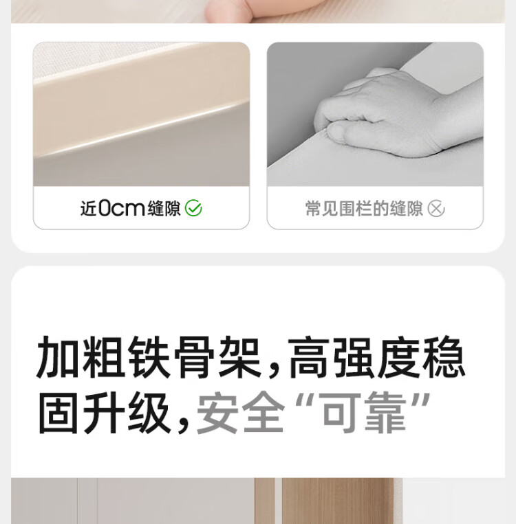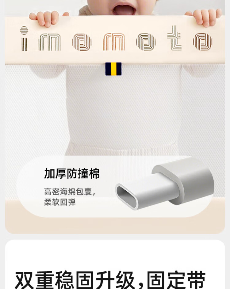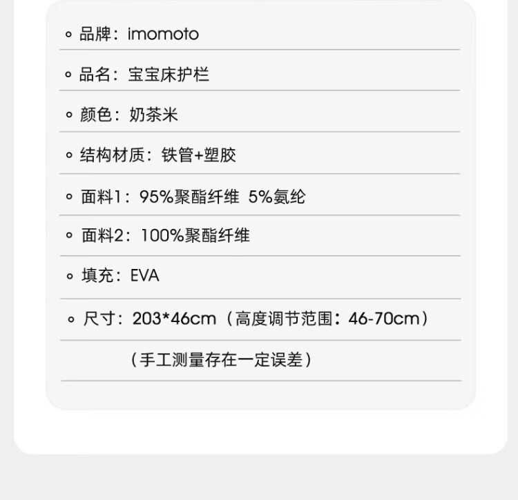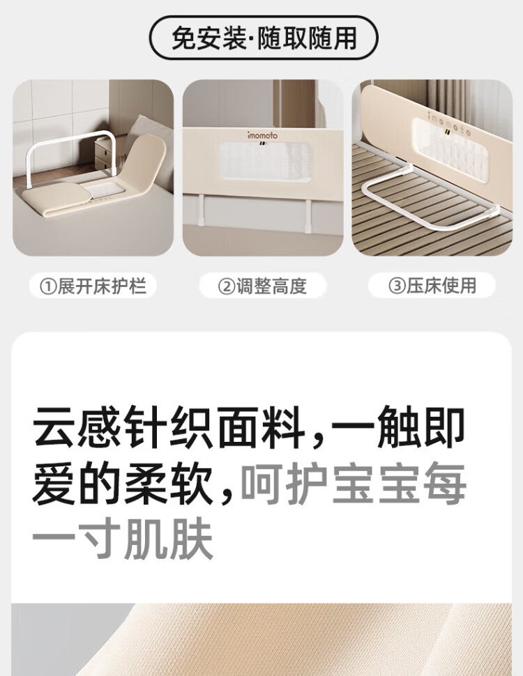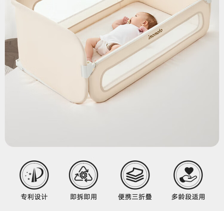 IMOMOTO bed fence baby free installation no punching anti-fall splicing bedside bezel baby portable travel guardrail milk tea rice 2m three-sided no assembly + free storage bag no assembly + free storage bag