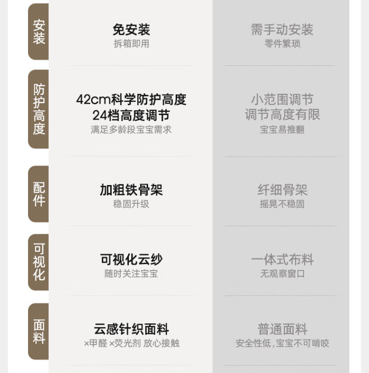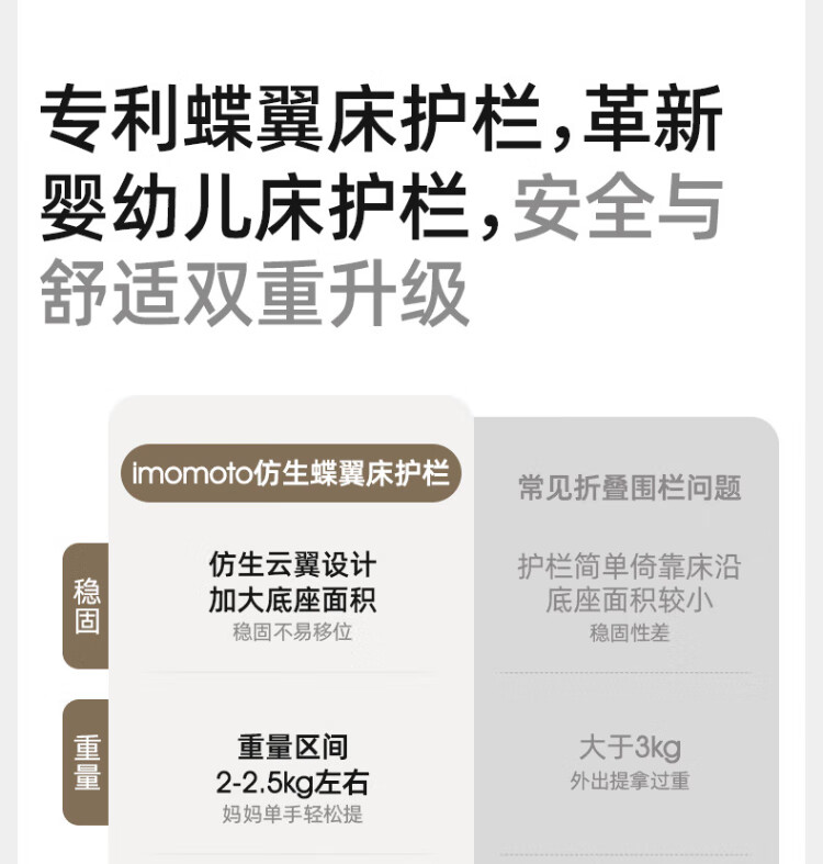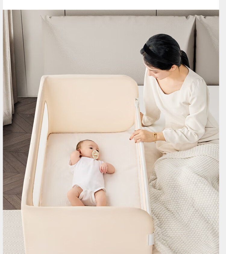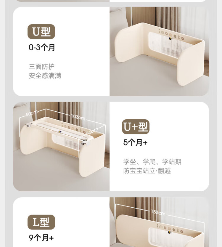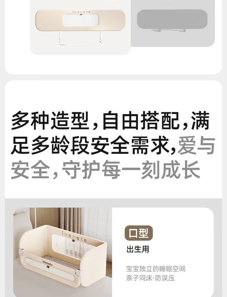 IMOMOTO bed fence baby free installation no punching anti-fall splicing bedside bezel baby portable travel guardrail milk tea rice 2m three-sided no assembly + free storage bag no assembly + free storage bag