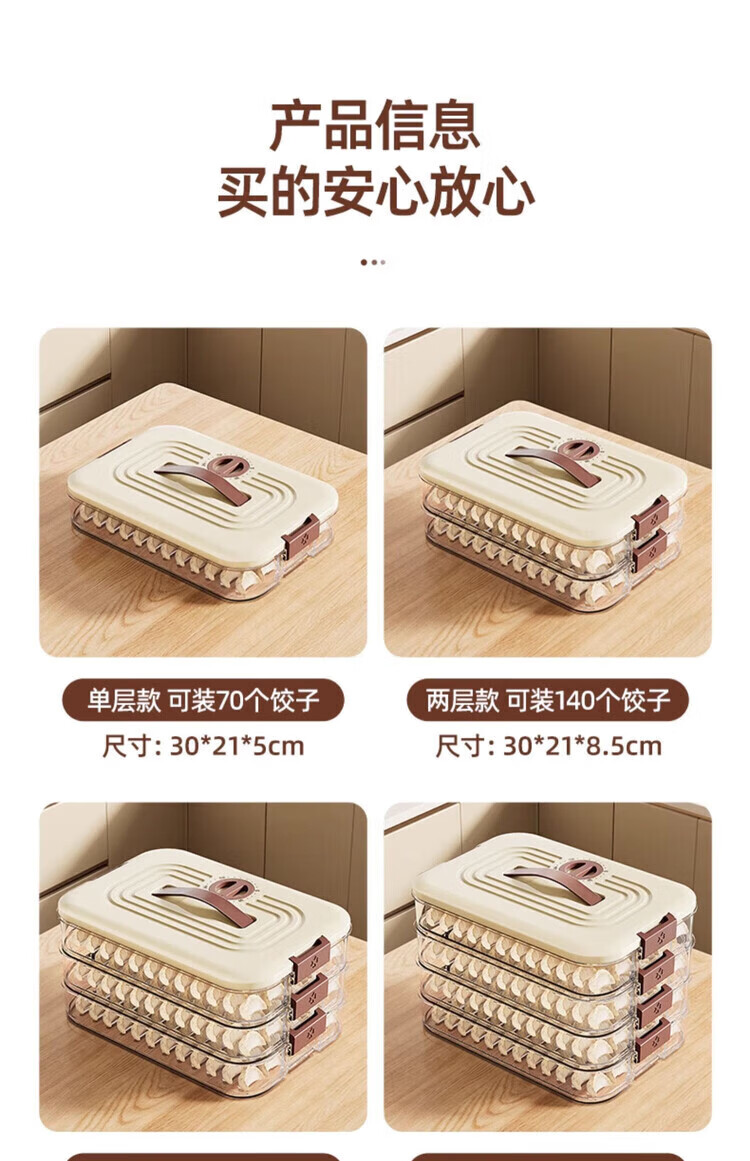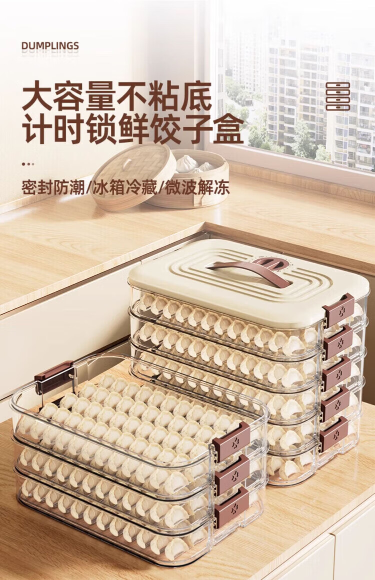 Wild pigeon dumpling storage box for refrigerator, special frozen box for food, dumpling tray, multi-layer quick-frozen wonton crisper, can hold 140 dumplings, portable, 2 layers, default, default, default