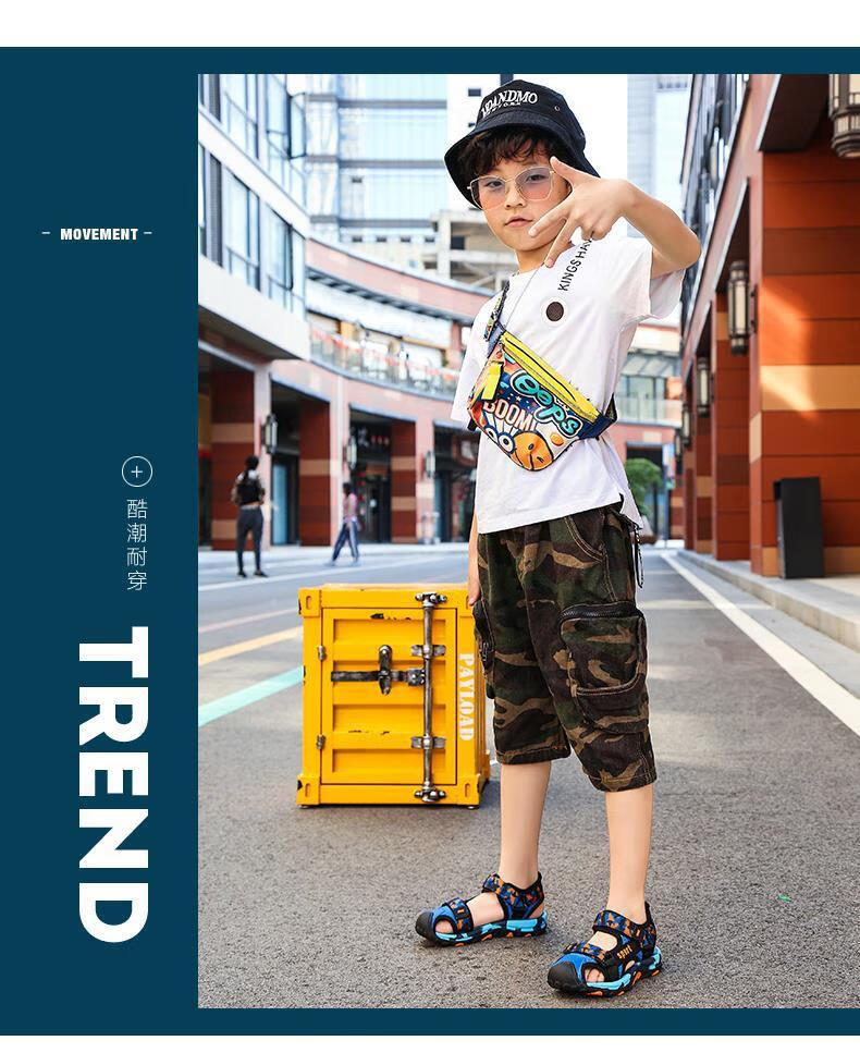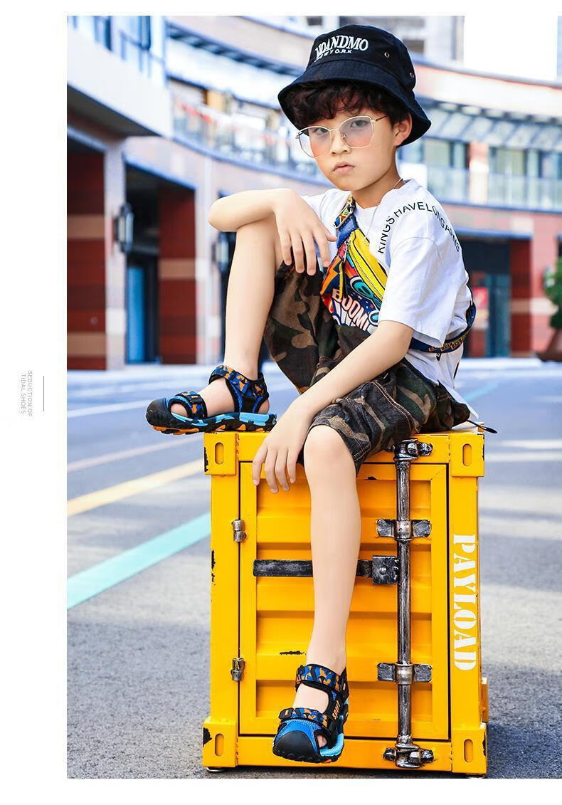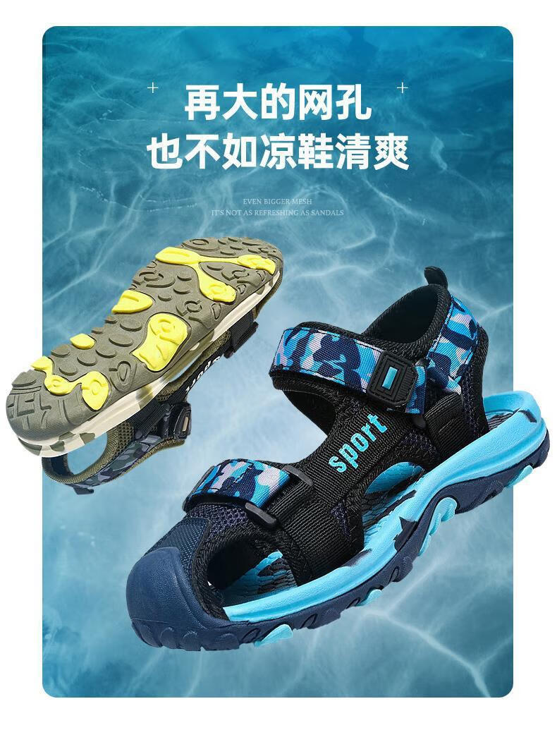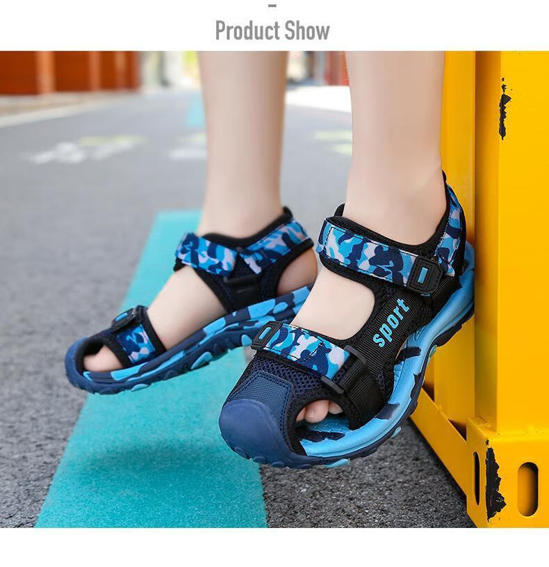 Sandals for boys, middle and large children, Baotou non-slip style, summer 2025 children's shoes, children's boys' sports beach soft soles, HX028 Blue Moon, size 35, inner length 225 cm