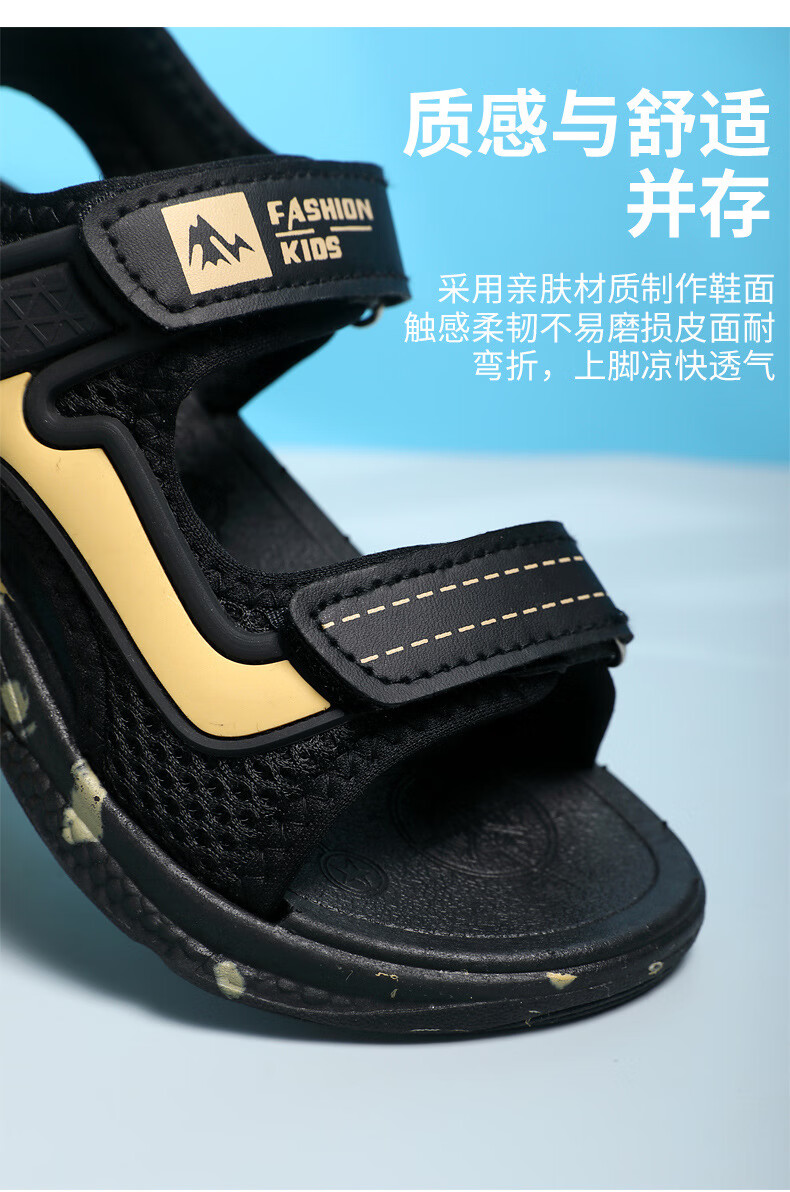 Children's shoes 2025 summer new style large, medium and small soft sole non-slip children's sandals sports shoes trendy boys sandals beach black gold 32
