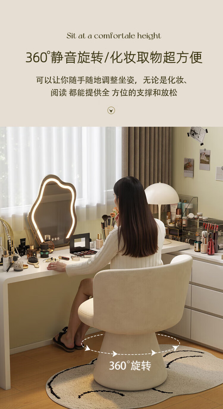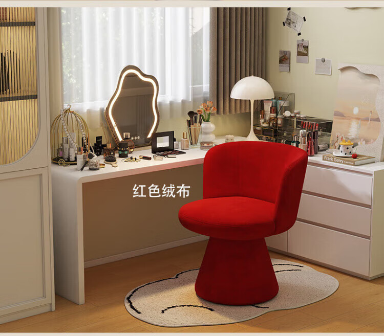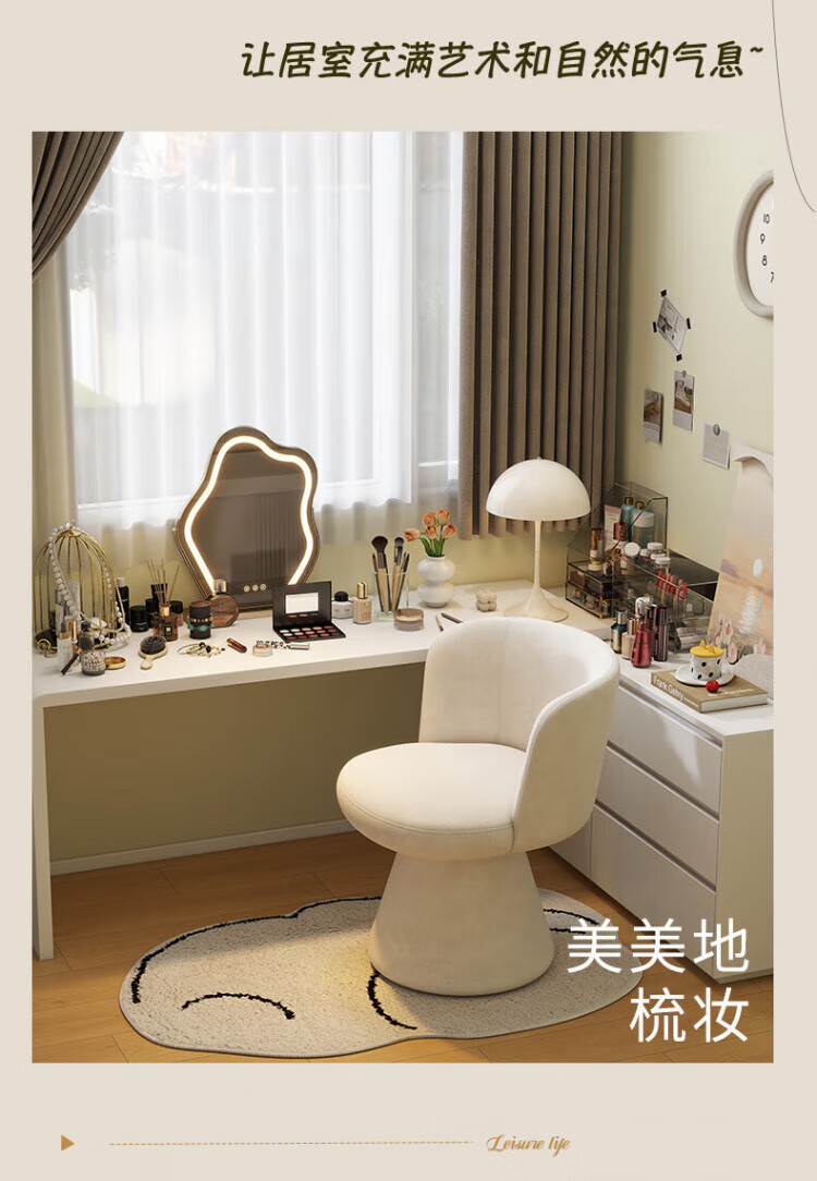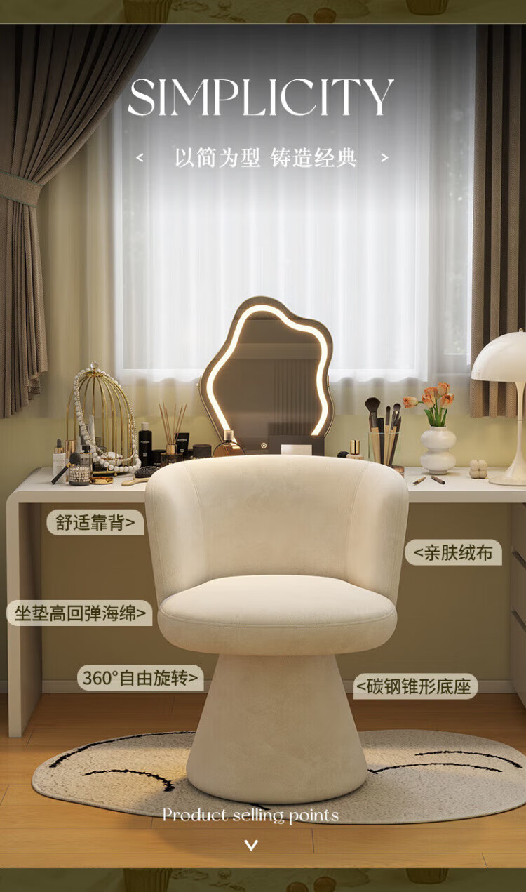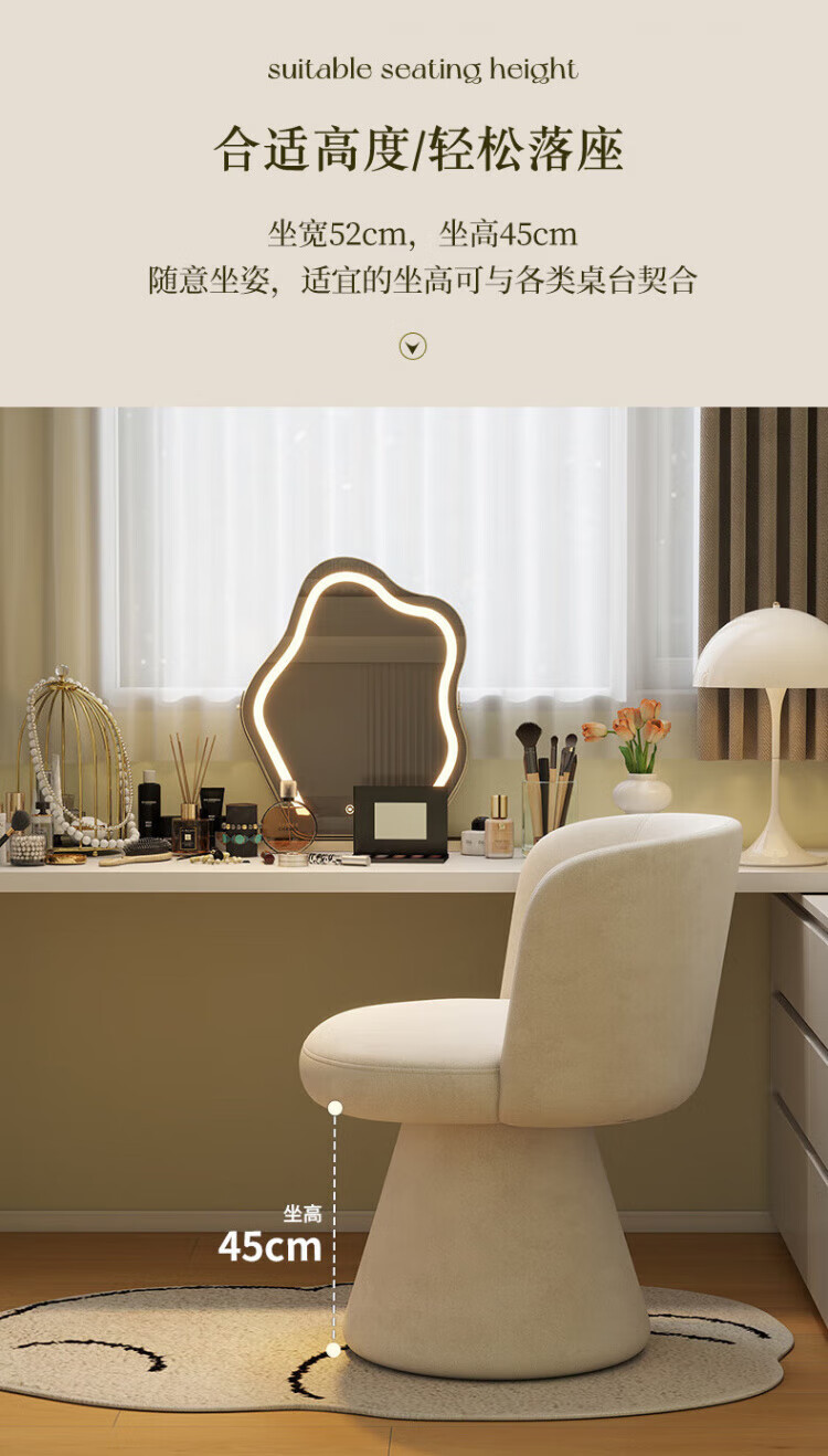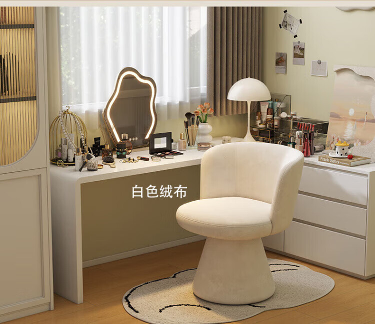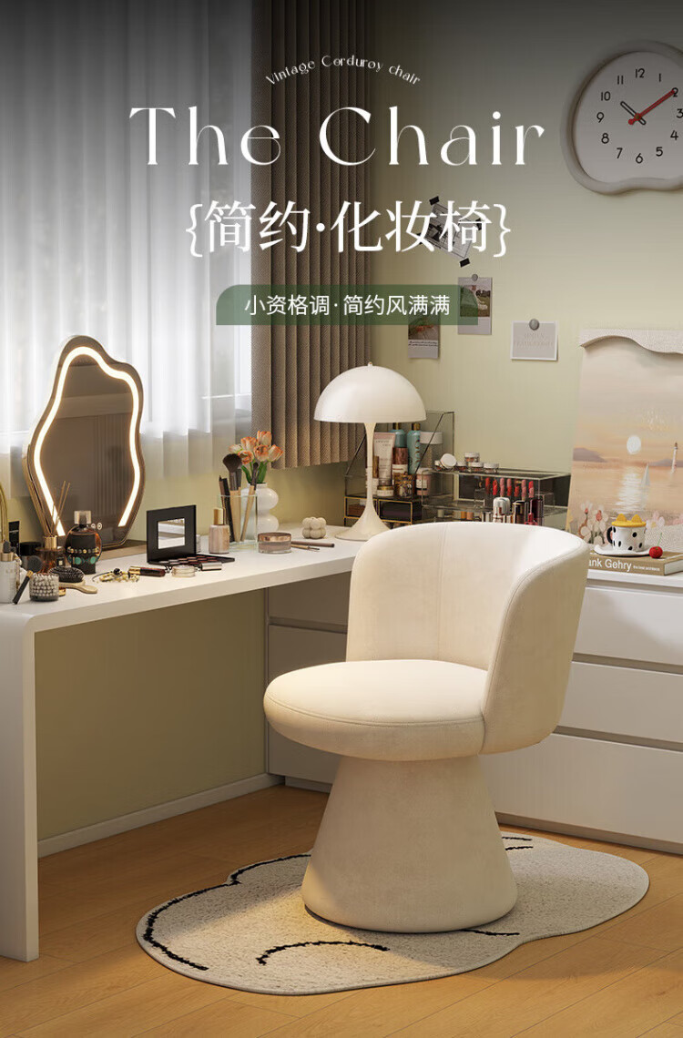 Mauya Nordic makeup stool rotatable girls bedroom high-end dressing table chair designer single cloakroom stool 360 rotation | off-white skin-friendly velvet