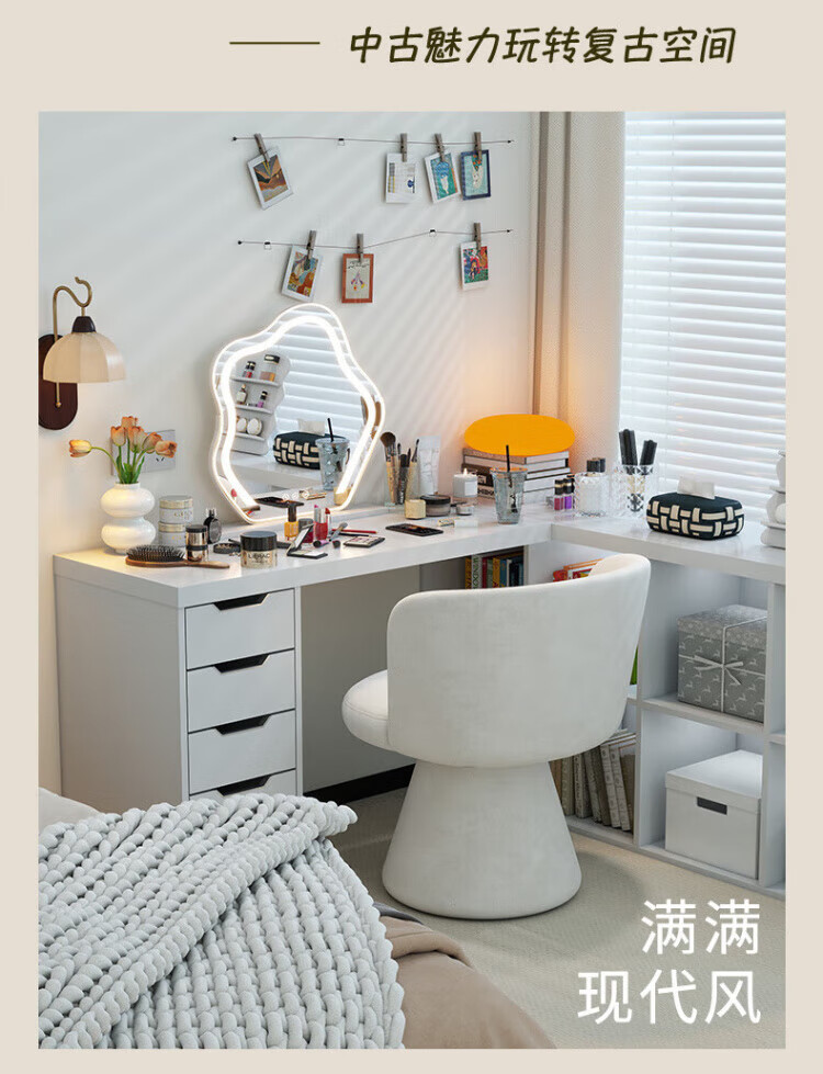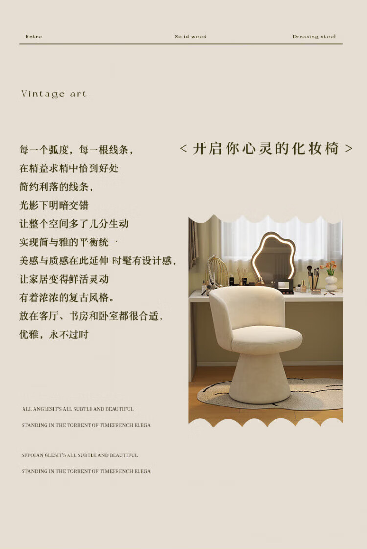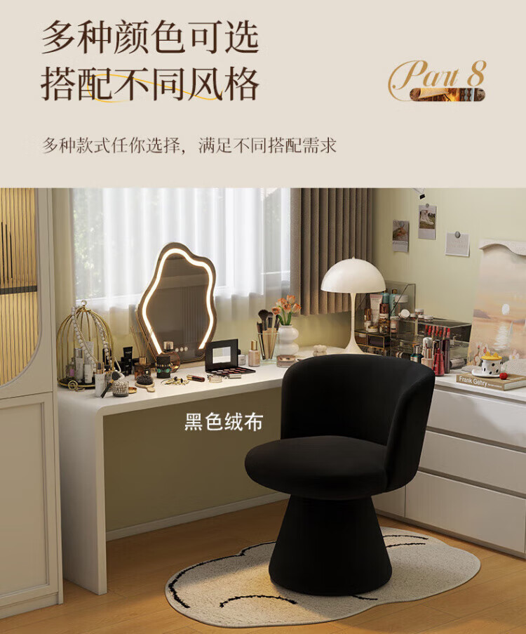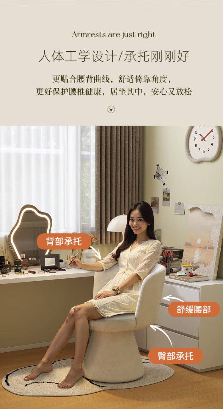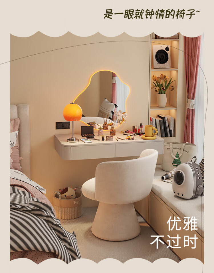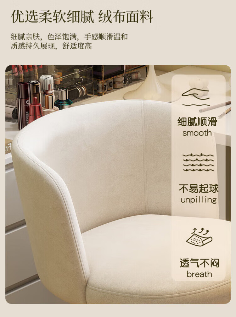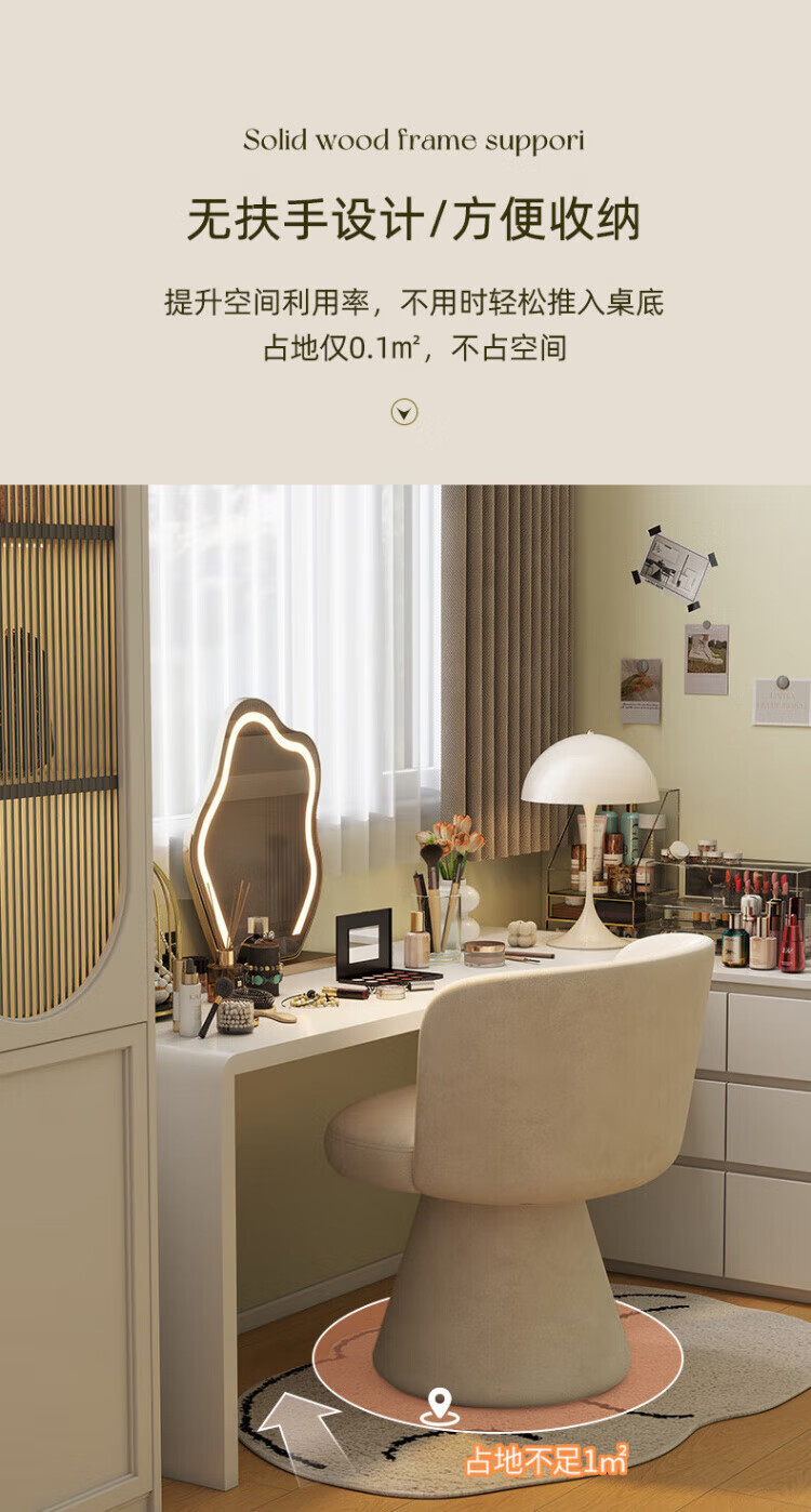 Mauya Nordic makeup stool rotatable girls bedroom high-end dressing table chair designer single cloakroom stool 360 rotation | off-white skin-friendly velvet