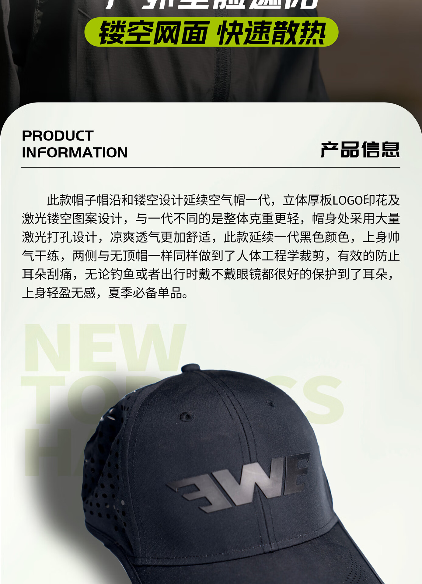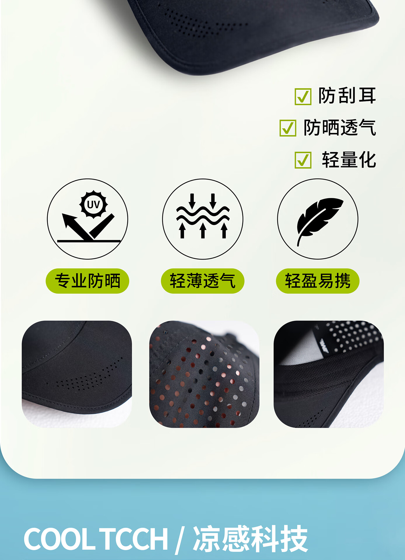 Meixia Fishing Hat Men's Sun Protection Windbreaker Second Generation Air Cap Outdoor UV Protection Men's Peaked Cap Black One Size