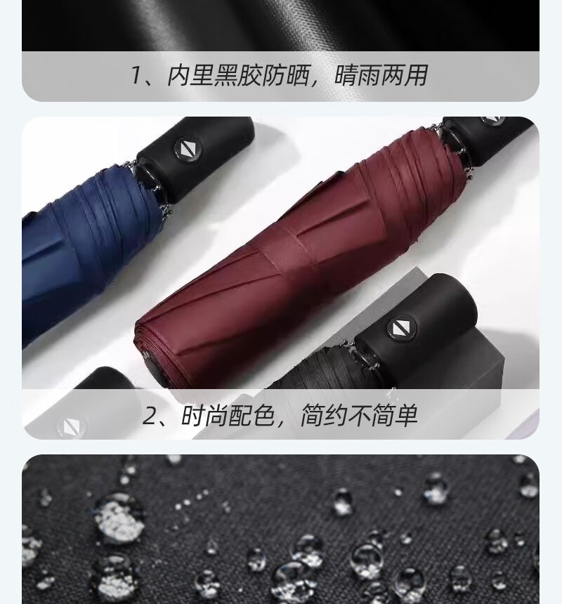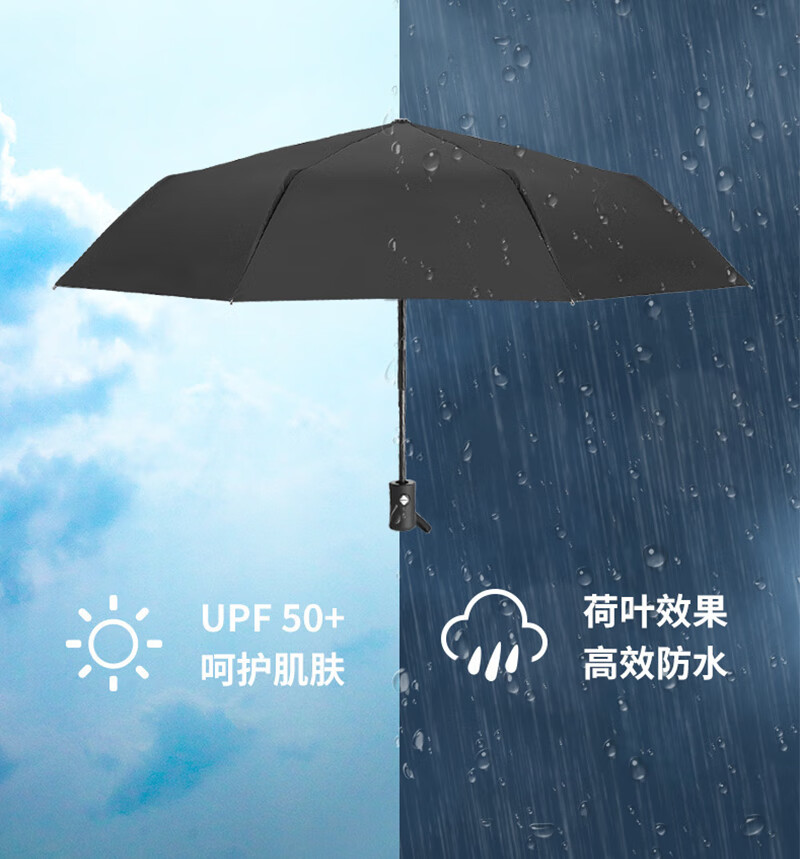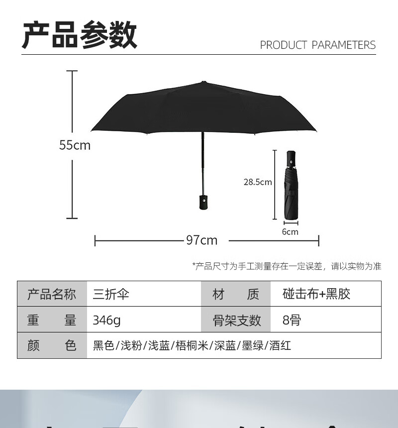 Manual umbrella folding reinforced sunny or rainy day dual-purpose wind-resistant men's and women's sunshade umbrella sun protection ultraviolet black