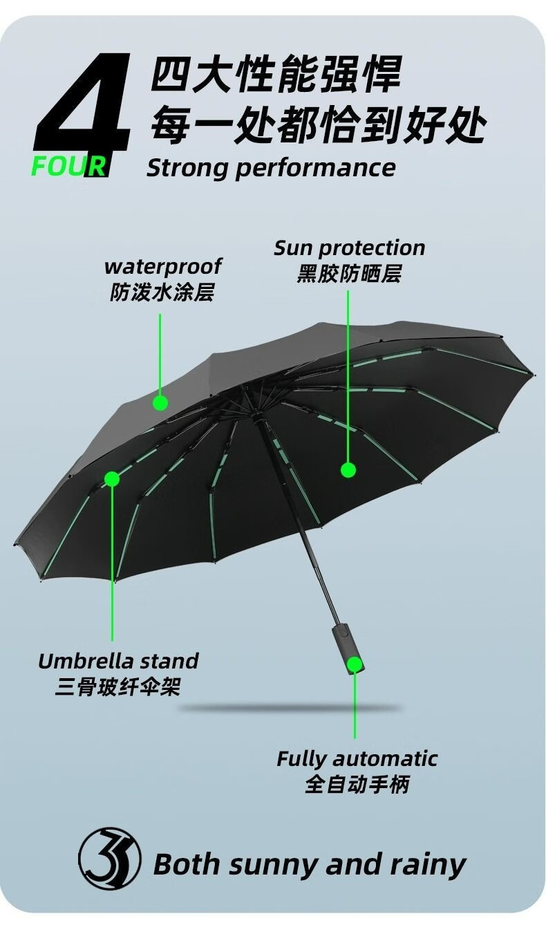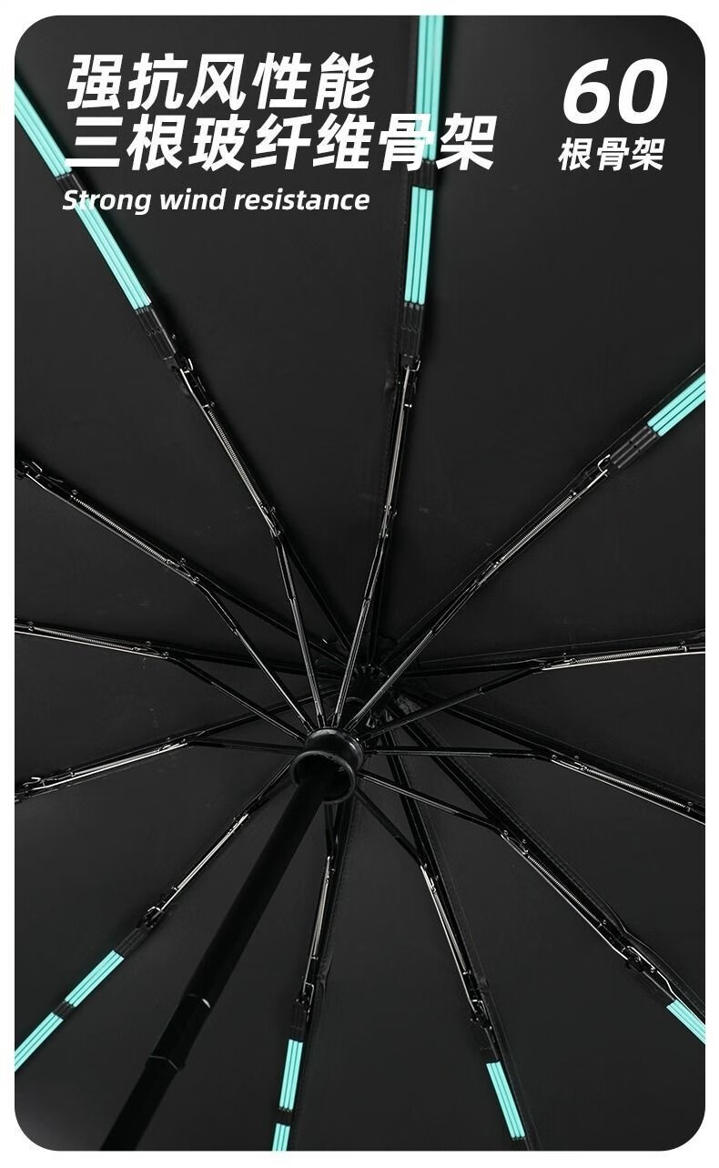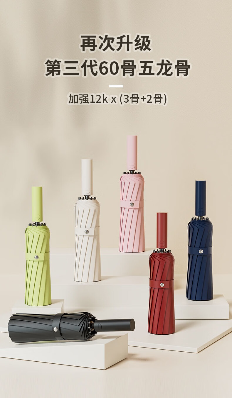 60-rib folding umbrella, automatic wind-proof, rain-proof, sun-proof and wind-proof parasol, 60-rib wind-resistant umbrella stand, pink-fully automatic
