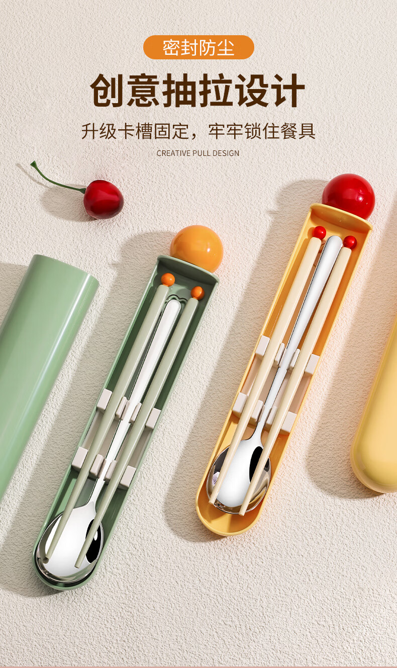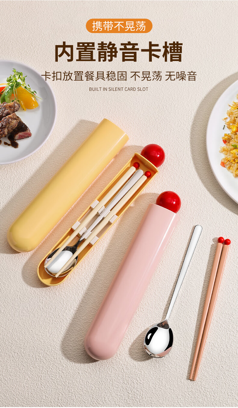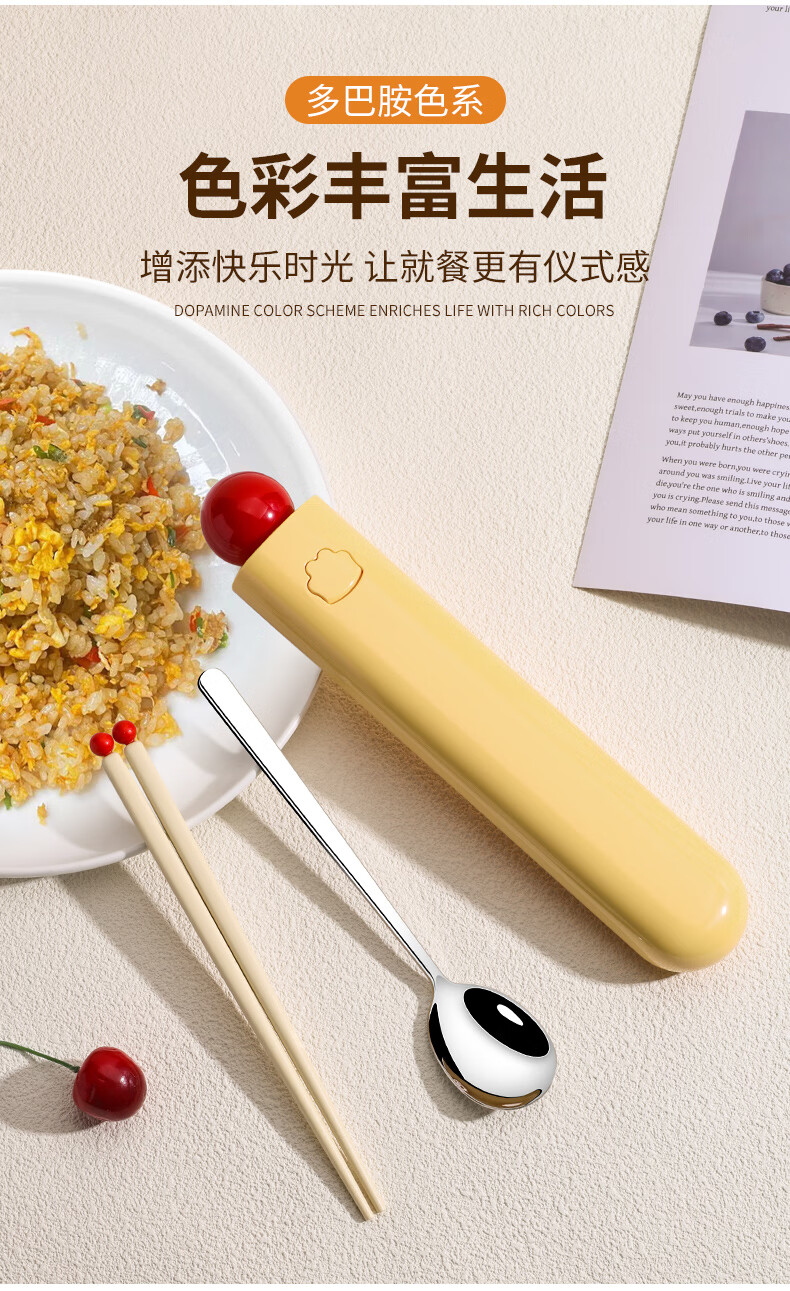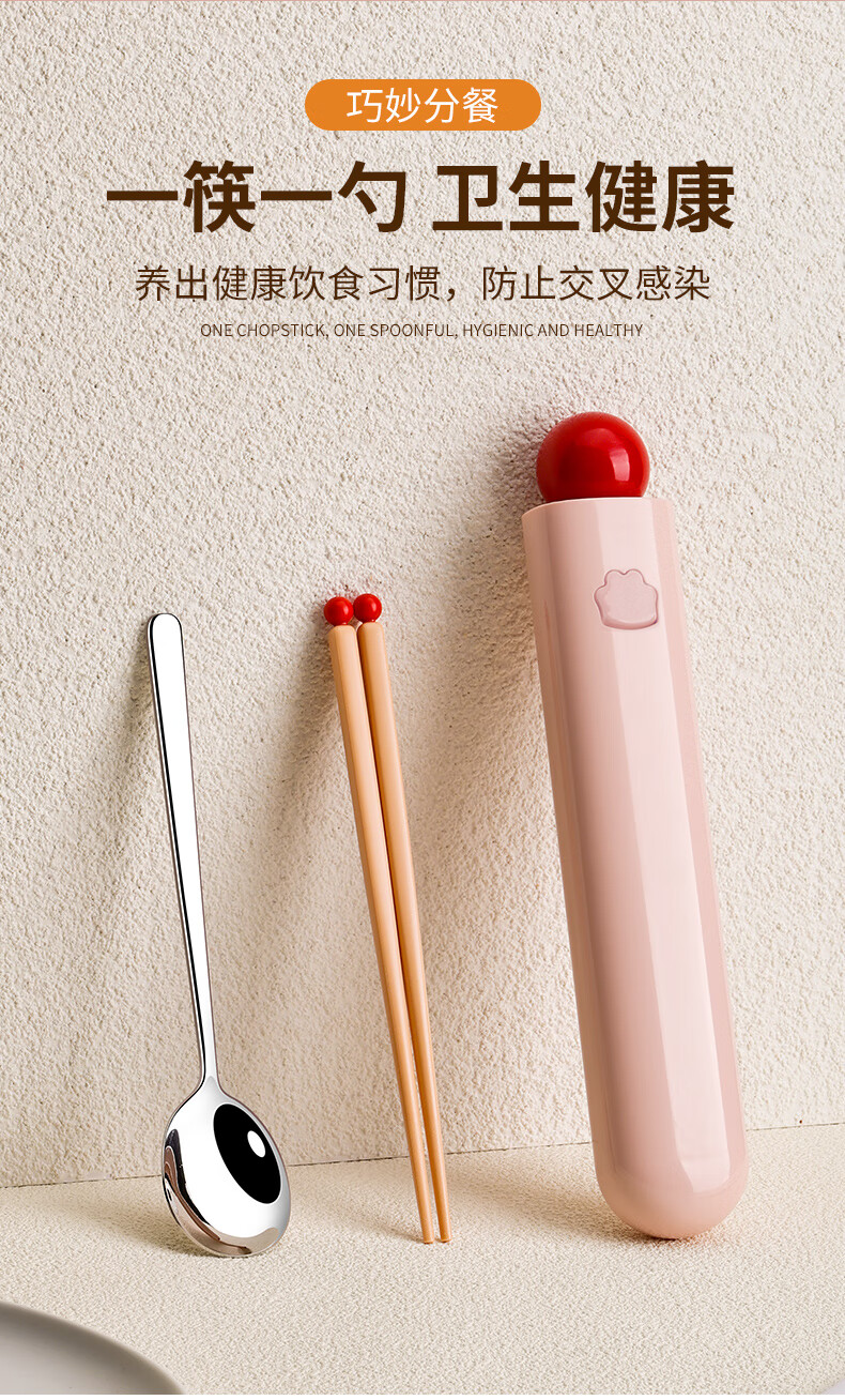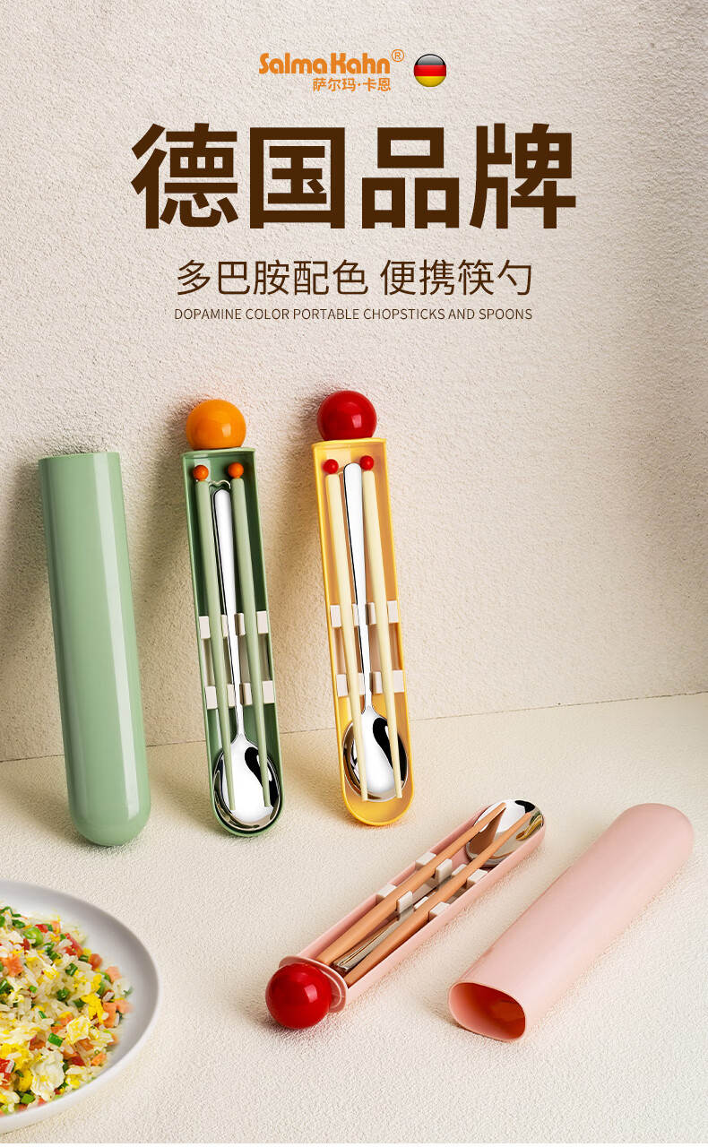 Salma Kahn Student Portable Tableware Chopsticks and Spoon Set Office Workers Portable One-person Storage Box Chopstick Box Single Pack Yunnuobai-Chopsticks and Spoon Set