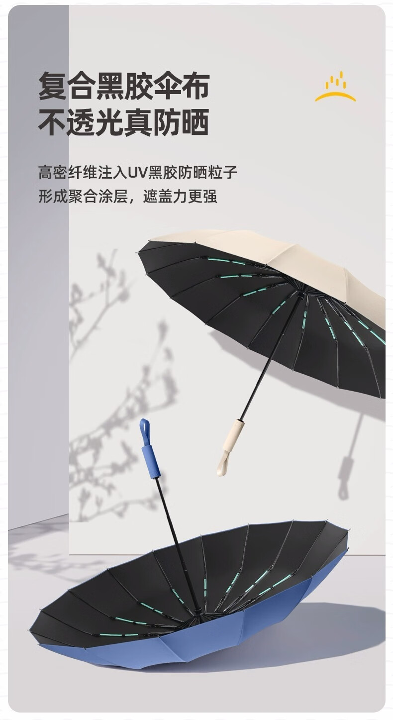 Sun umbrella 48-bone folding automatic umbrella for women, sunny or rainy, logo advertising sun protection for men and women, 48 double ribs + double tailbone, bright yellow
