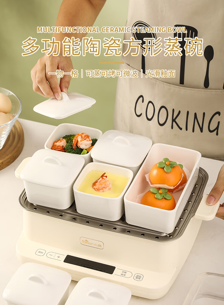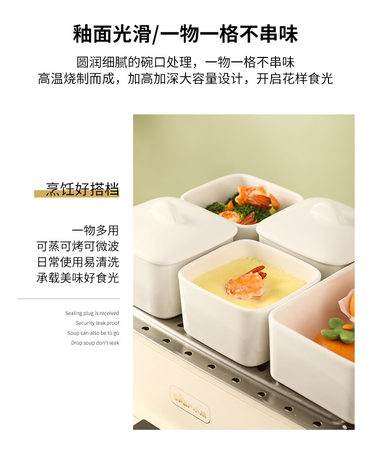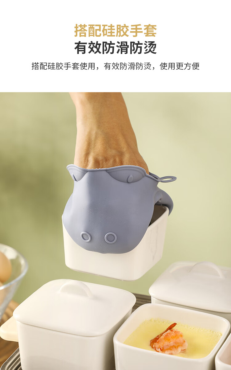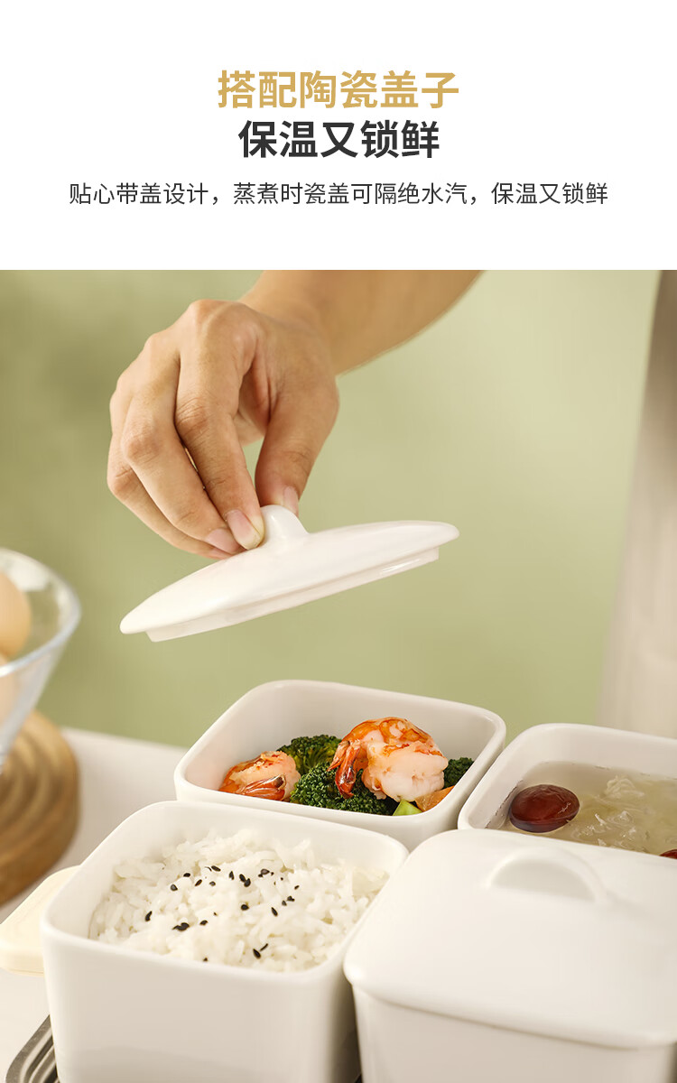 Muziqiu food-grade small steaming bowl with lid, ceramic water-proof stew pot, soup cup, steaming pot, stew pot, steamed egg cup, soup pot, steaming rice bowl with ceramic lid - large set, positive*4+long*1