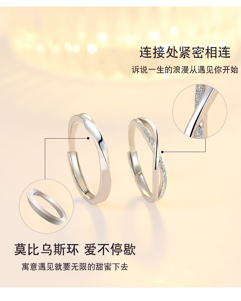 Lao Fengxiang Pure Silver Möbius Ring Ring for Men and Women Live Couple Ring 520 Valentine's Day Birthday Gift for Girlfriend Same Day Delivery - Möbius Ring for Couples