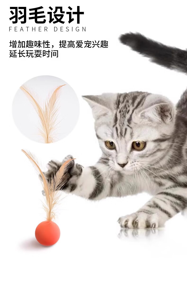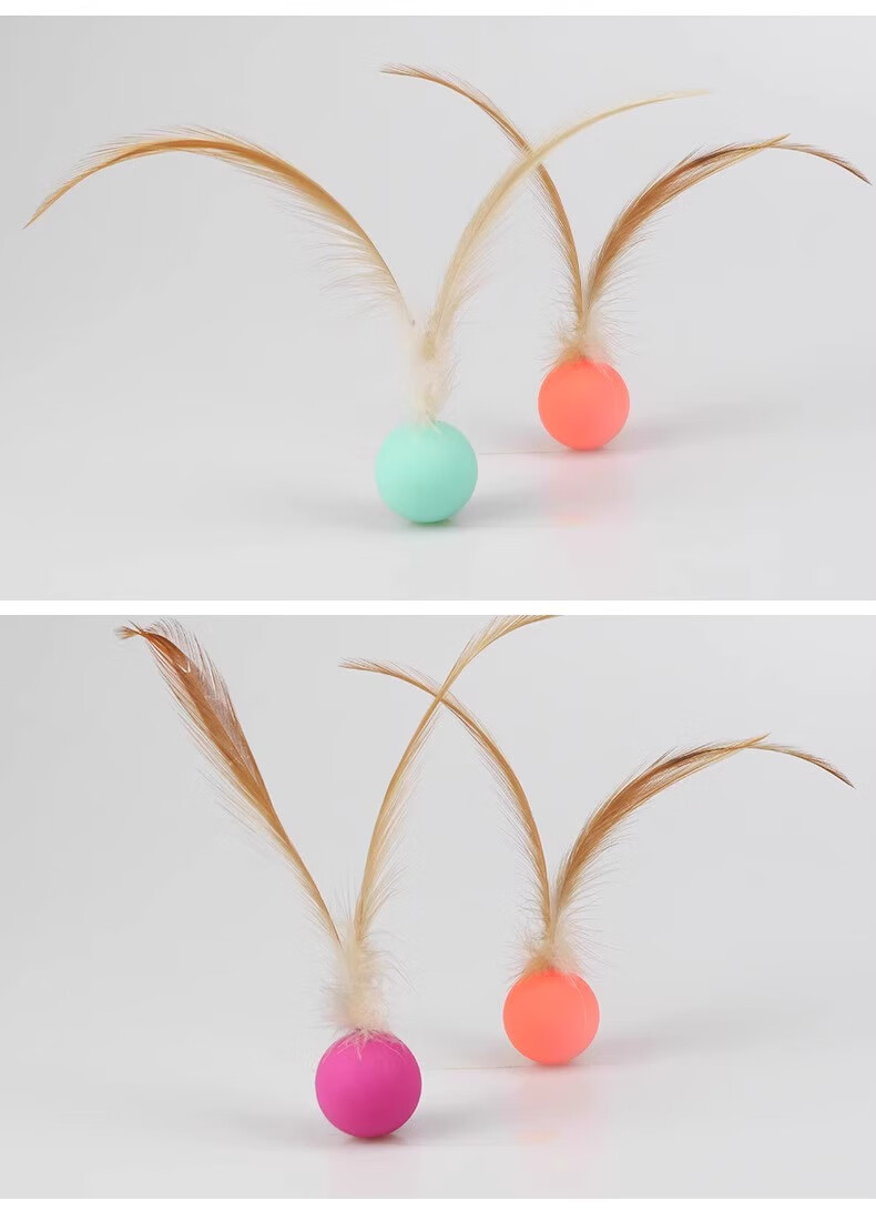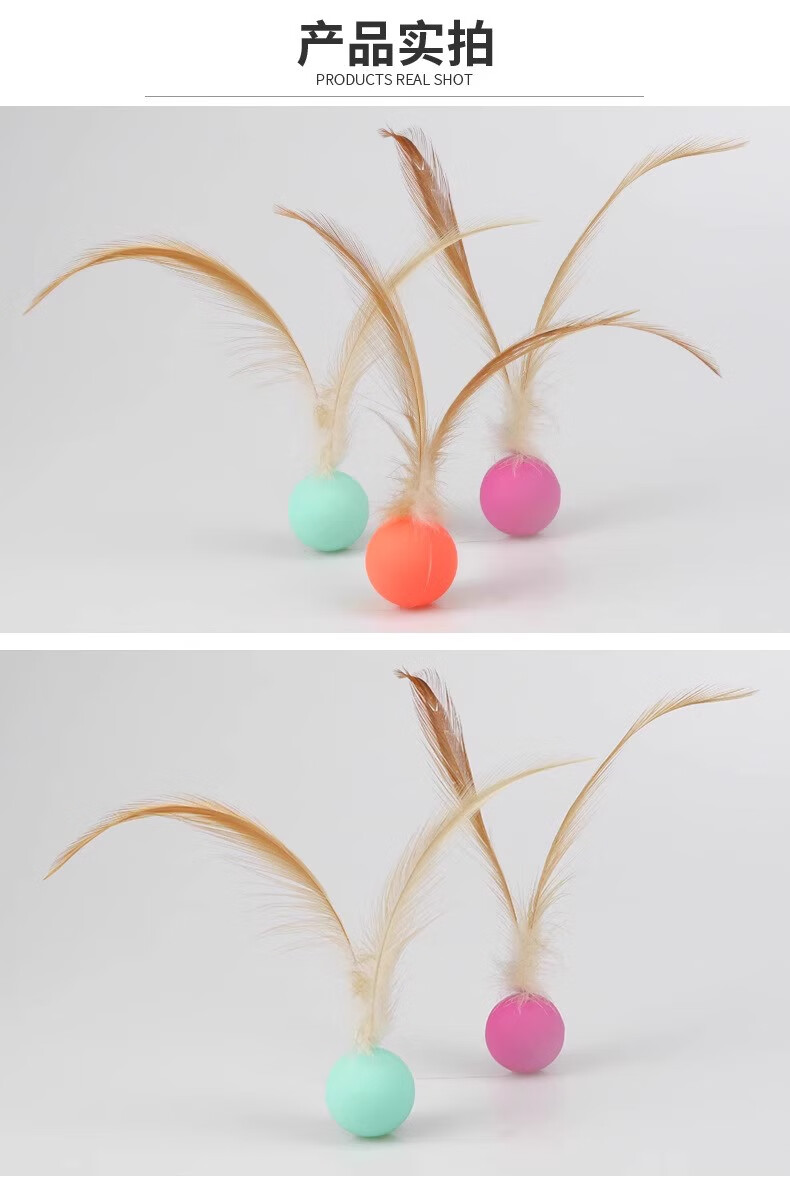 Qioh cat toy bouncy ball, feather cat amusing stick, cat self-stimulation ball, a tool to relieve boredom and consume energy, interactive pet supplies, three packs of feather bouncy balls (daily play)