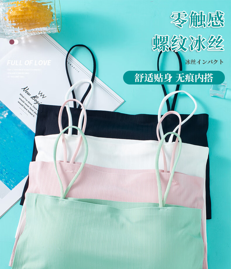 Summer ice silk seamless tube top underwear, anti-exposure, chest-wrapped girl student vest suspender, beautiful back, small chest, thin section for women, one piece, black-8898 seven colors, one size fits all, weight 80-130Jin Jin is equal to 0.5 kg